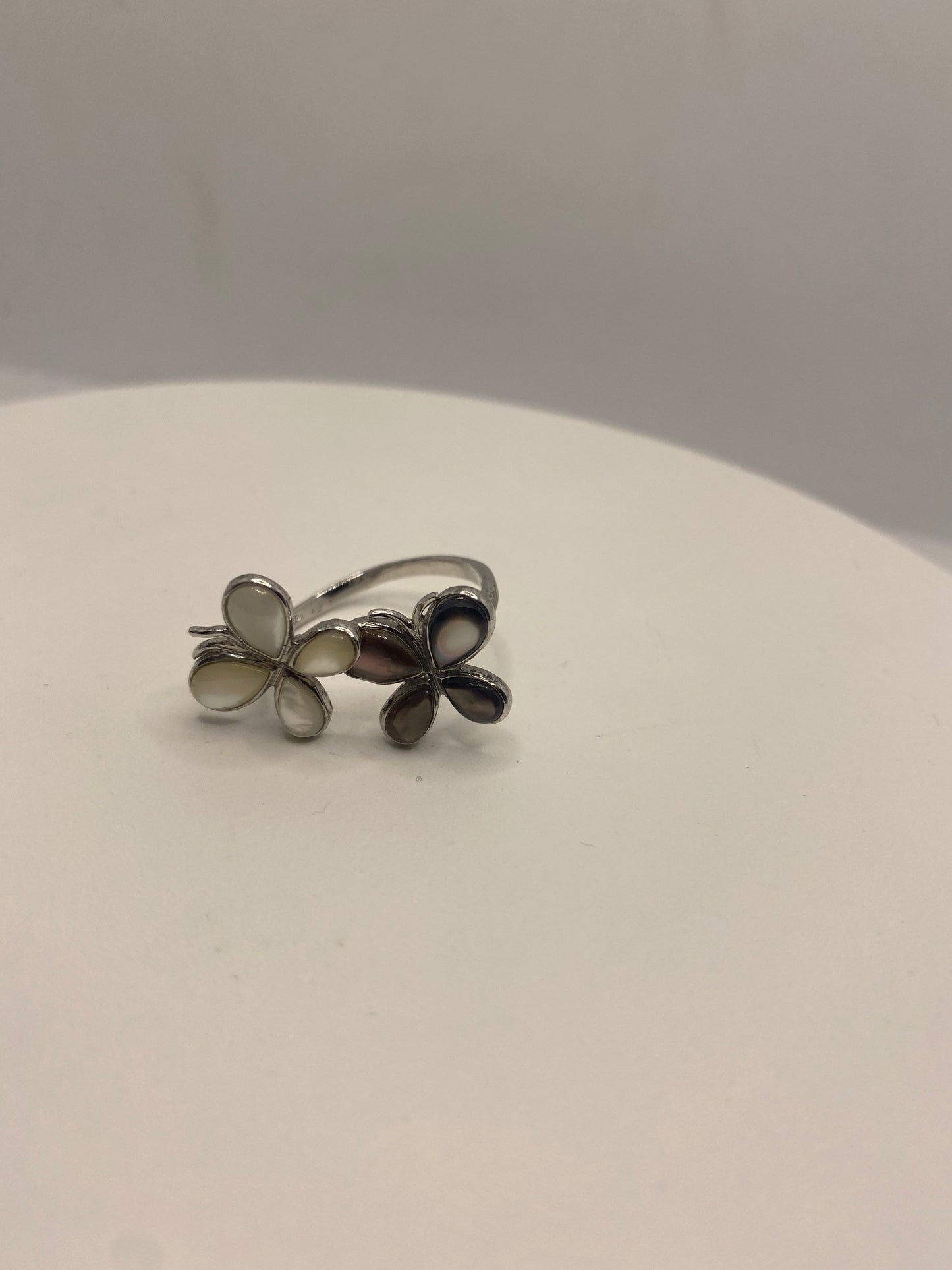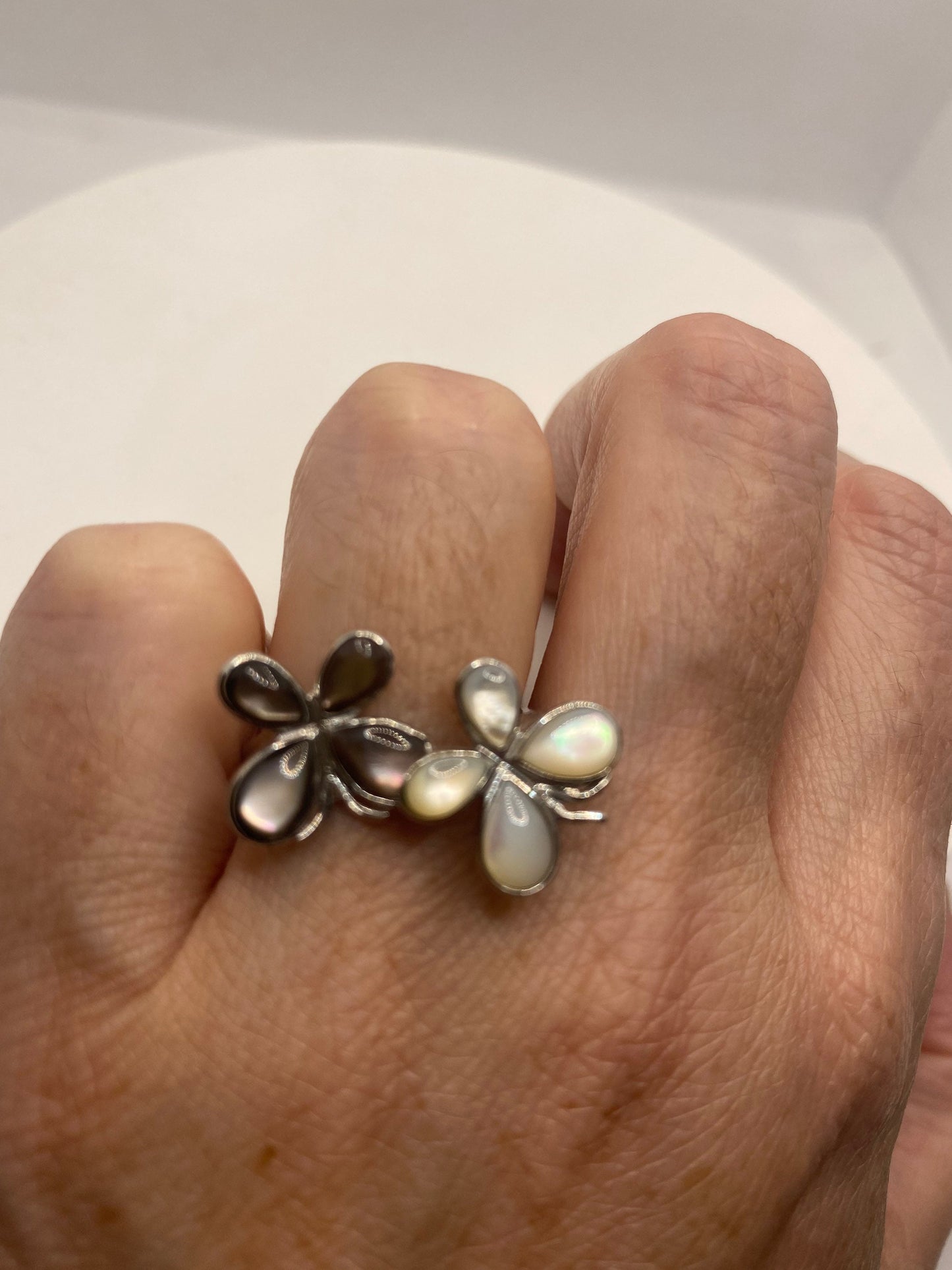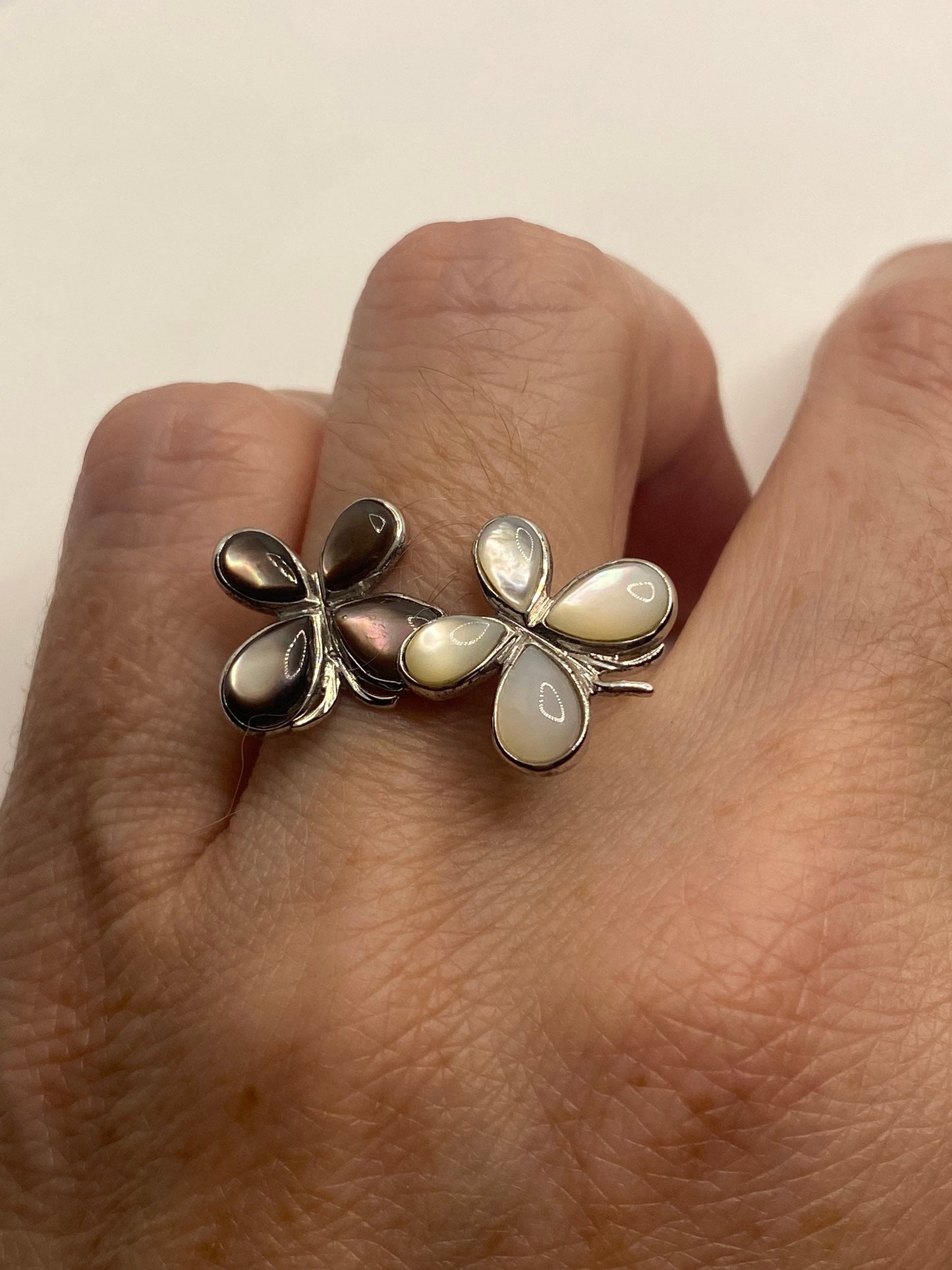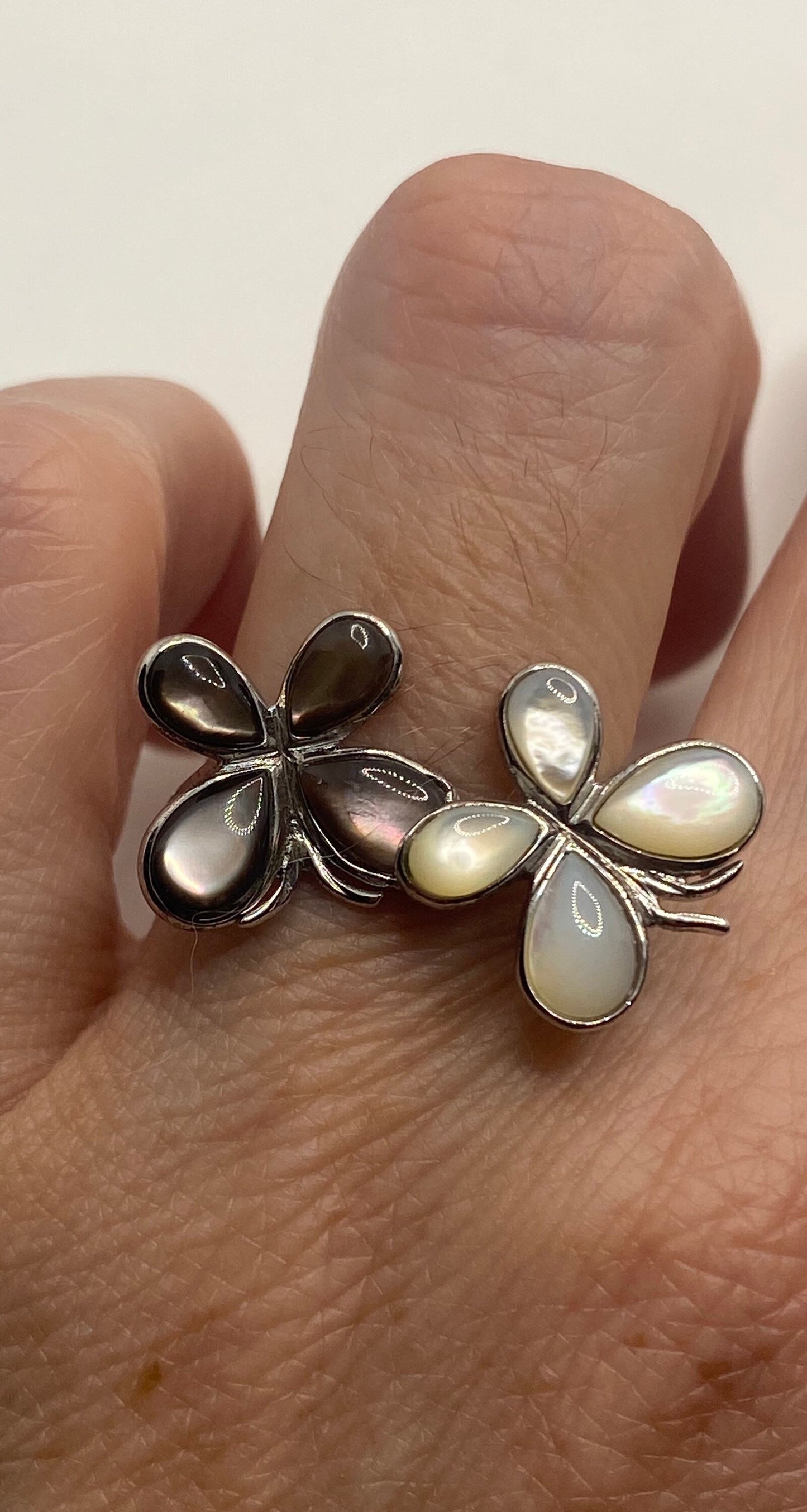 Antique Deco Mother of Pearl Butterfly Moth 925 Sterling Silver Ring