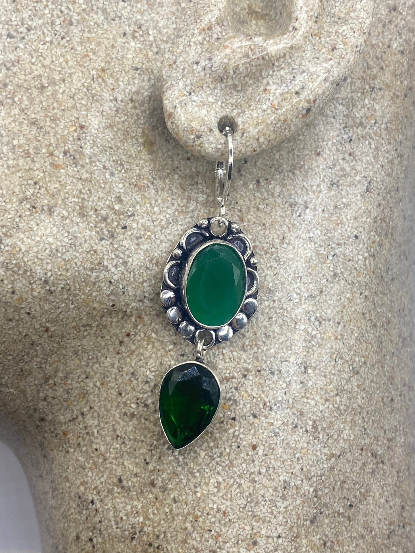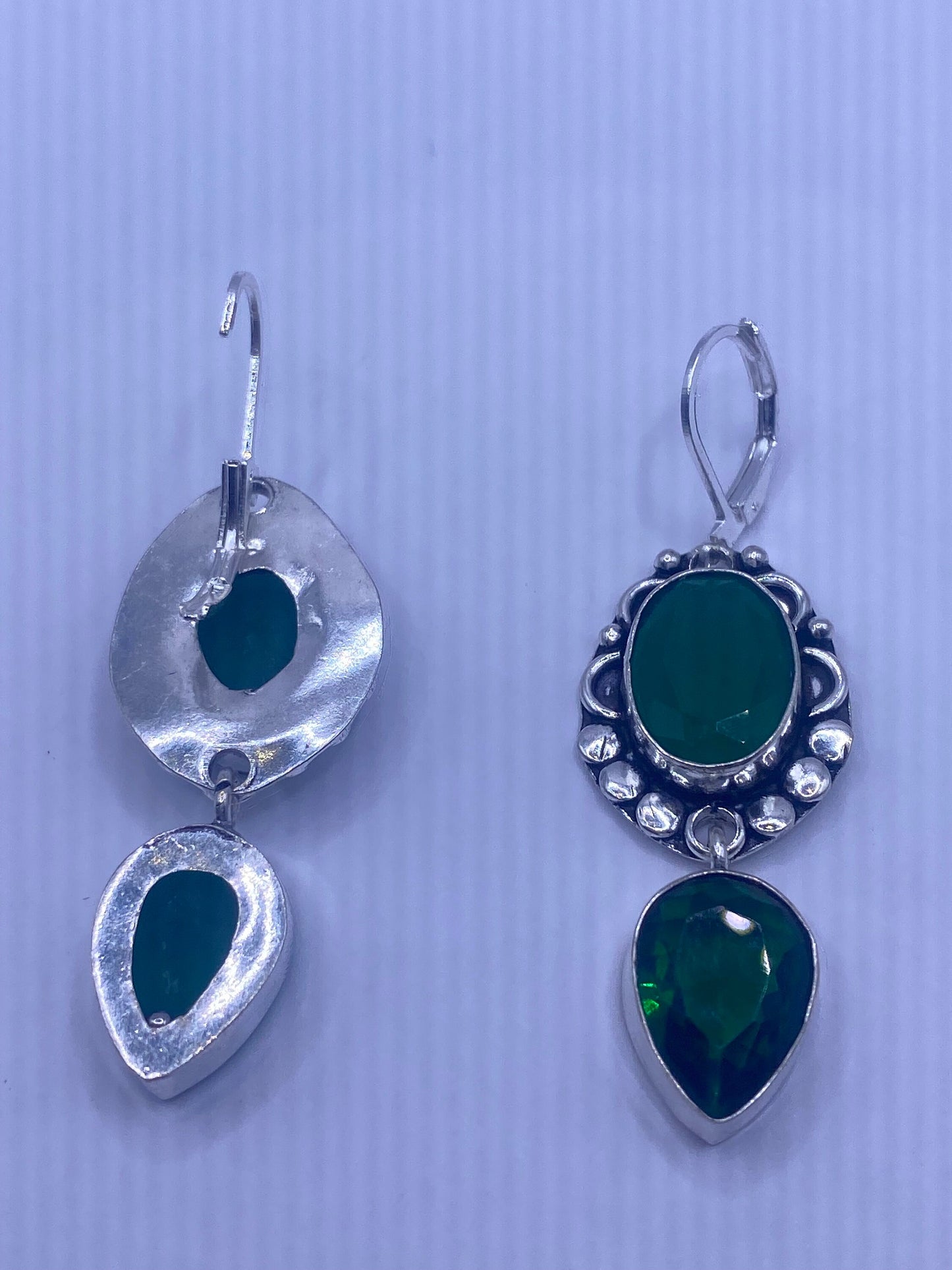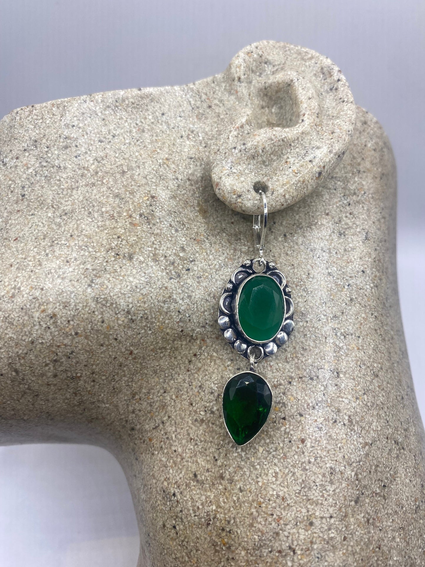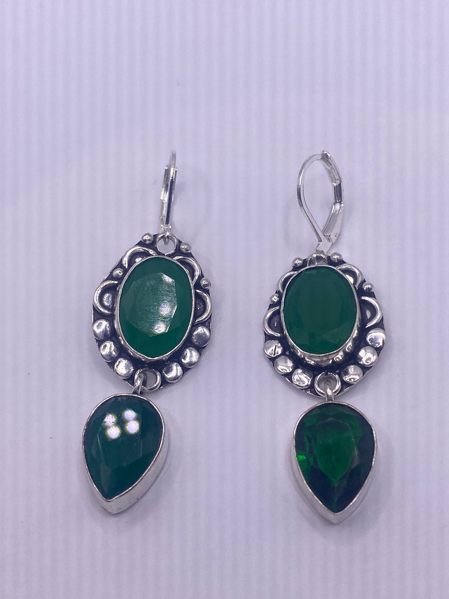 Antique vintage Green Chrysoprase Silver dangle earrings