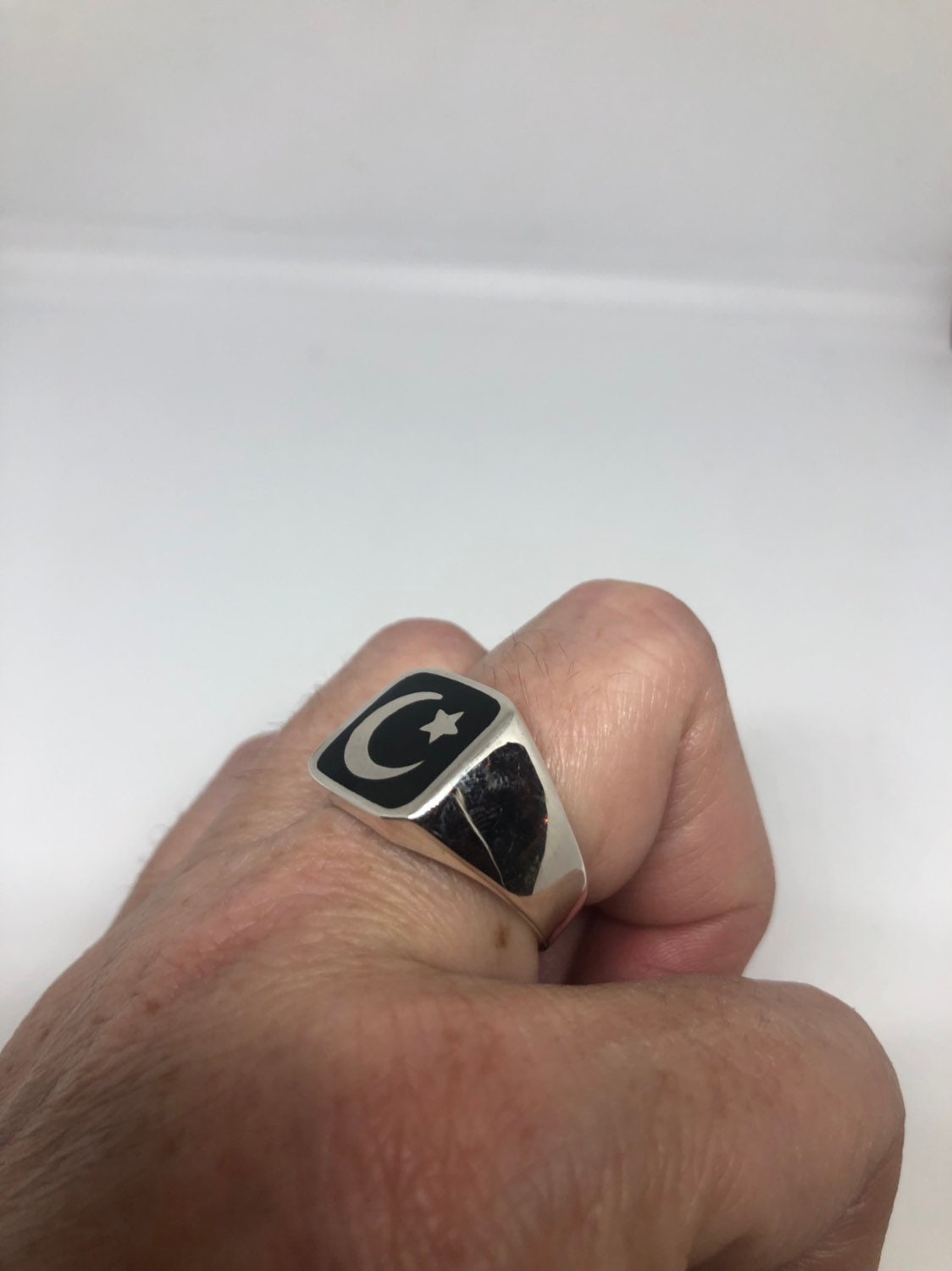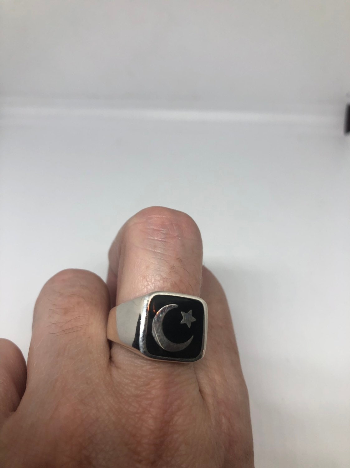 Crescent Moon and Star 925 Sterling Silver Ring Vintage