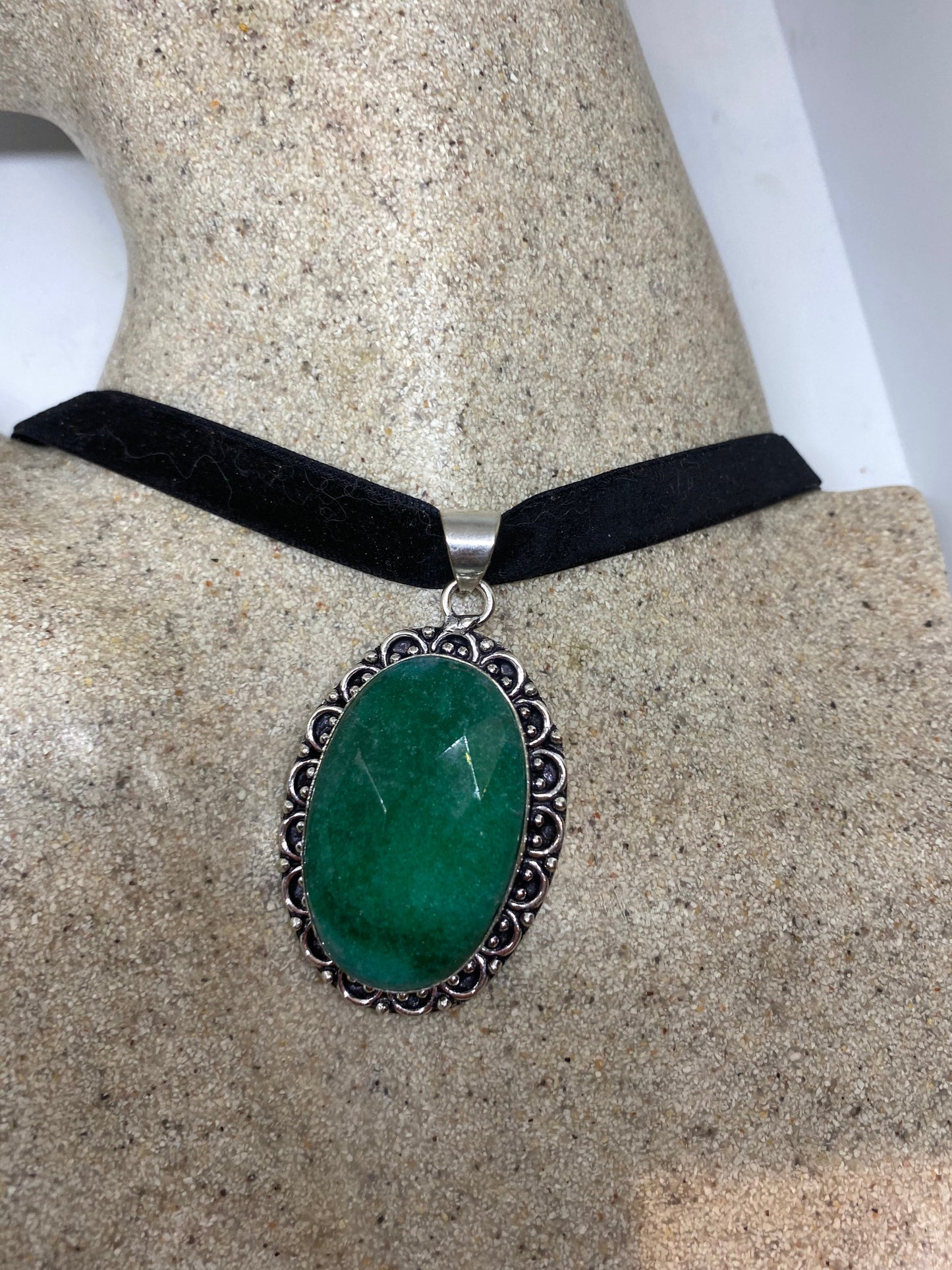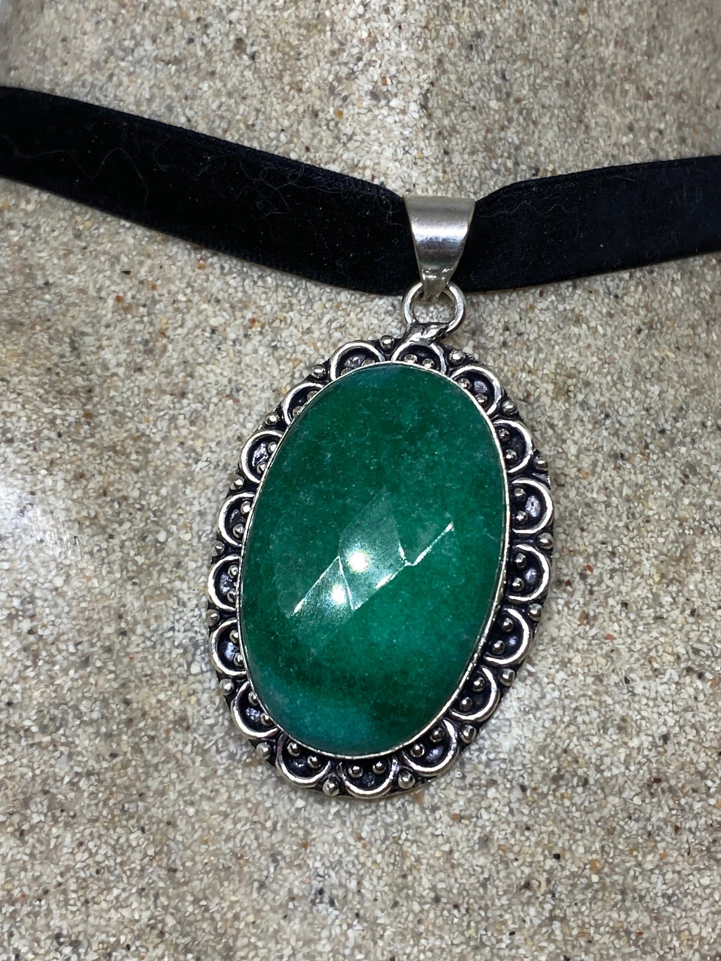 Handmade Vintage Green Chrysoprase crystal Choker Pendant