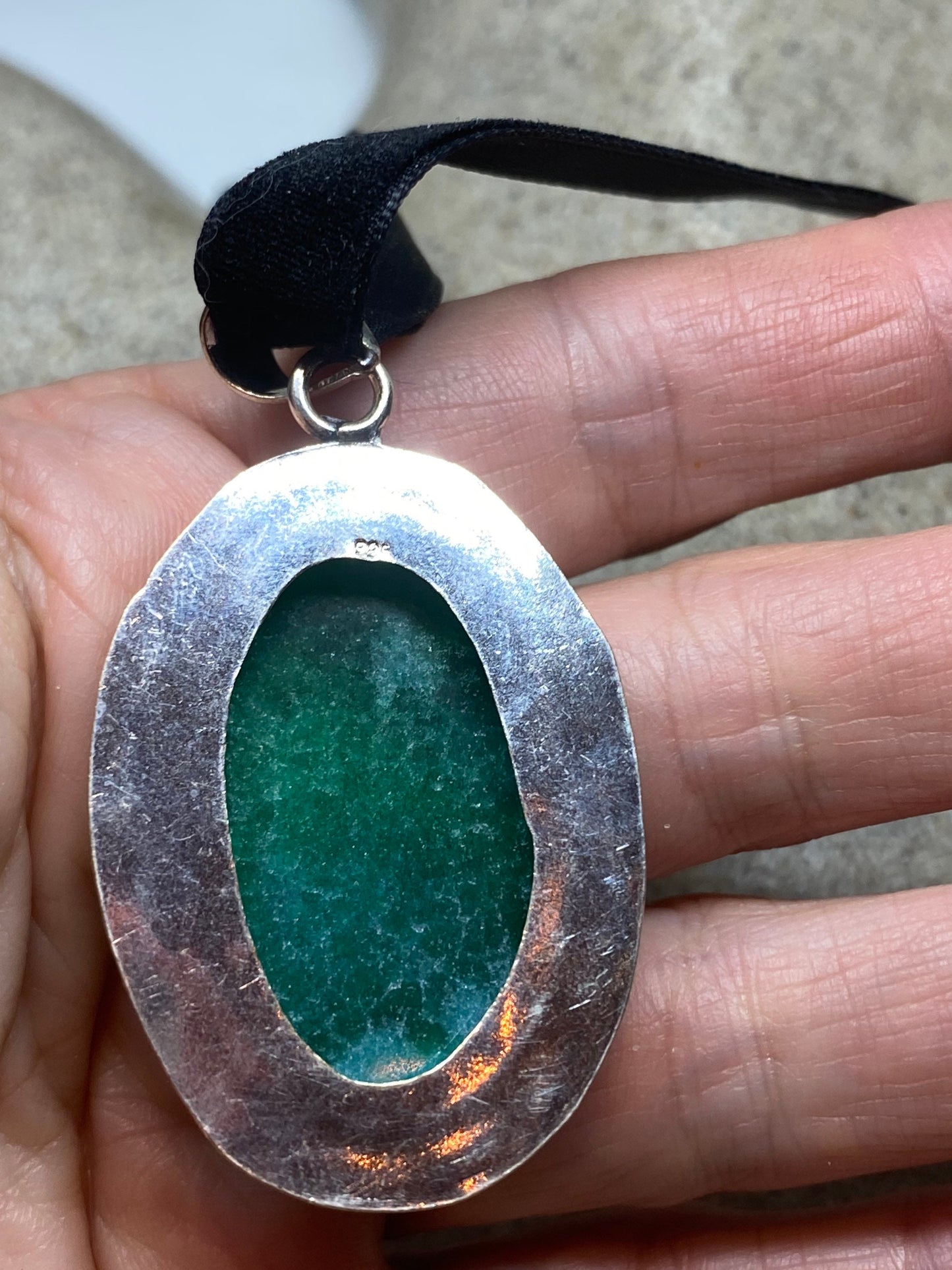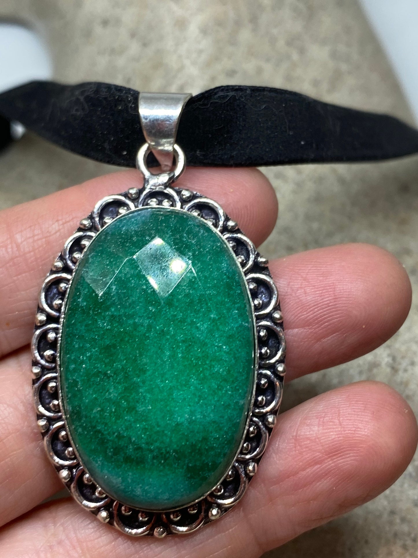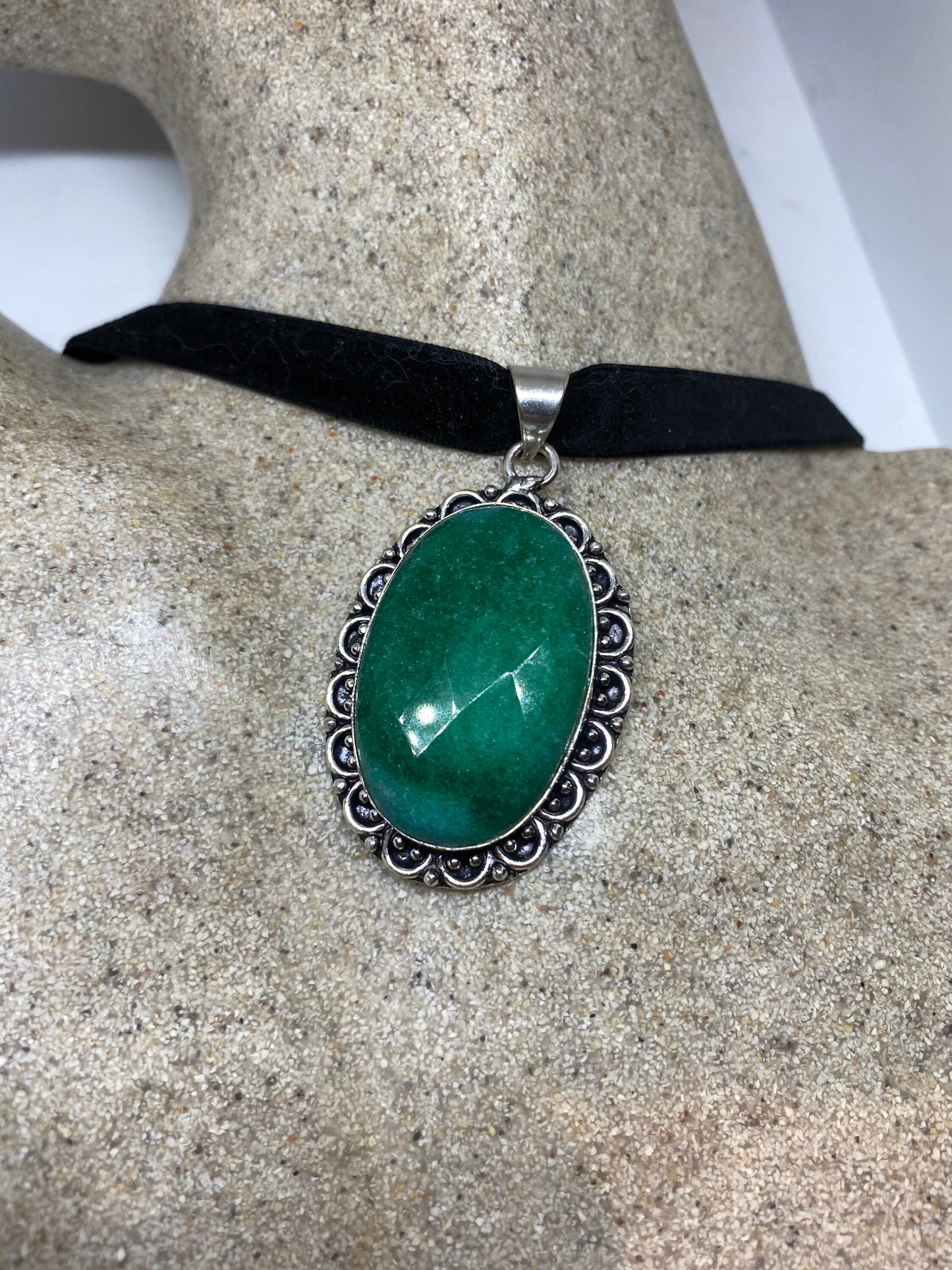 Handmade Vintage Green Chrysoprase Crystal Choker Pendant