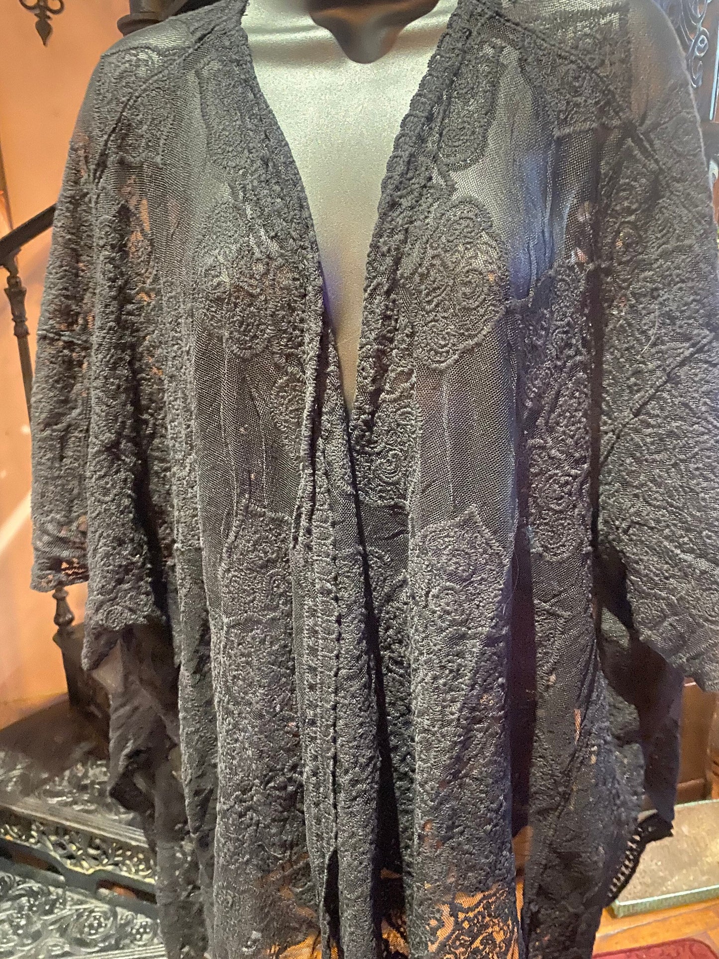 Lace Kimono Jacket Vintage Style Black Embroidered wrap