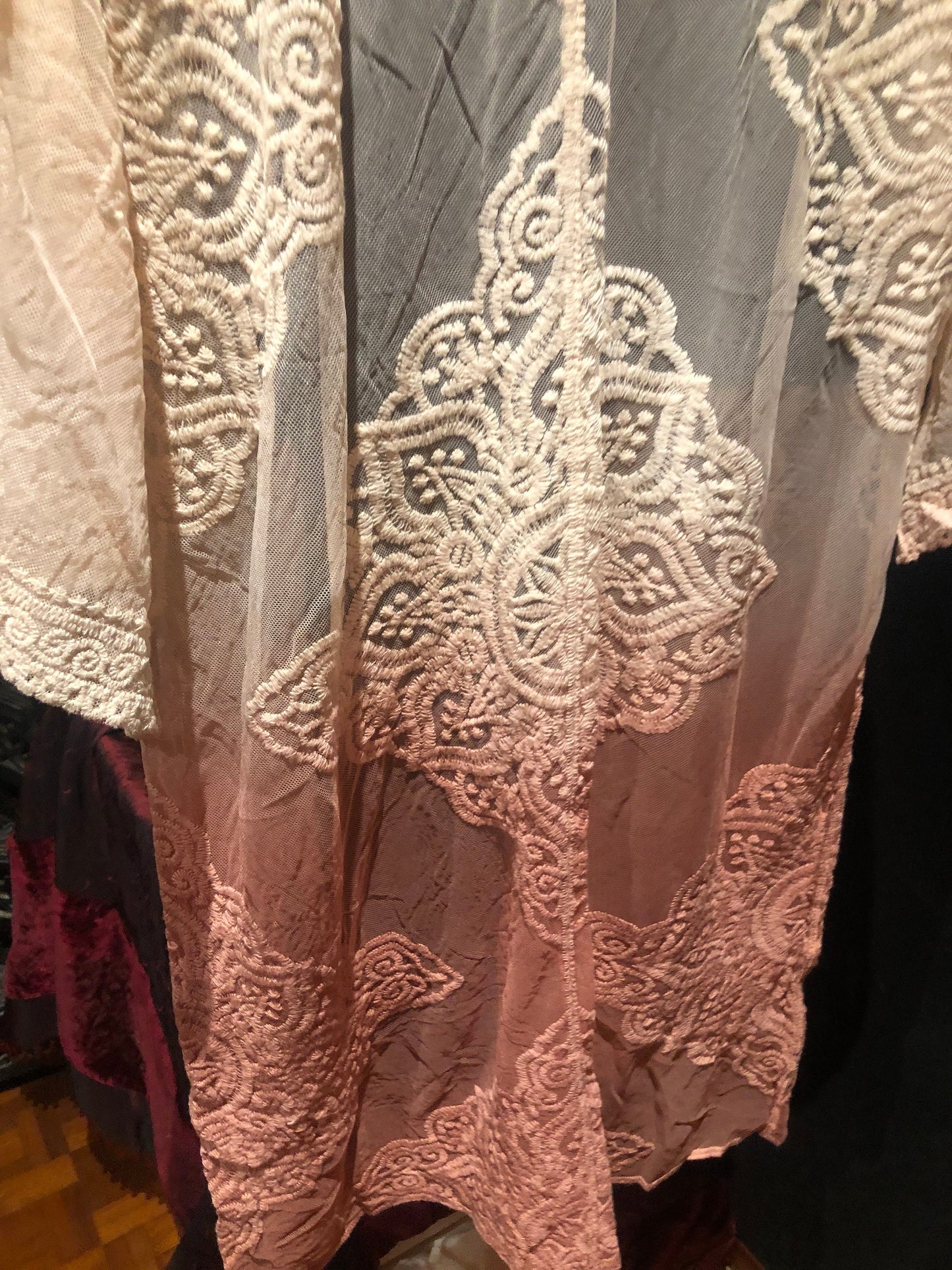 Lace Kimono Jacket Vintage Style Pink Tie Dye Embroidered wrap