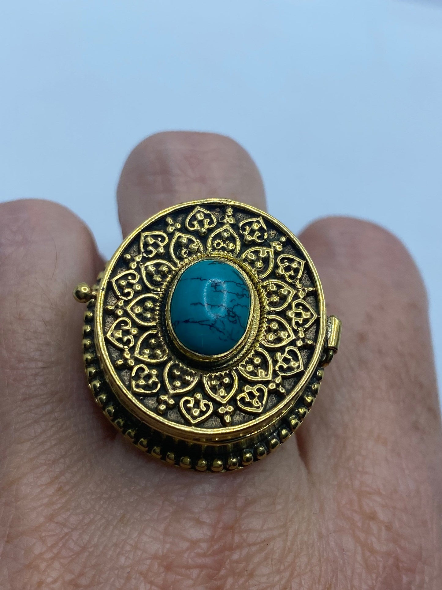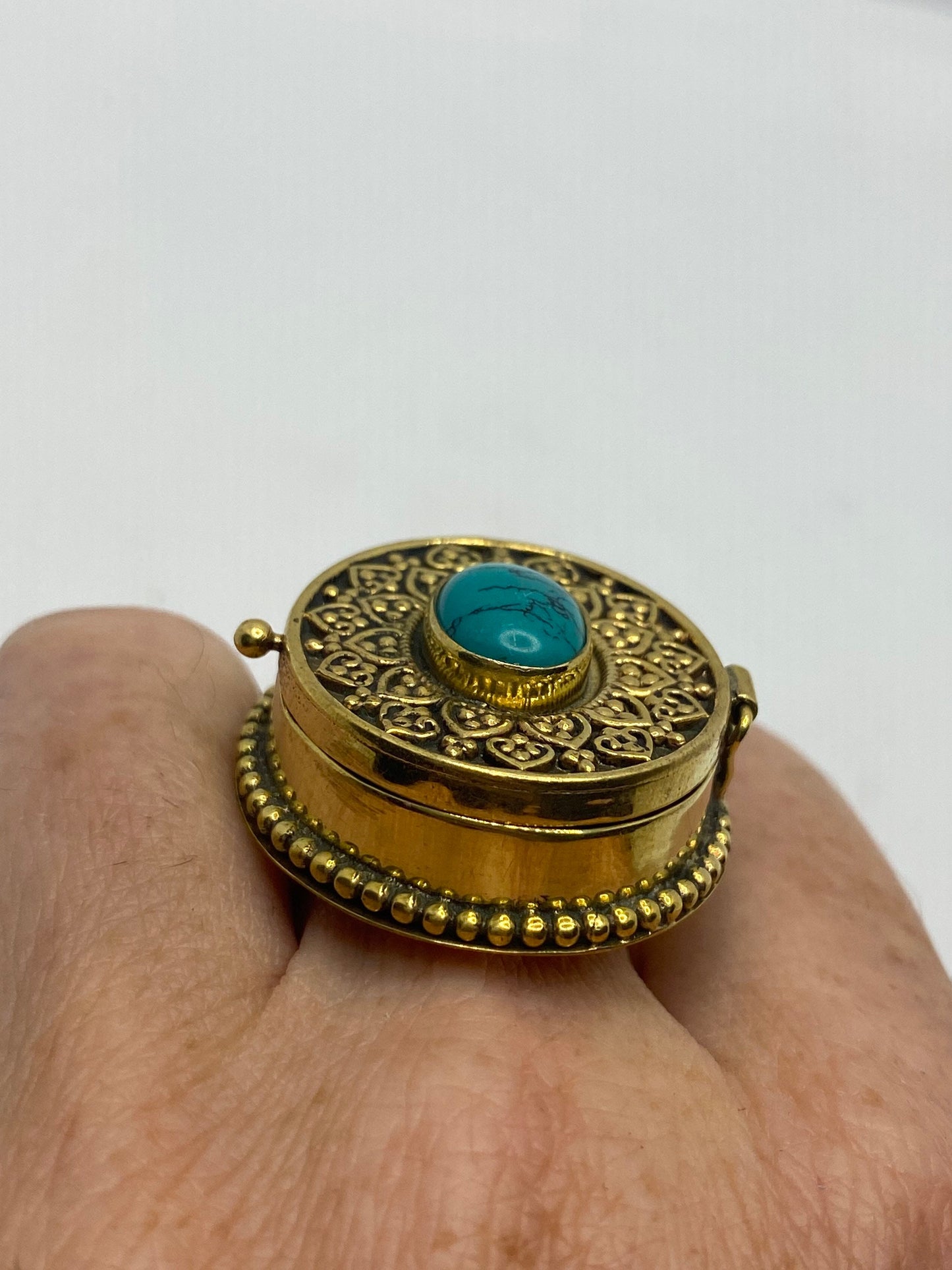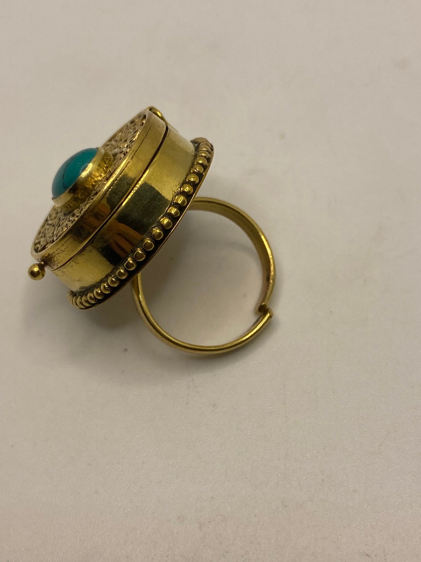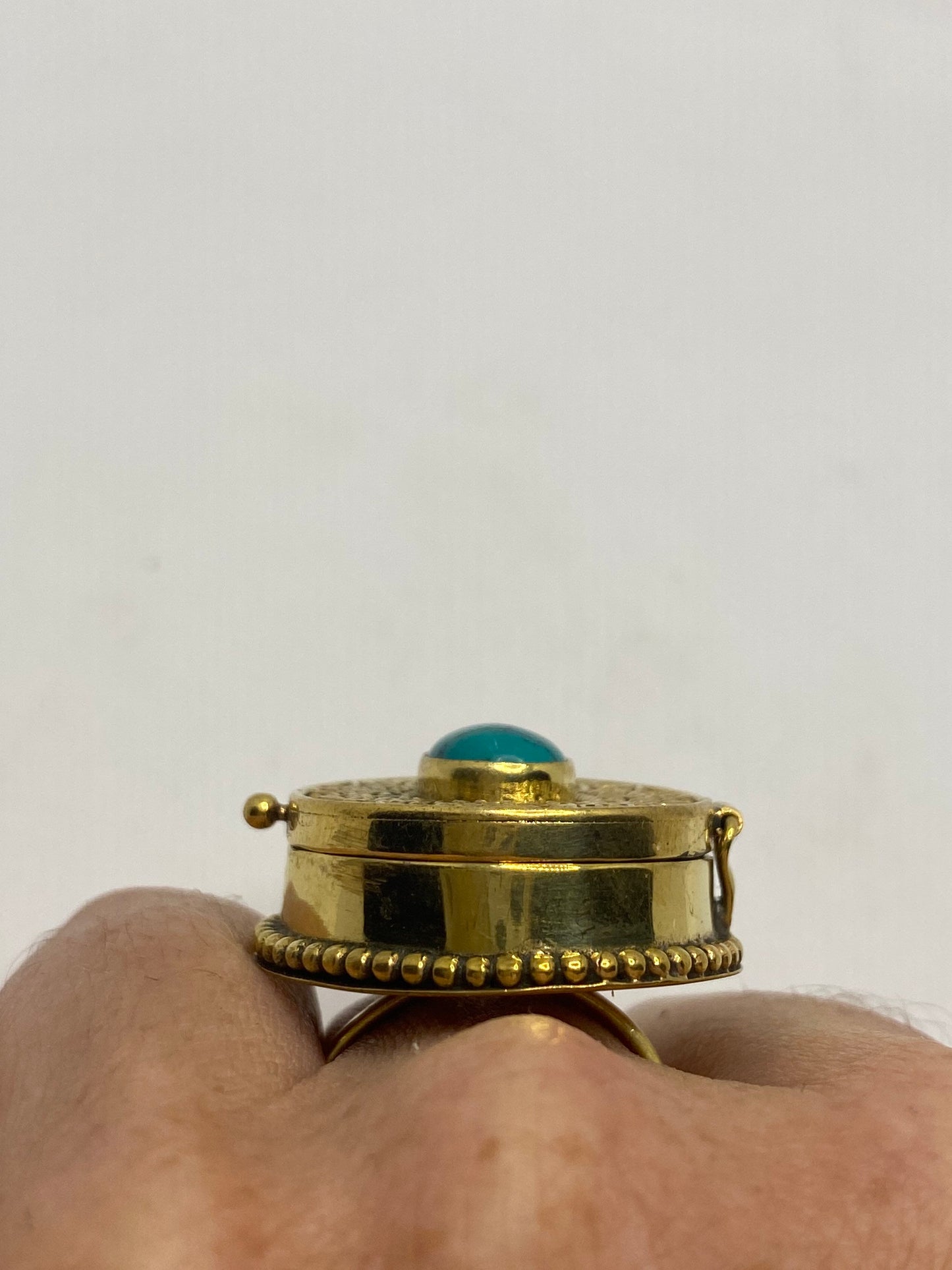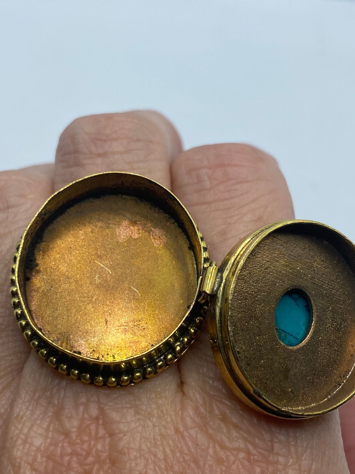 Large Stone Brass Knuckle poison pillbox Adjustable Ring