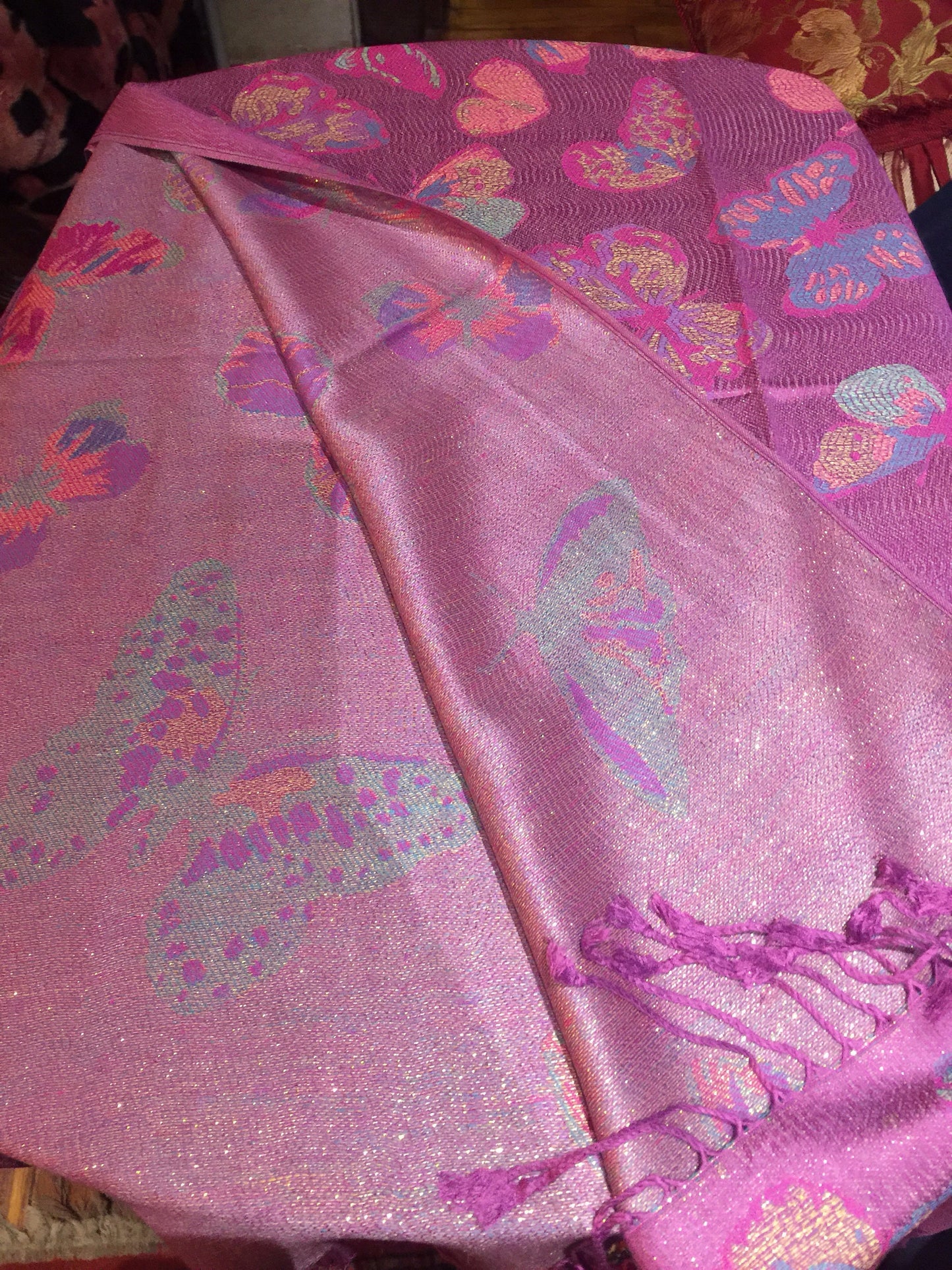 Nemesis Vintage Purple Gold Butterfly Brocade Pashmina Scarf Wrap