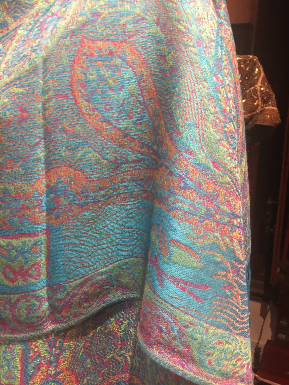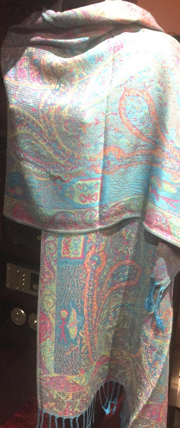 Turquoise Vintage Paisley Brocade Pashmina Scarf Wrap Shawl