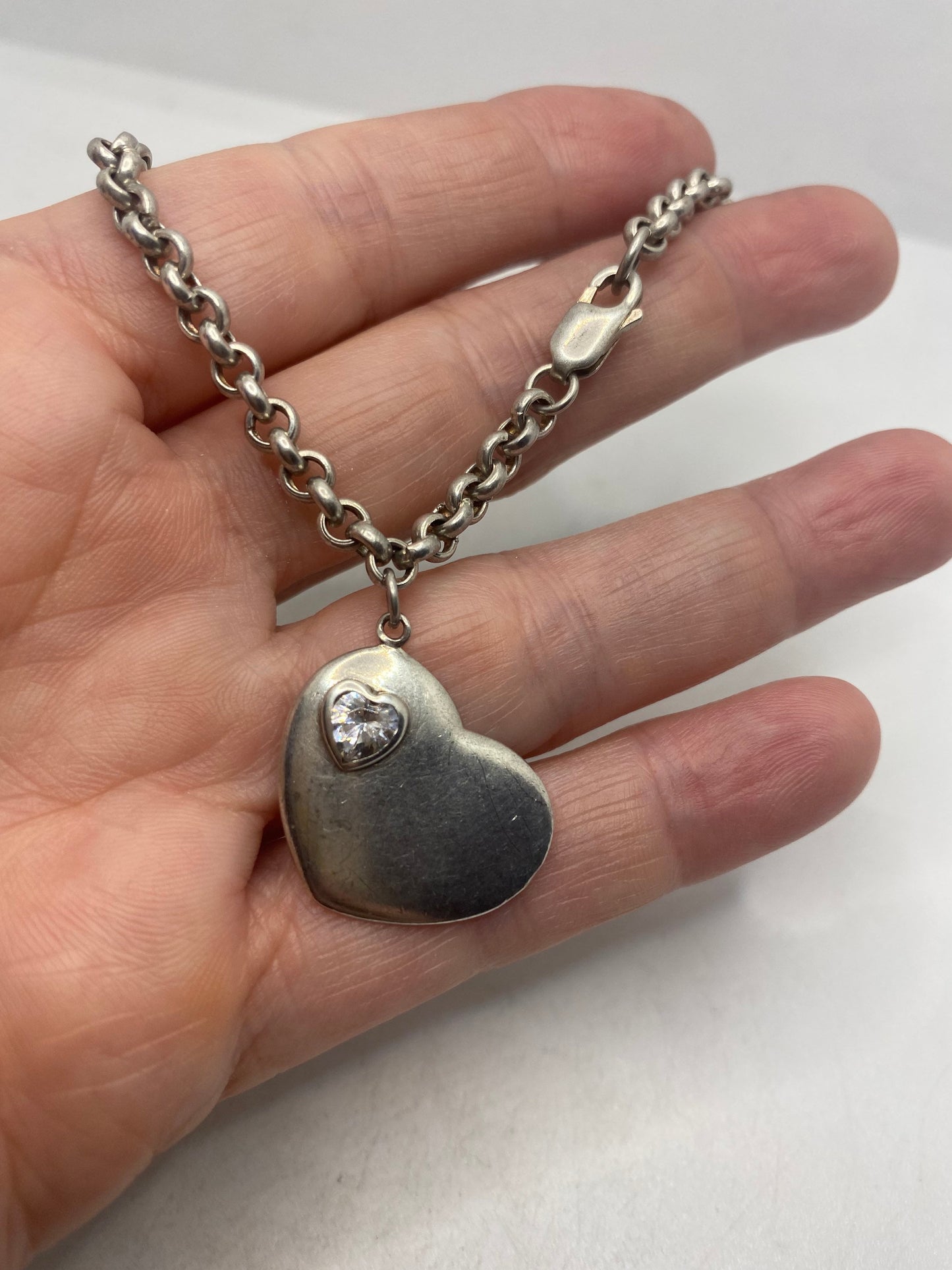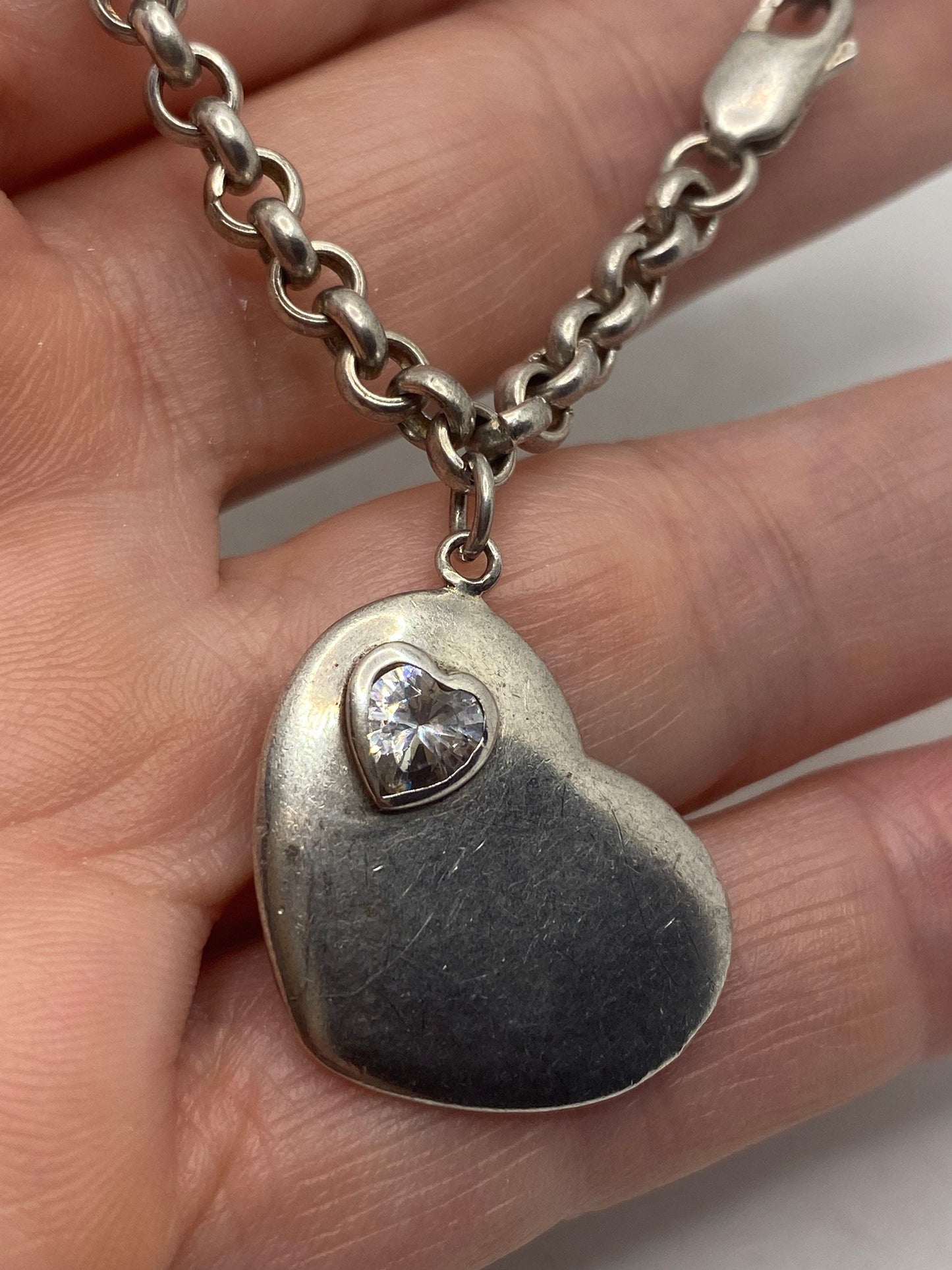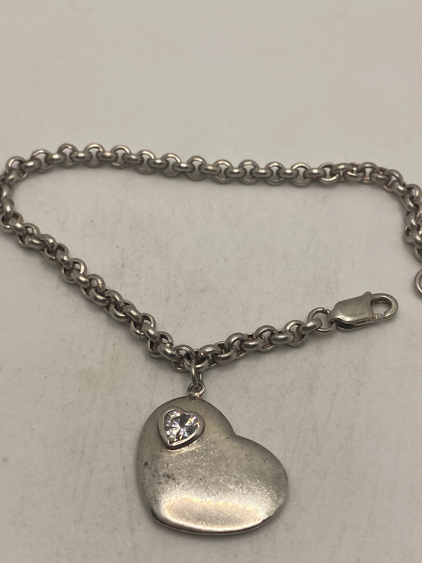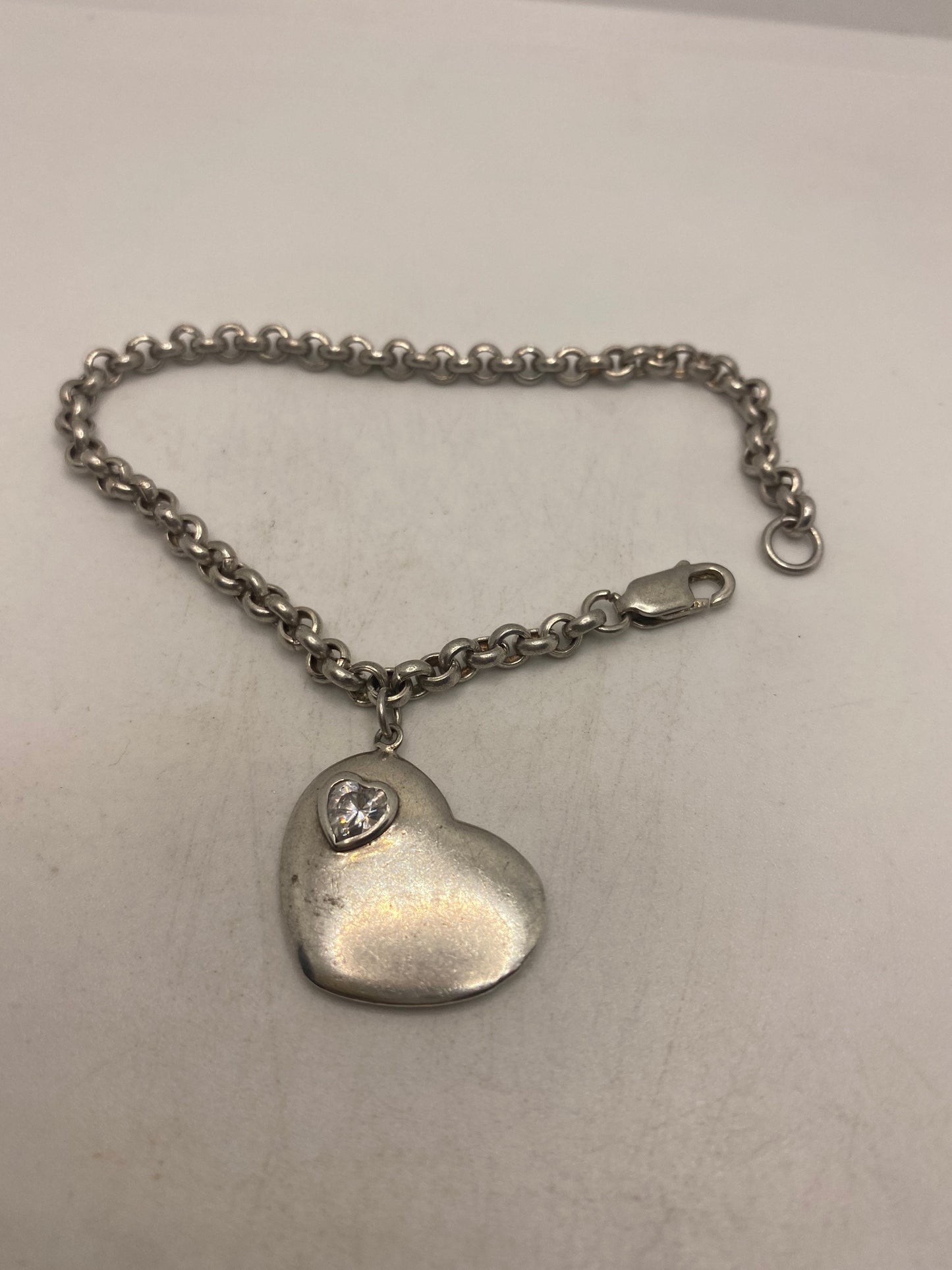 Vintage 925 Sterling Silver Chain Link Heart Charm Bracelet