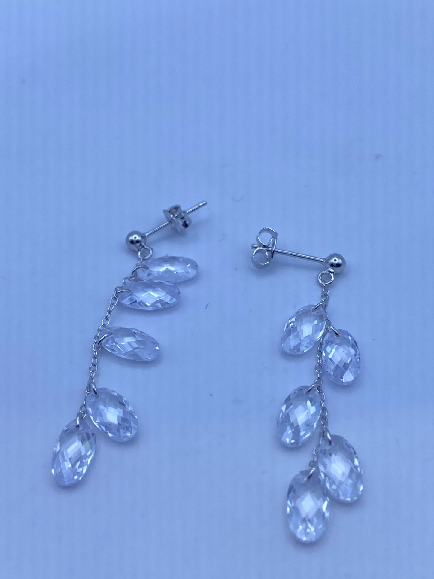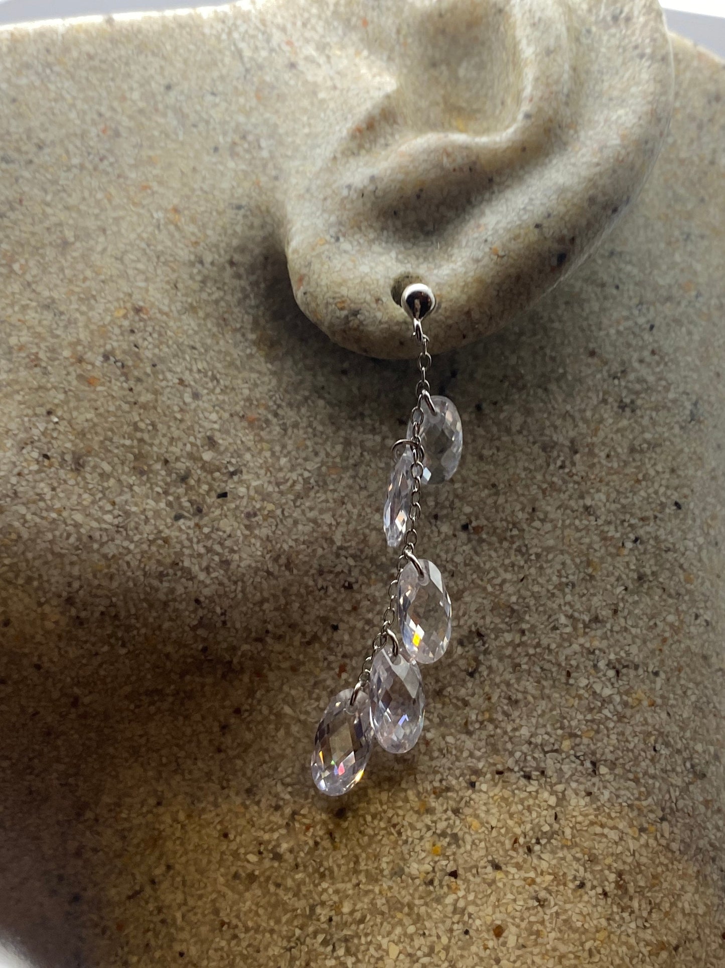 Vintage 925 Sterling Silver Crystal Chandelier Earrings