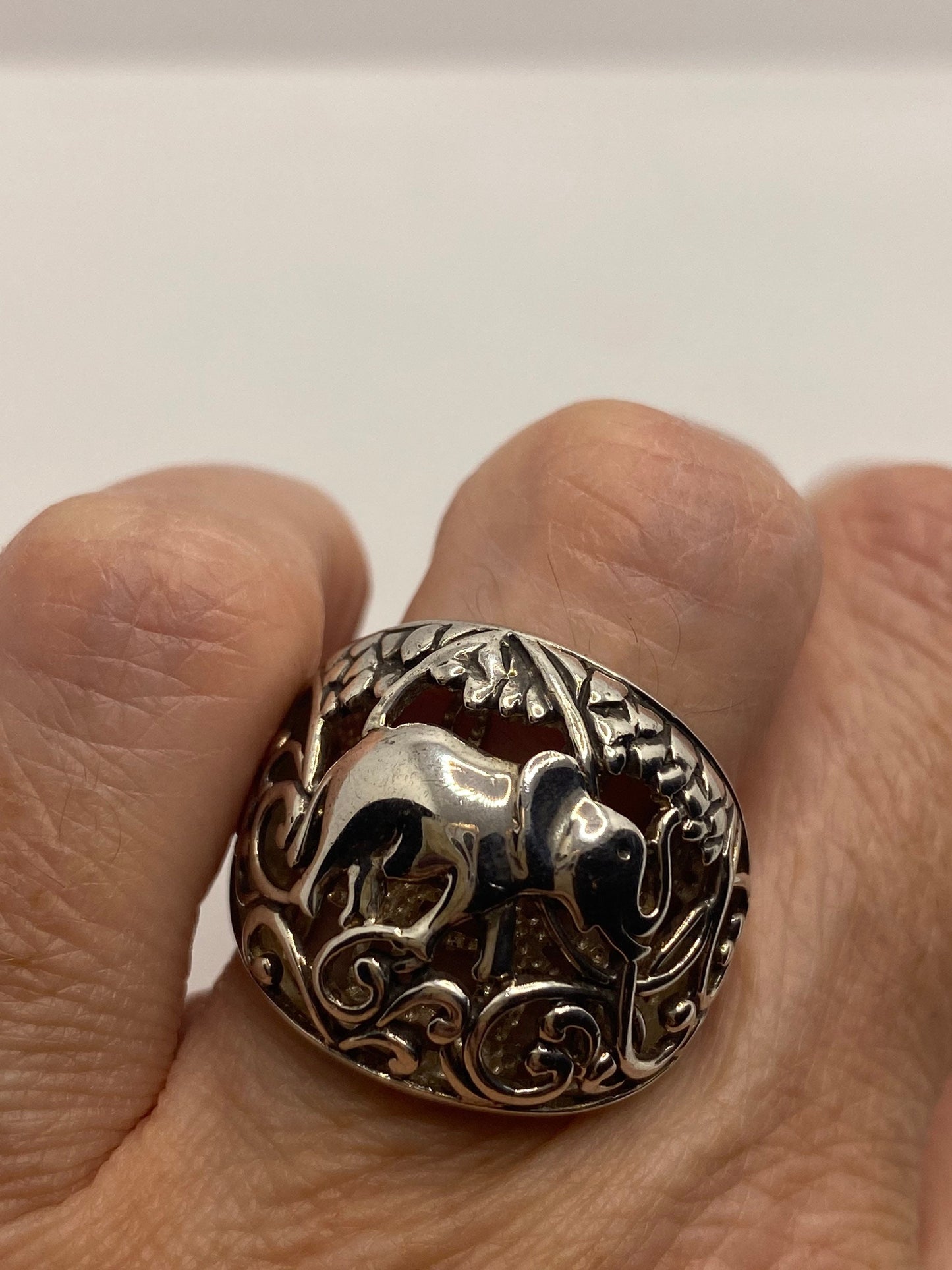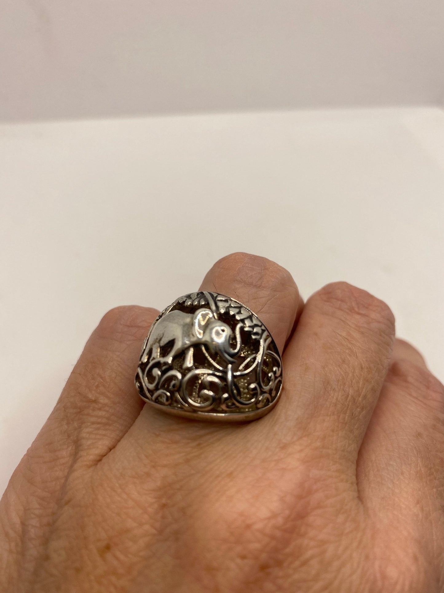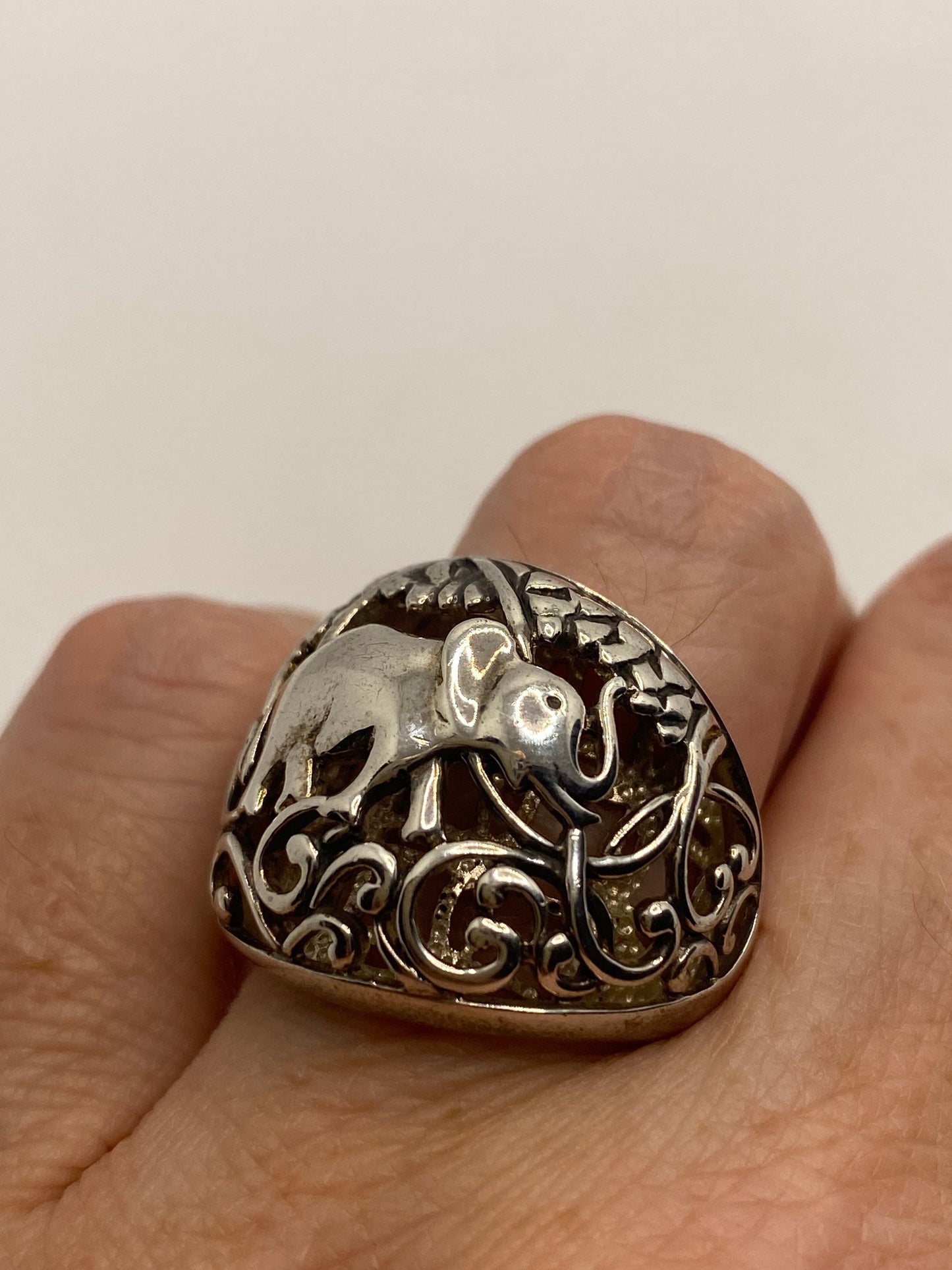 Vintage 925 Sterling Silver Filigree Elephant Ring