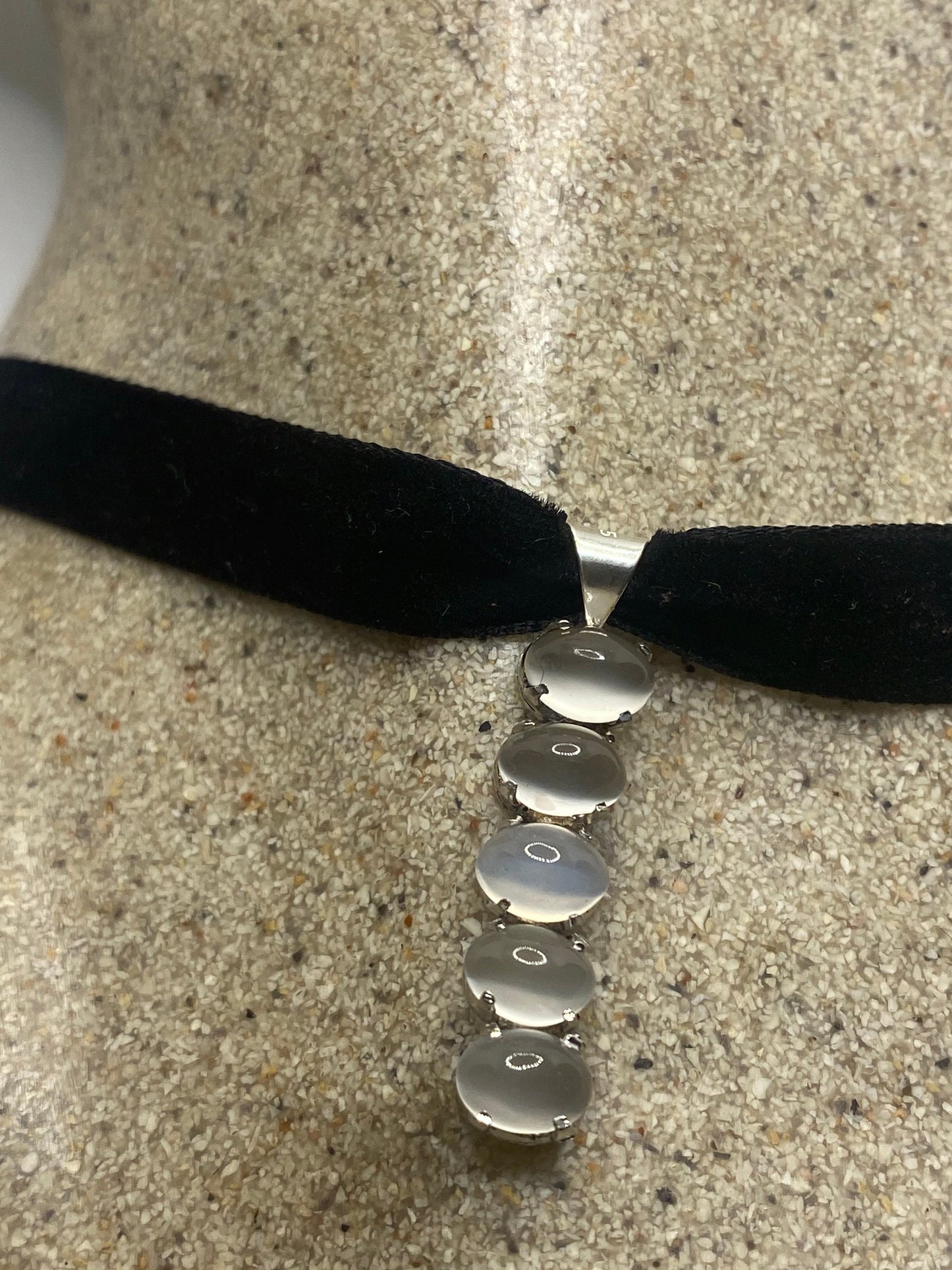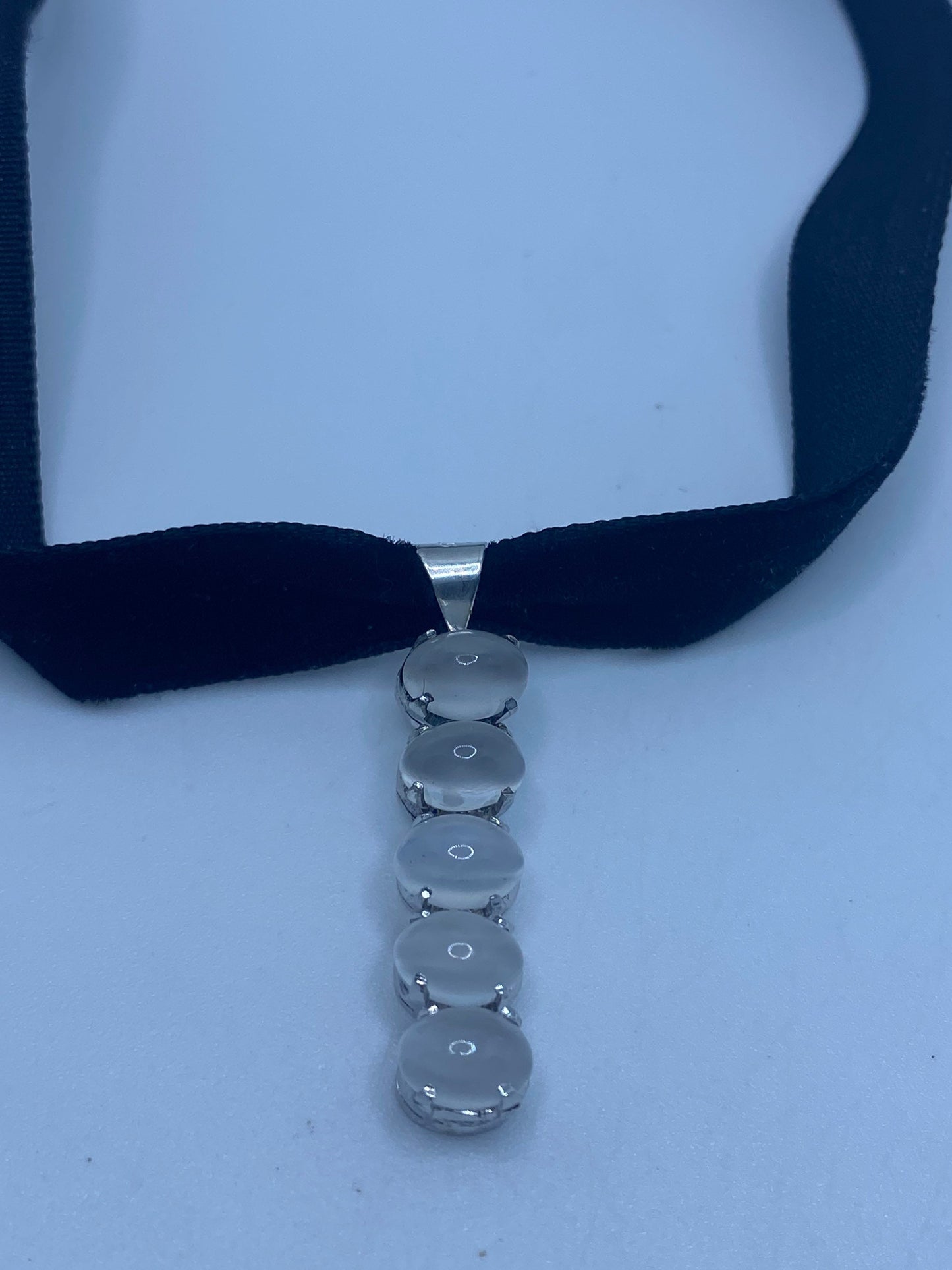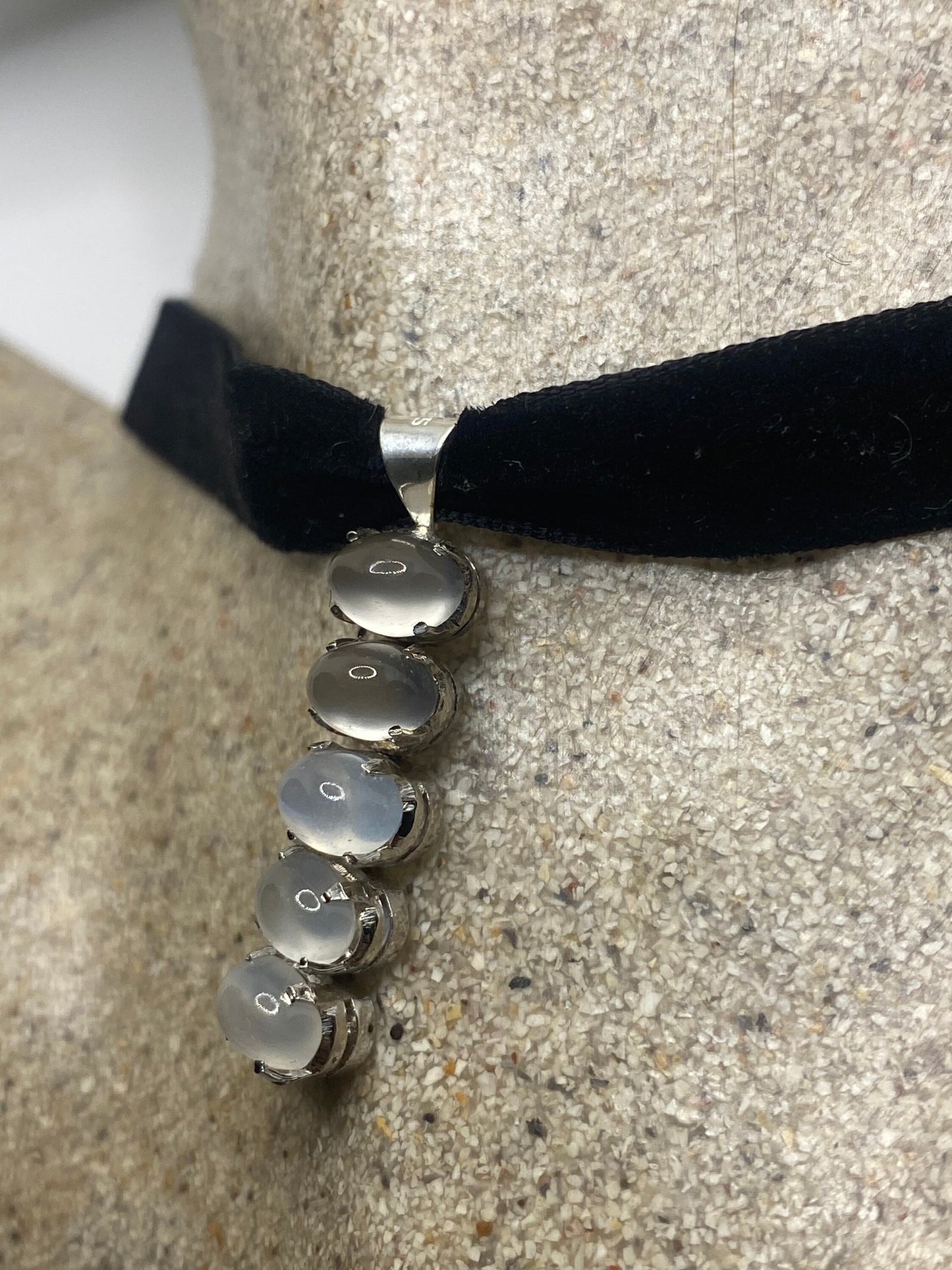 Vintage 925 Sterling Silver Moonstone Pendant Necklace Choker