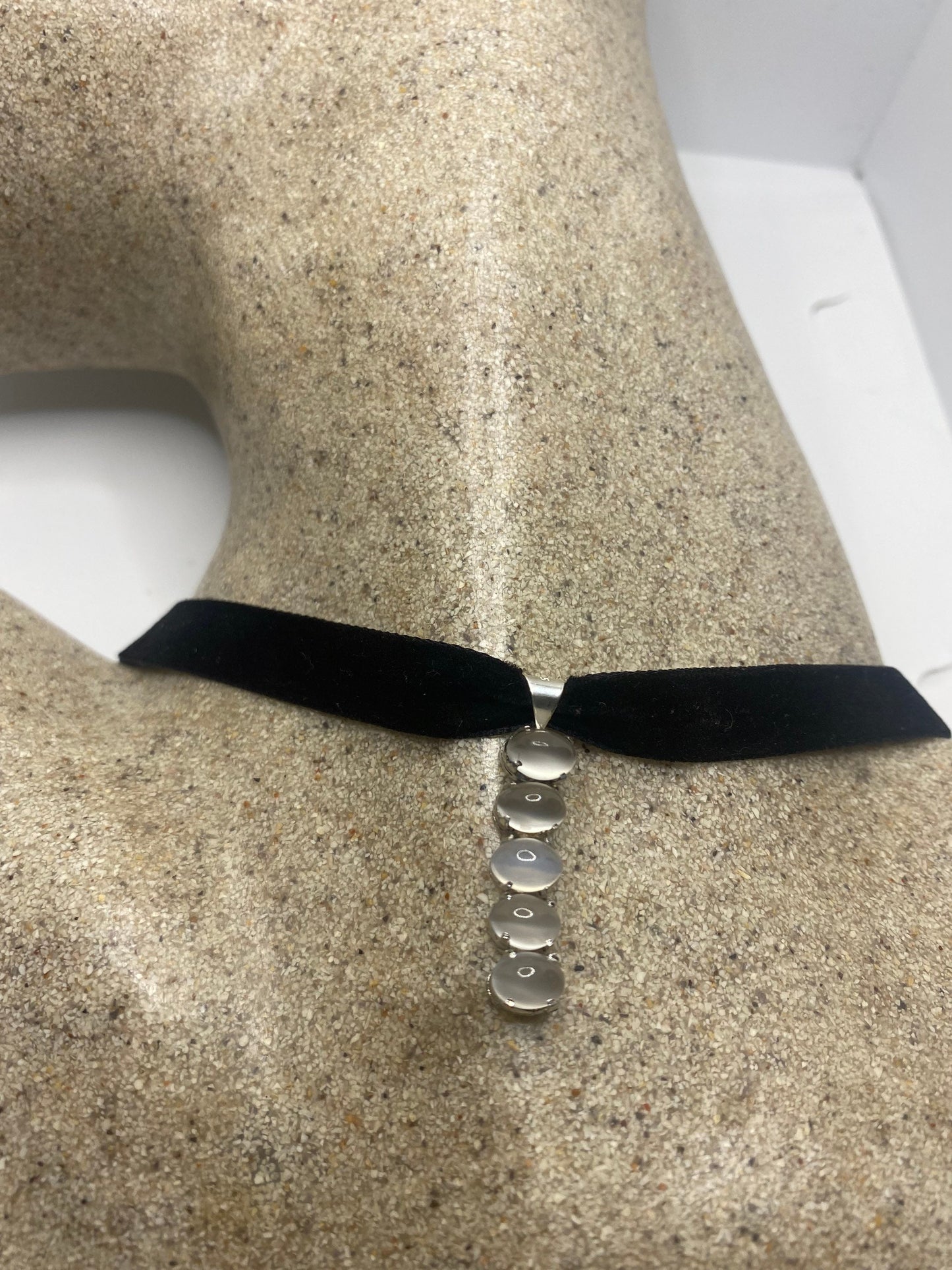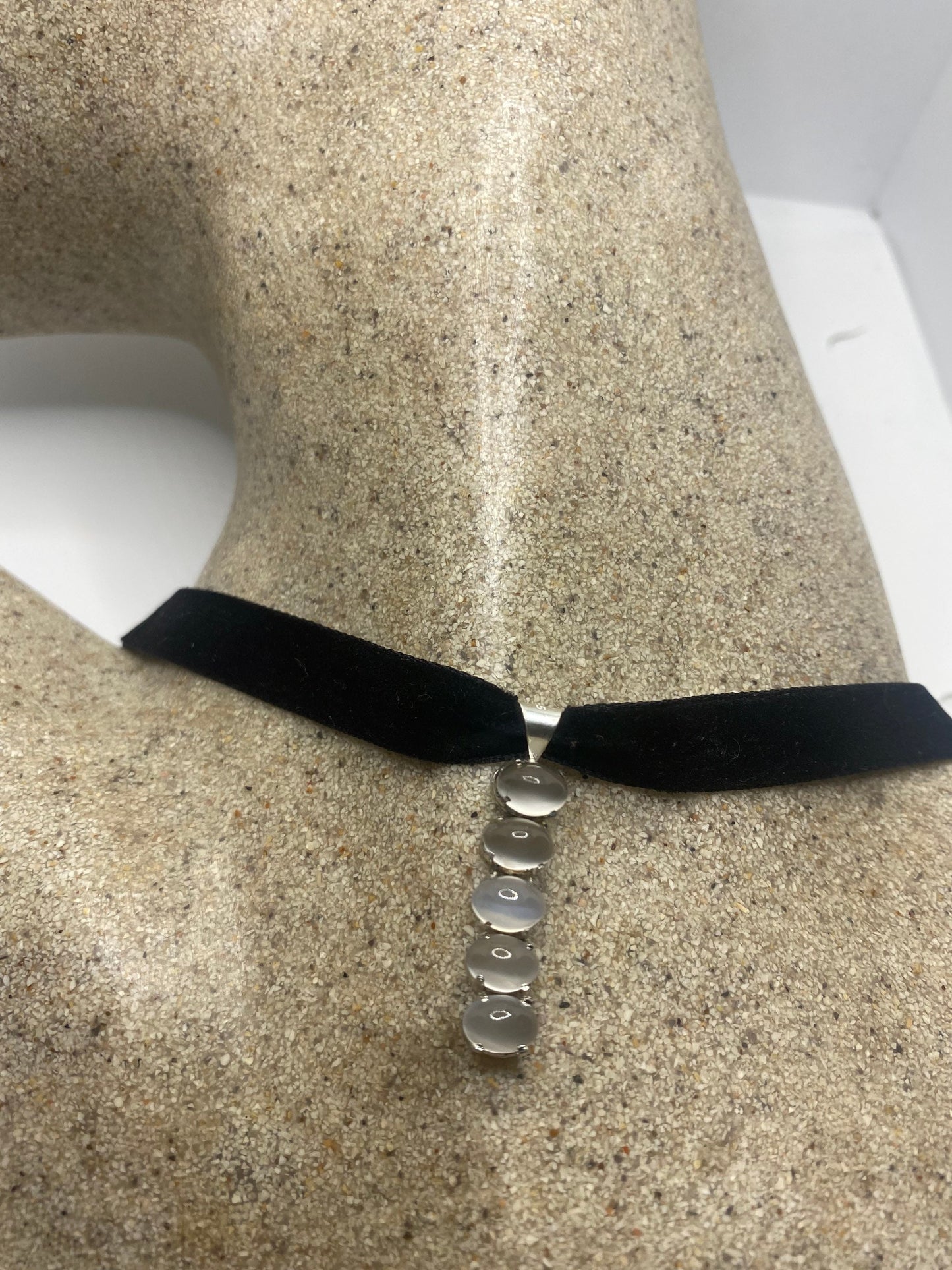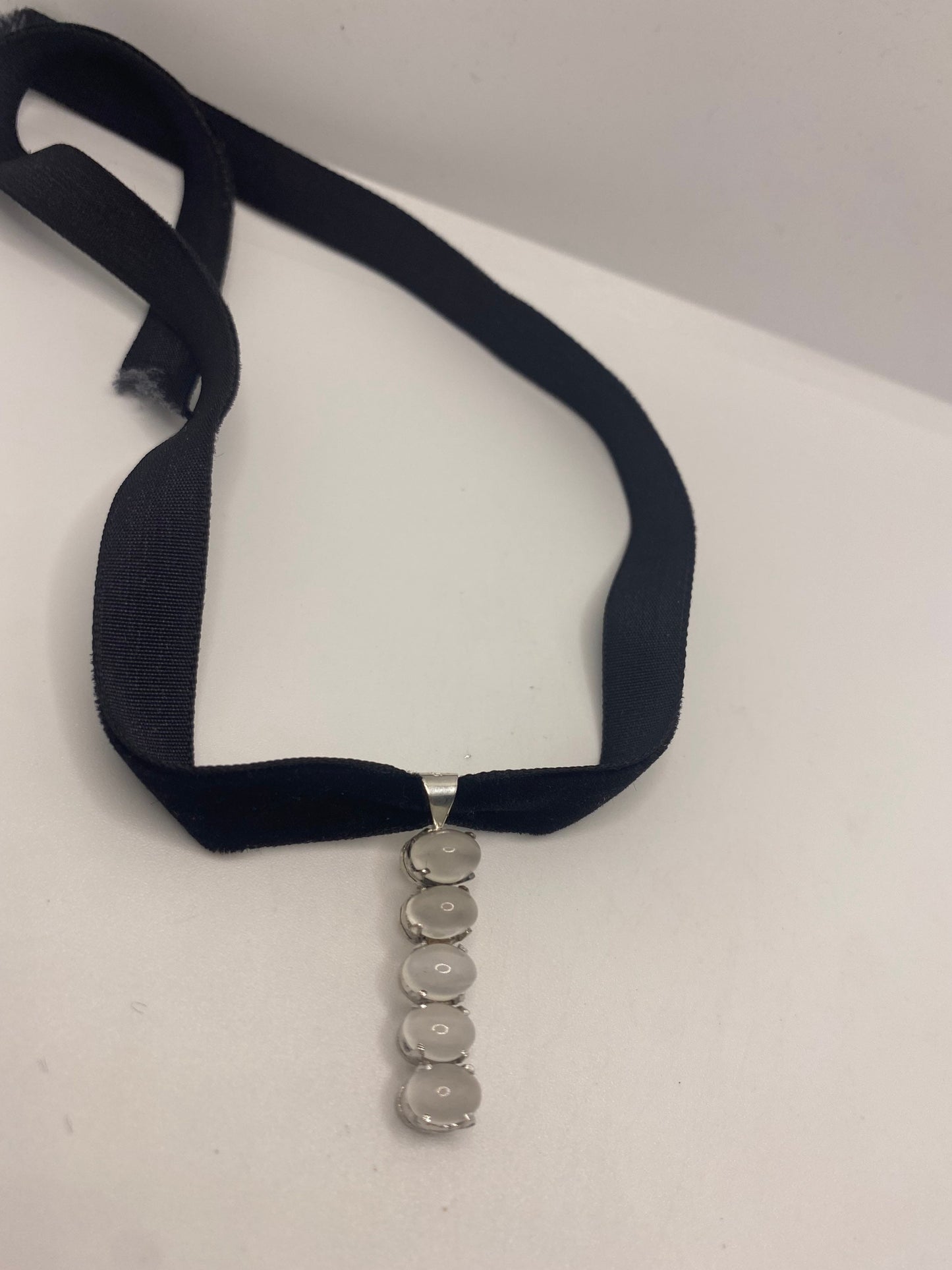 Vintage 925 Sterling Silver Moonstone Pendant Necklace Choker