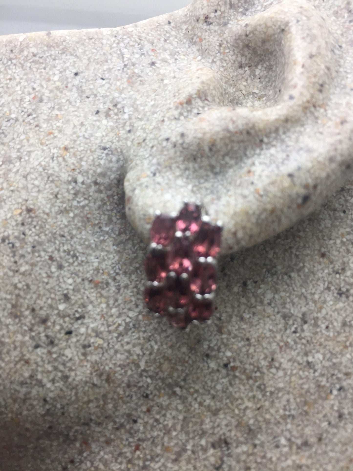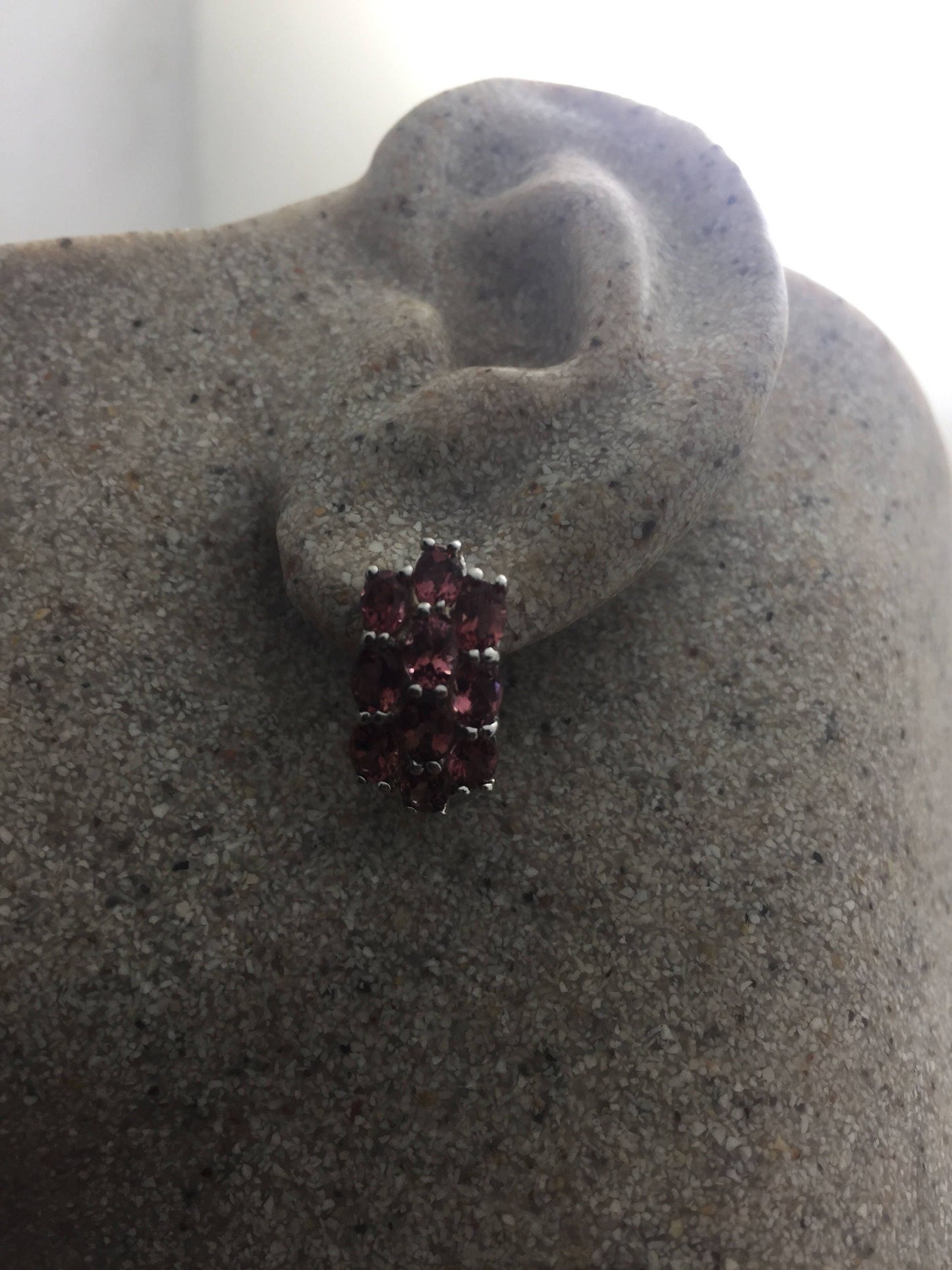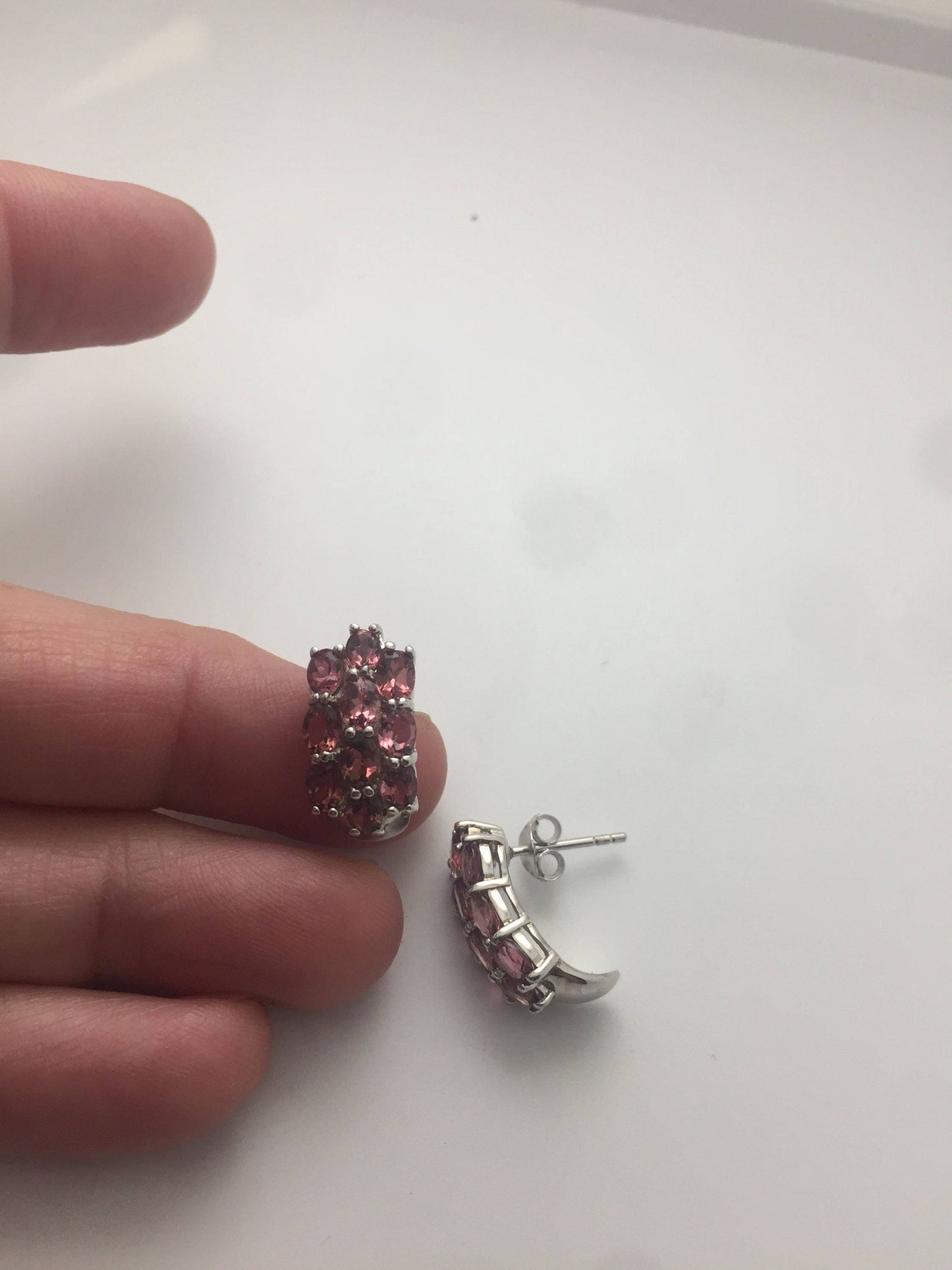 Handmade vintage Sterling silver earrings set with red to pink Tourmaline