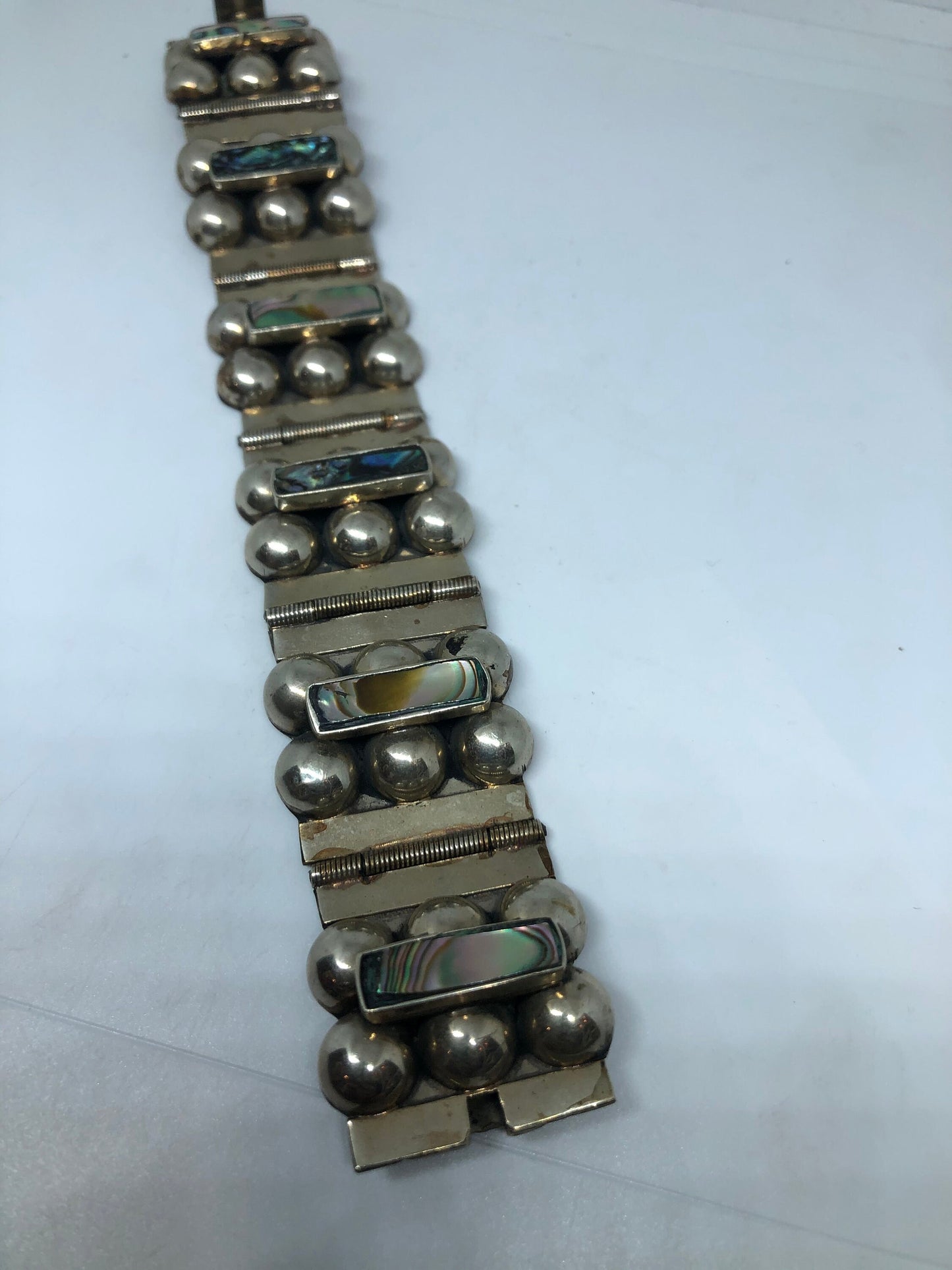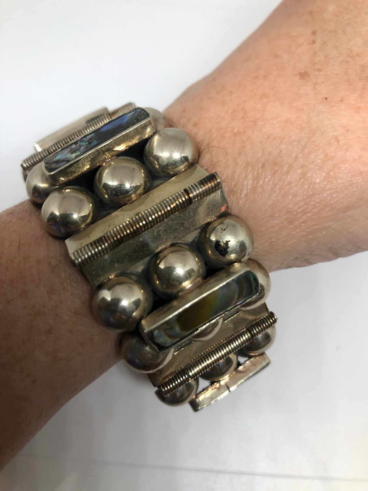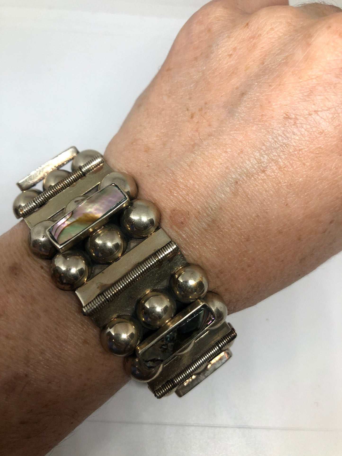 Vintage Abalone Mexican Alpaca Silver cutwork Bracelet