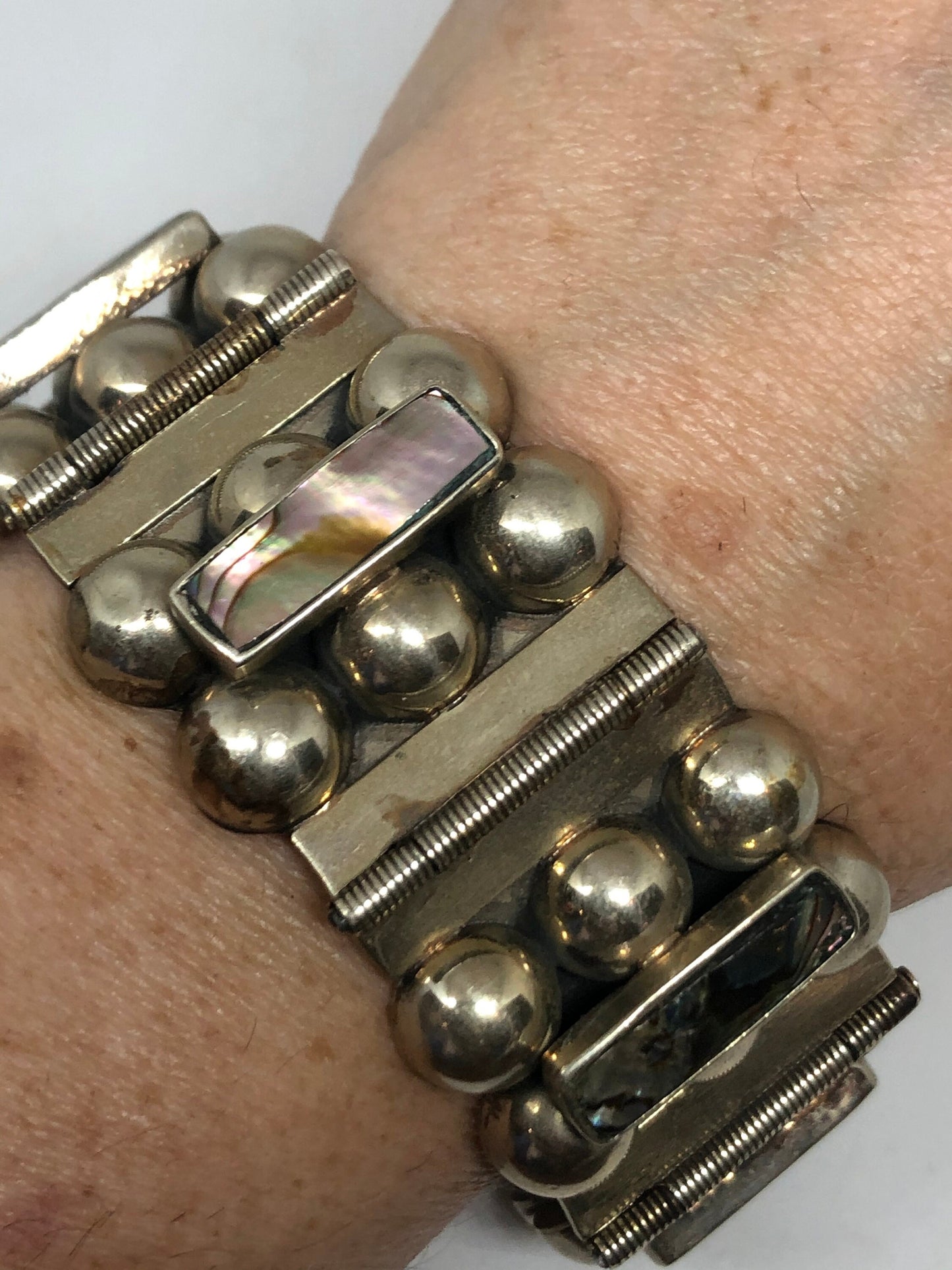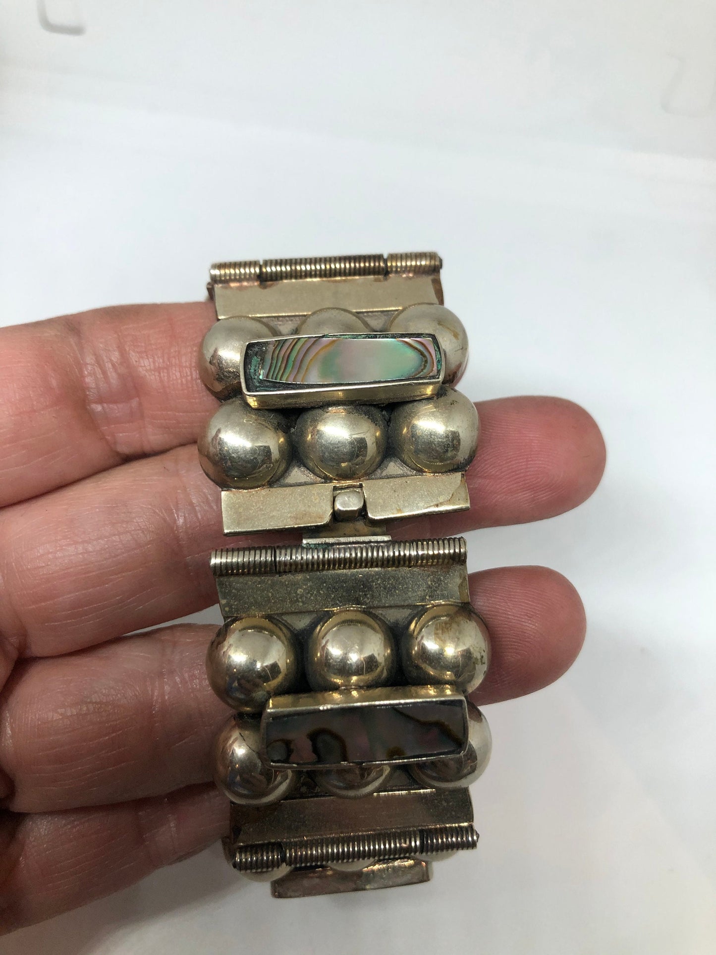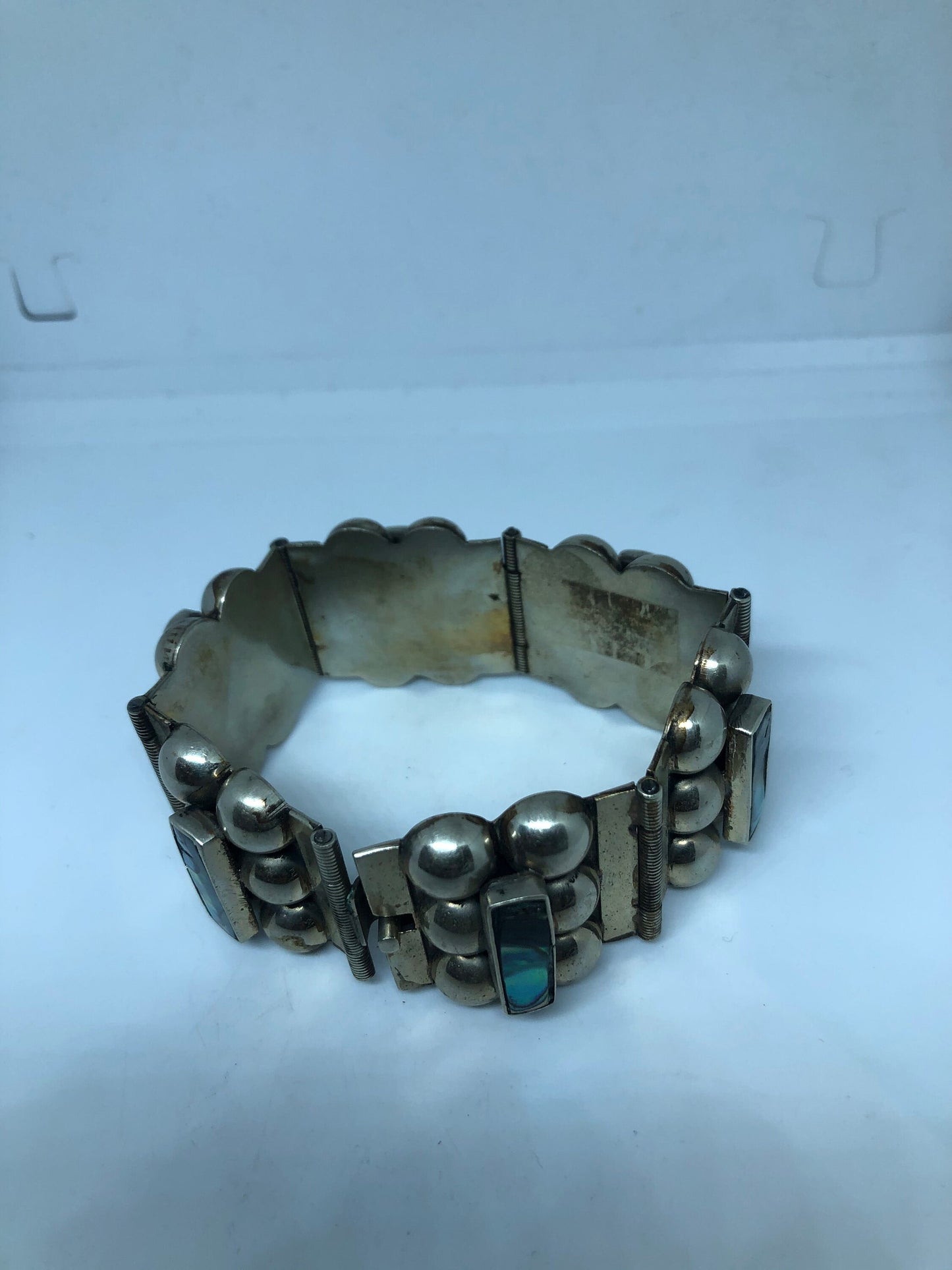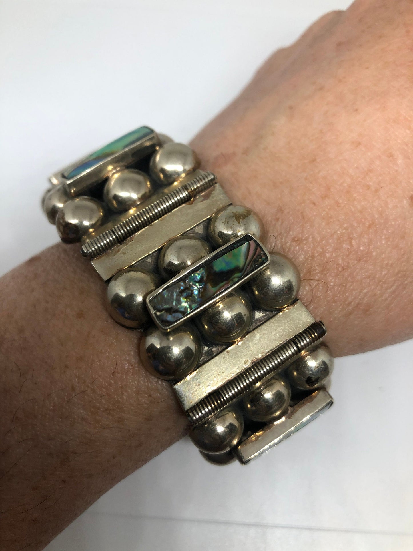 Vintage Abalone Mexican Alpaca Silver cutwork Bracelet