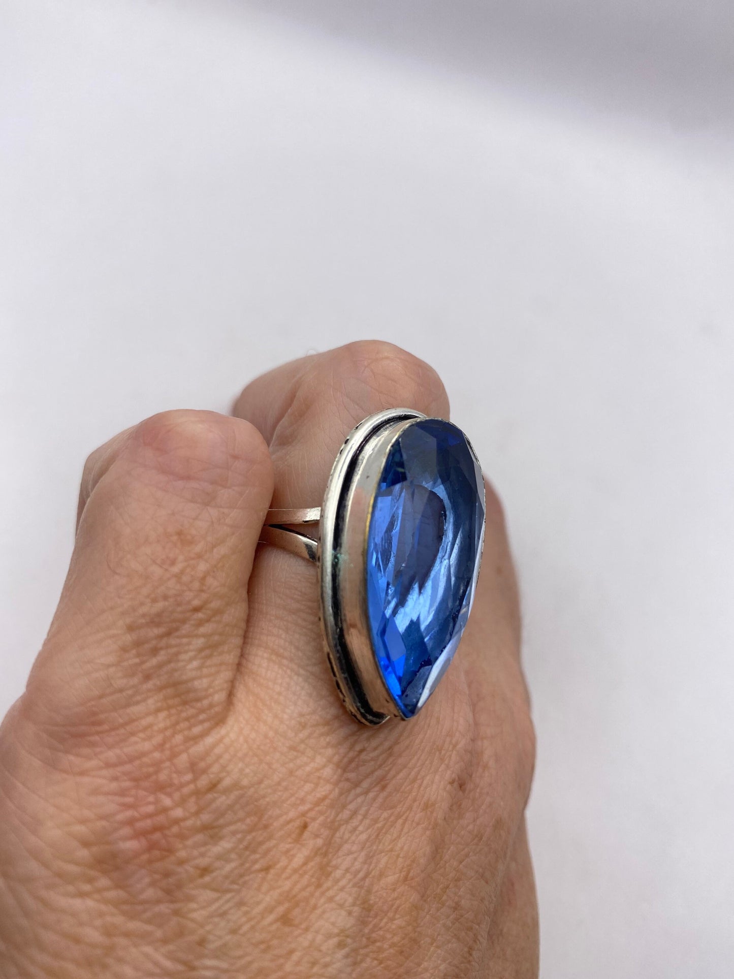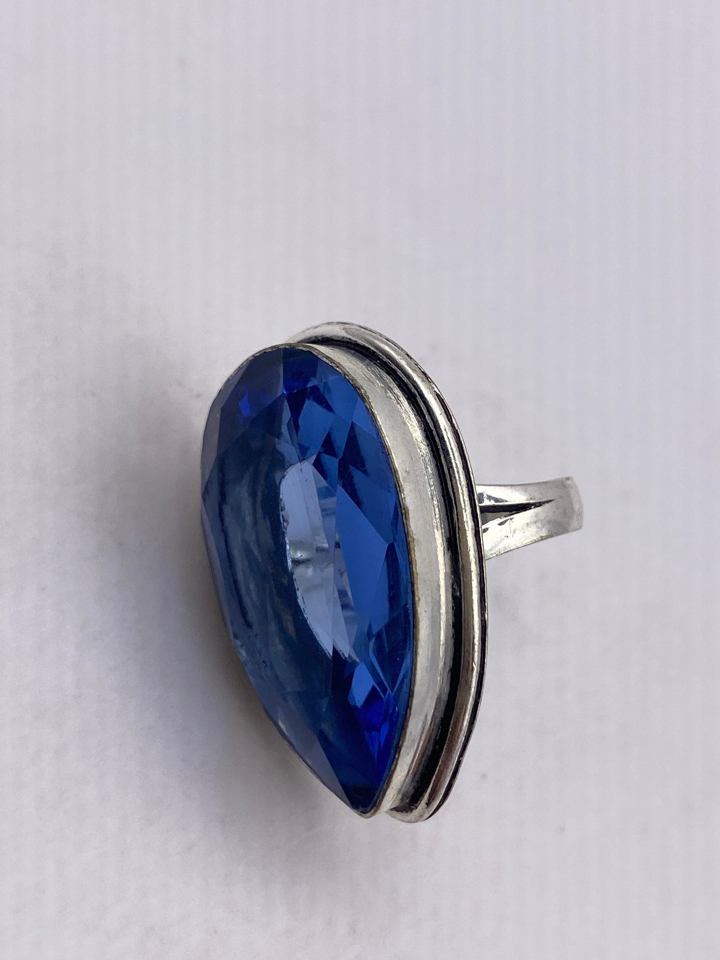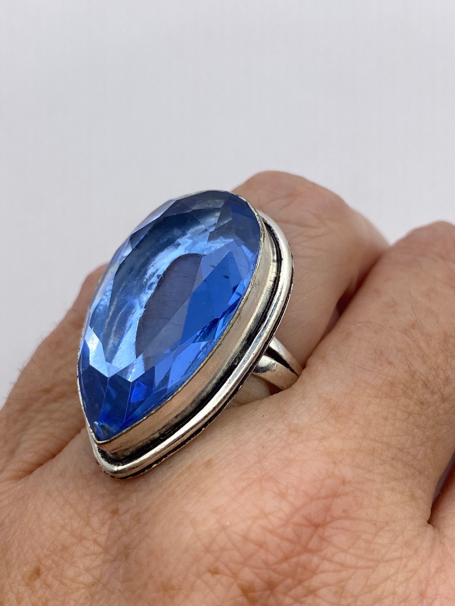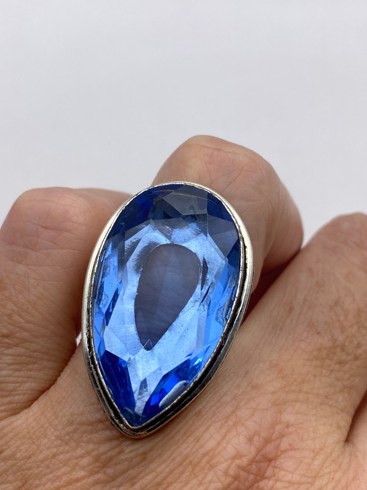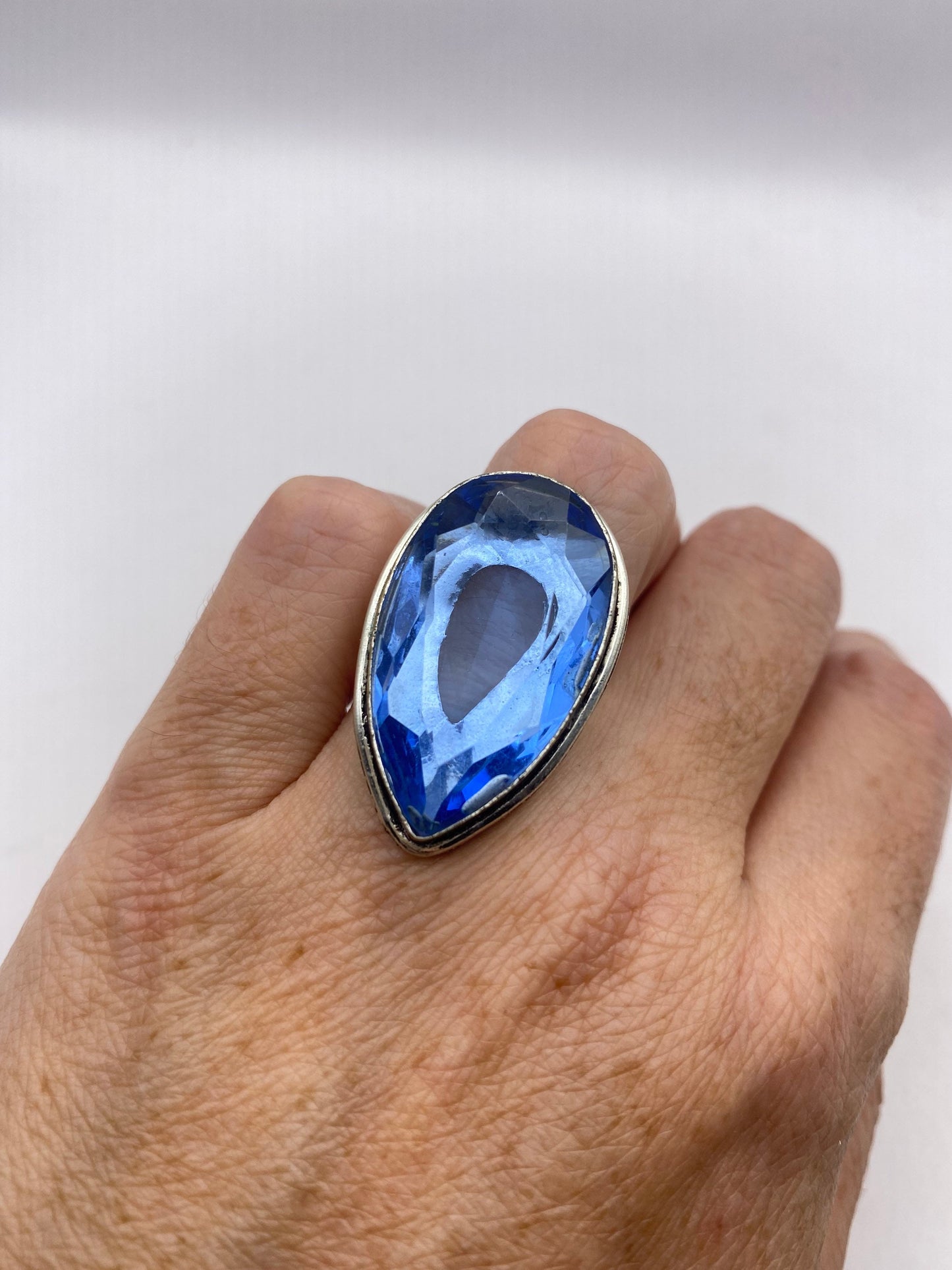 Large genuine aqua blue volcanic art glass Vintage ring