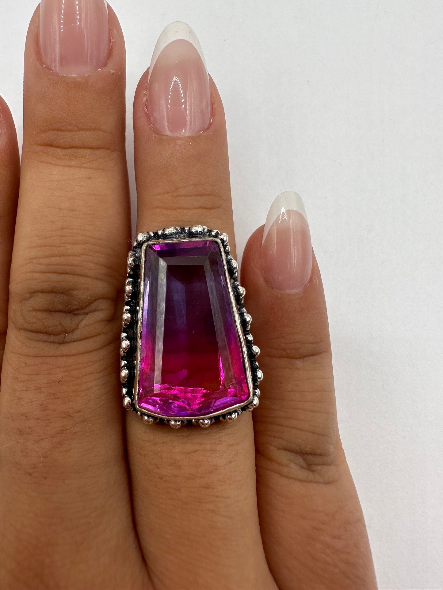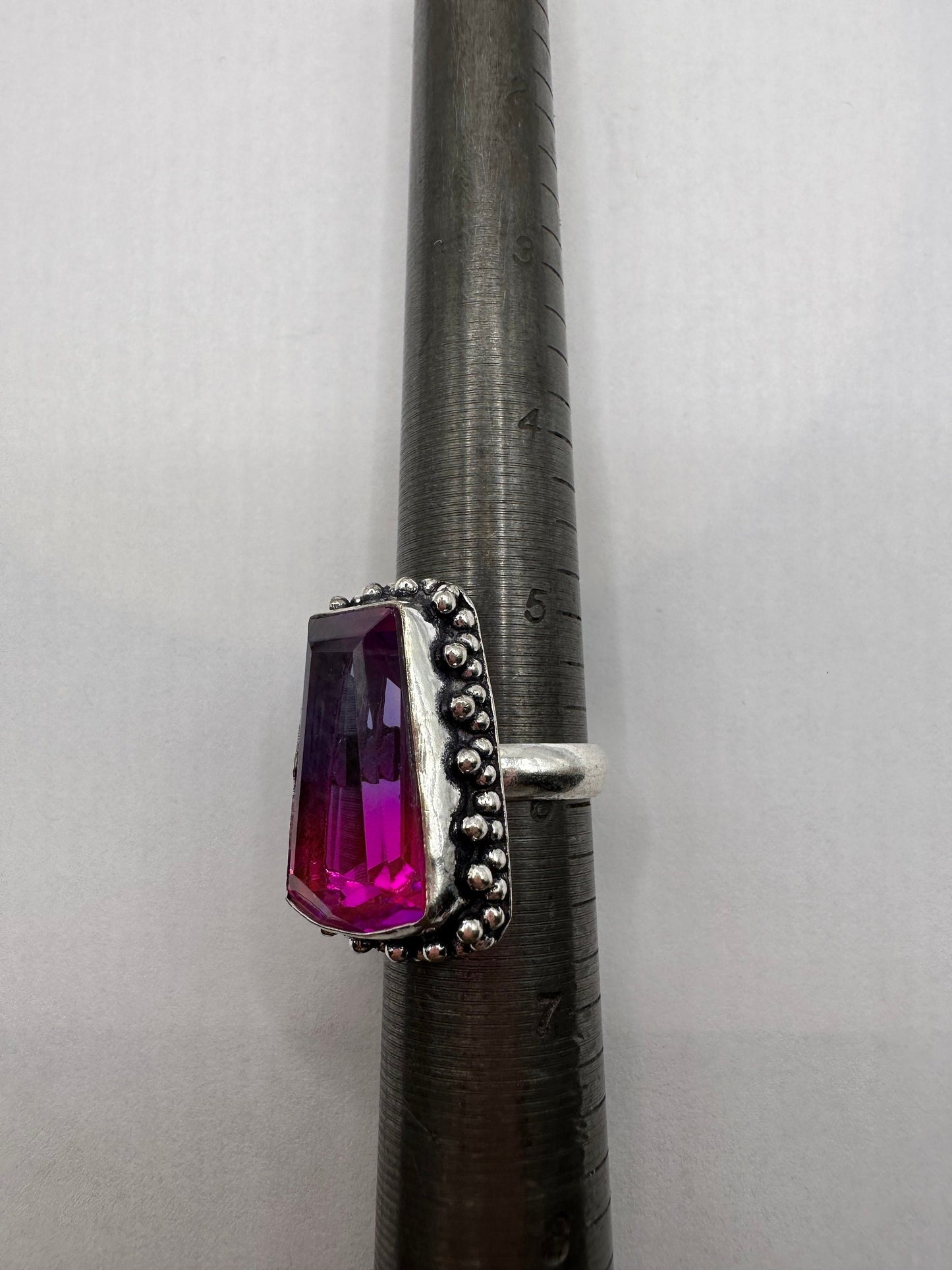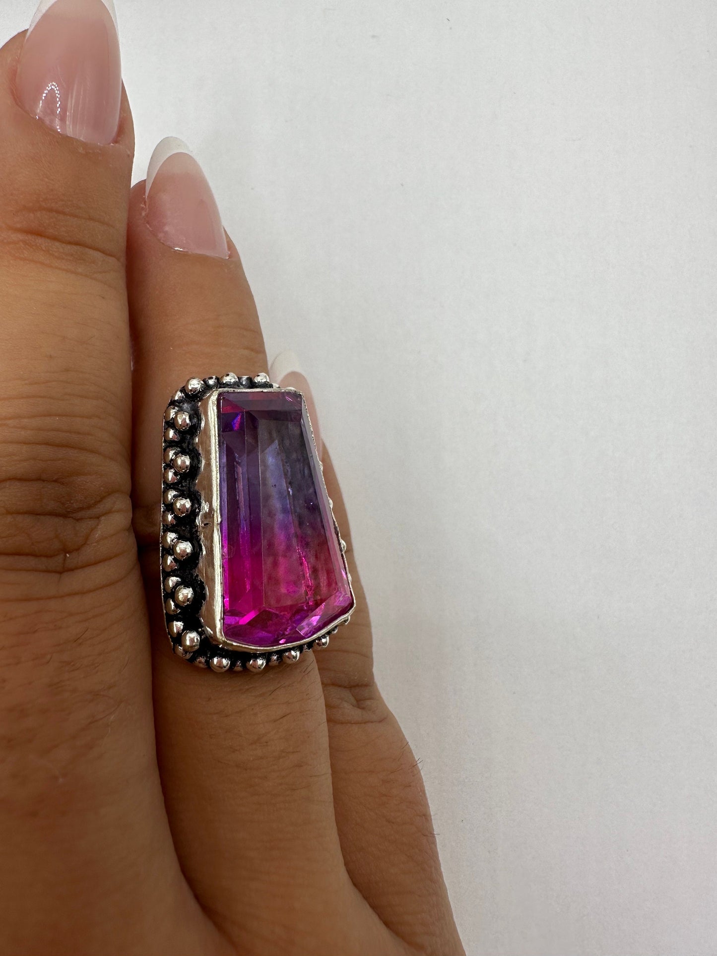 Vintage Aqua Teal Pink Vintage Art Glass Long Knuckle Ring