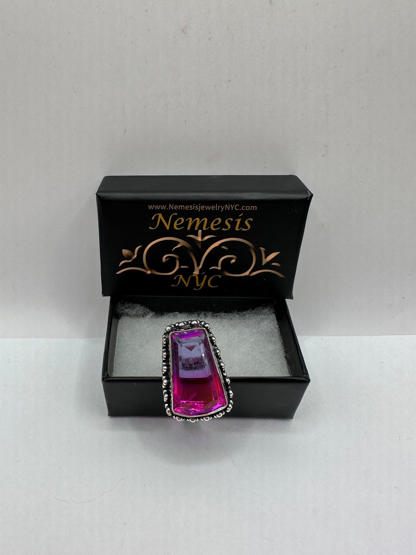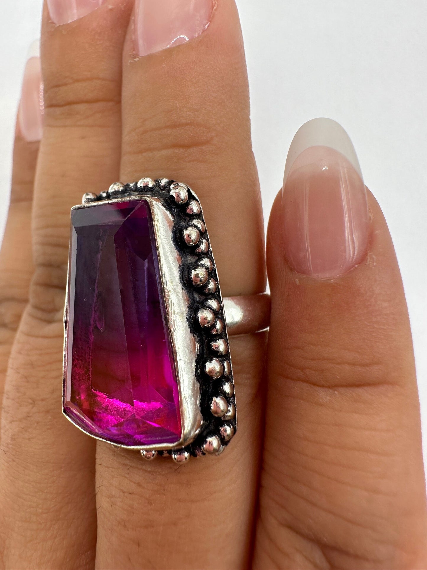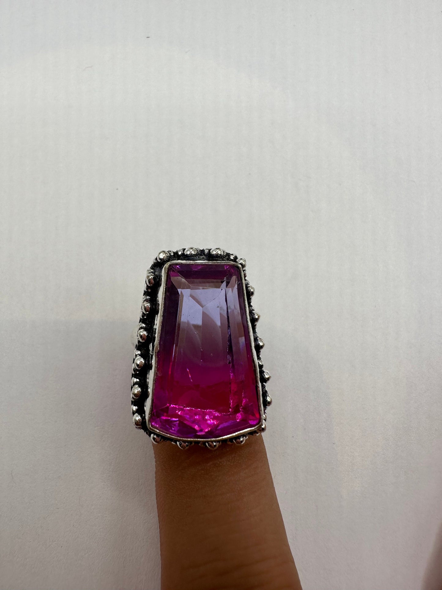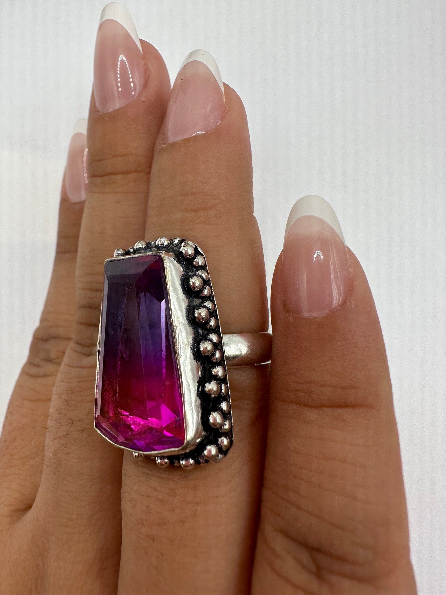 Vintage Aqua Teal Pink Vintage Art Glass Long Knuckle Ring