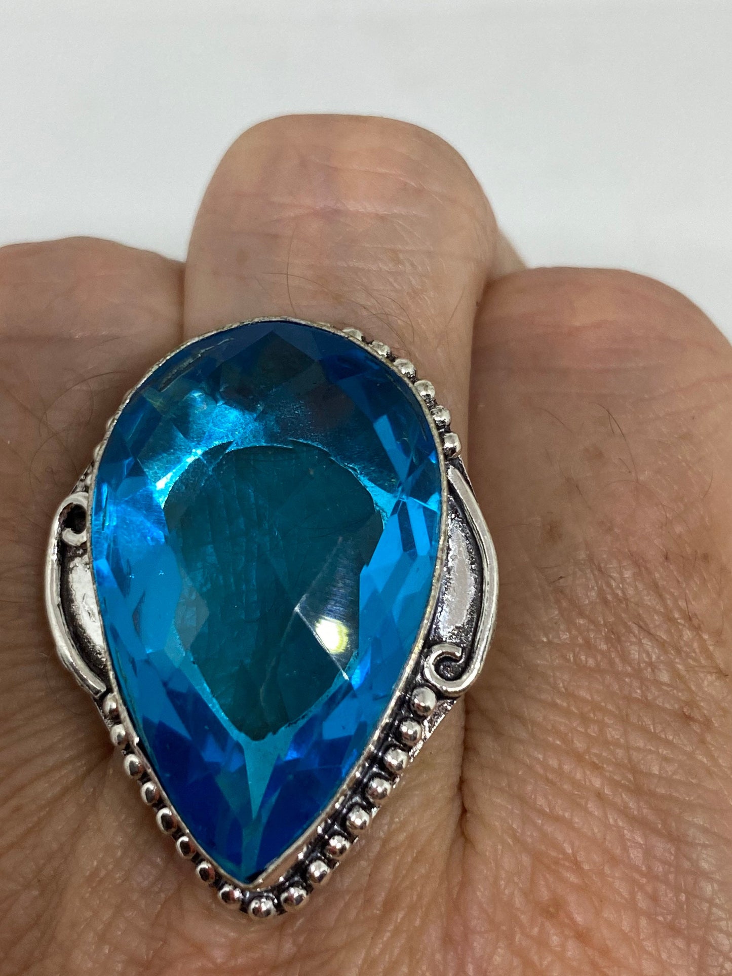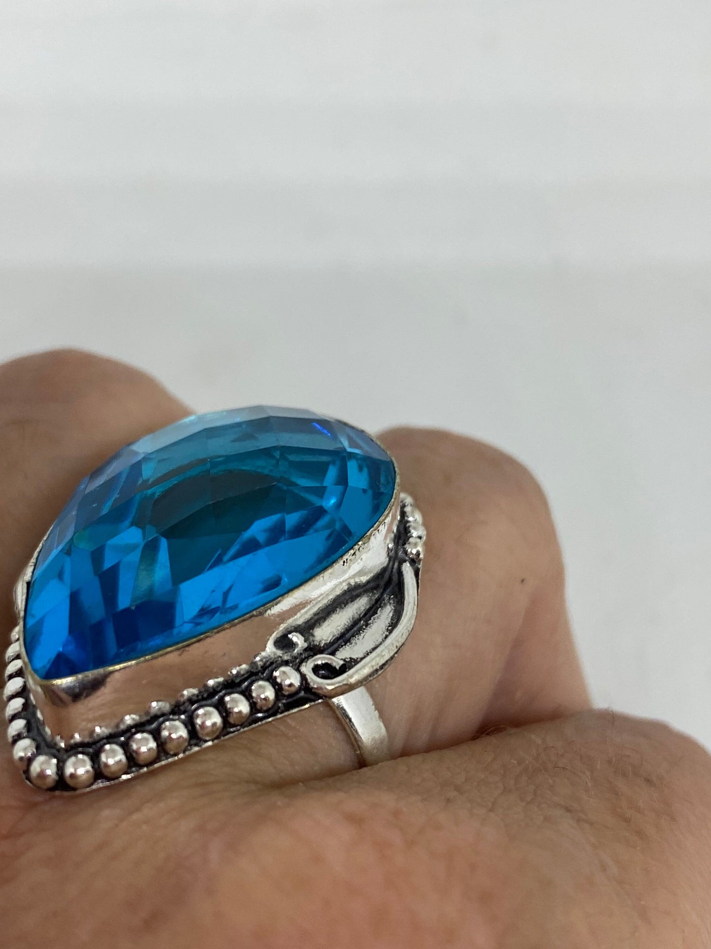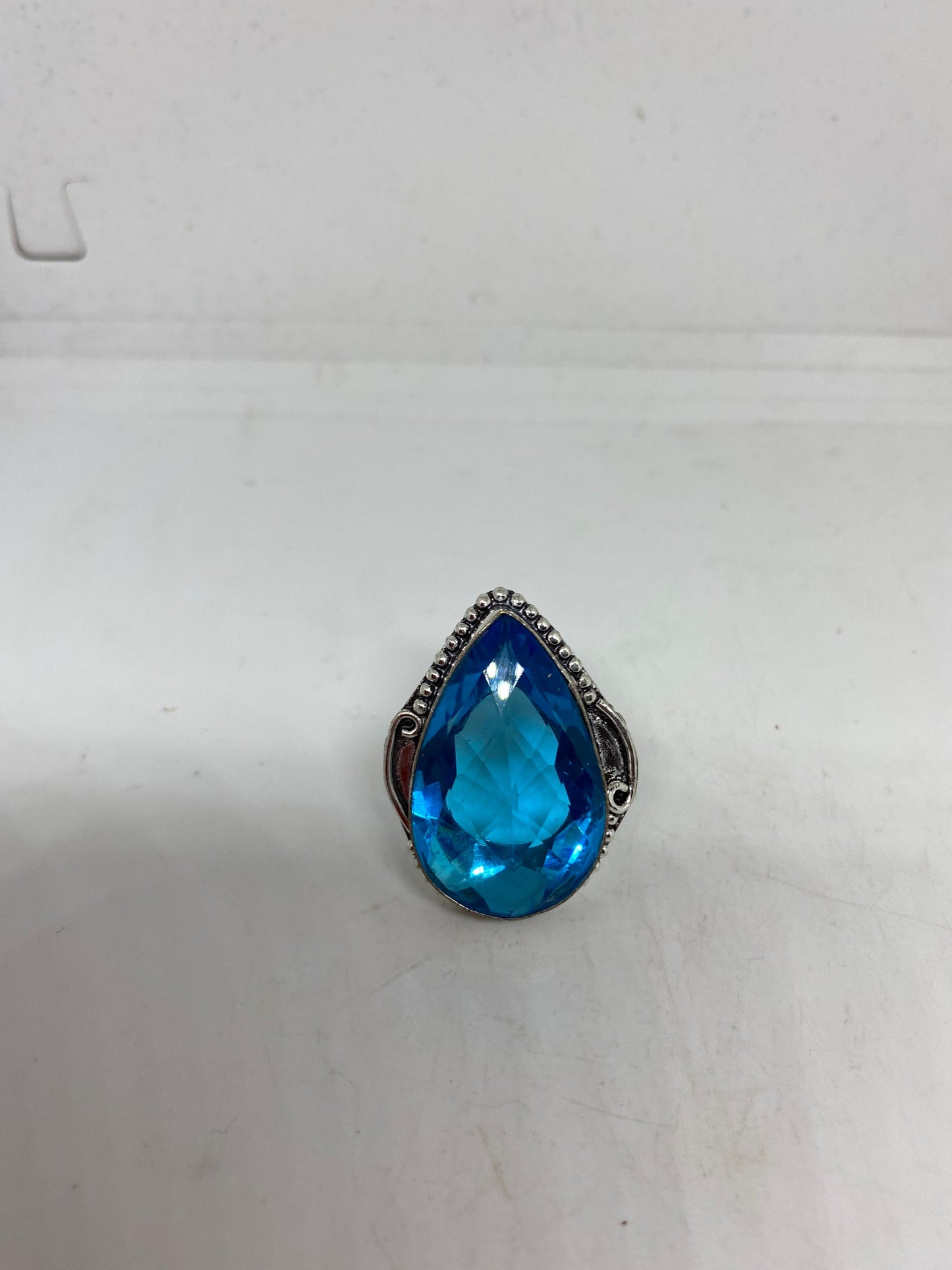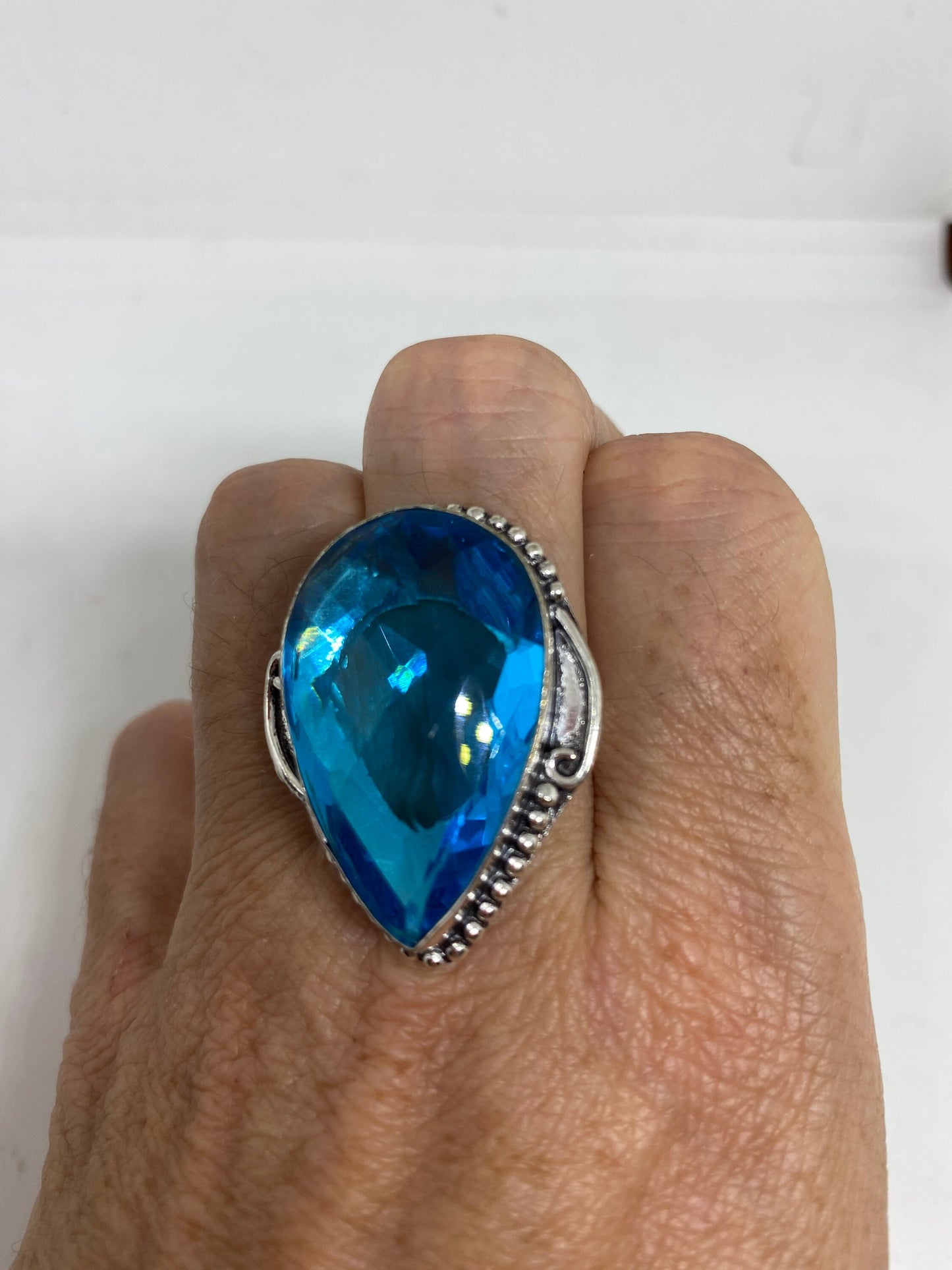 Vintage Aquamarine Vintage Art Glass Deco Ring