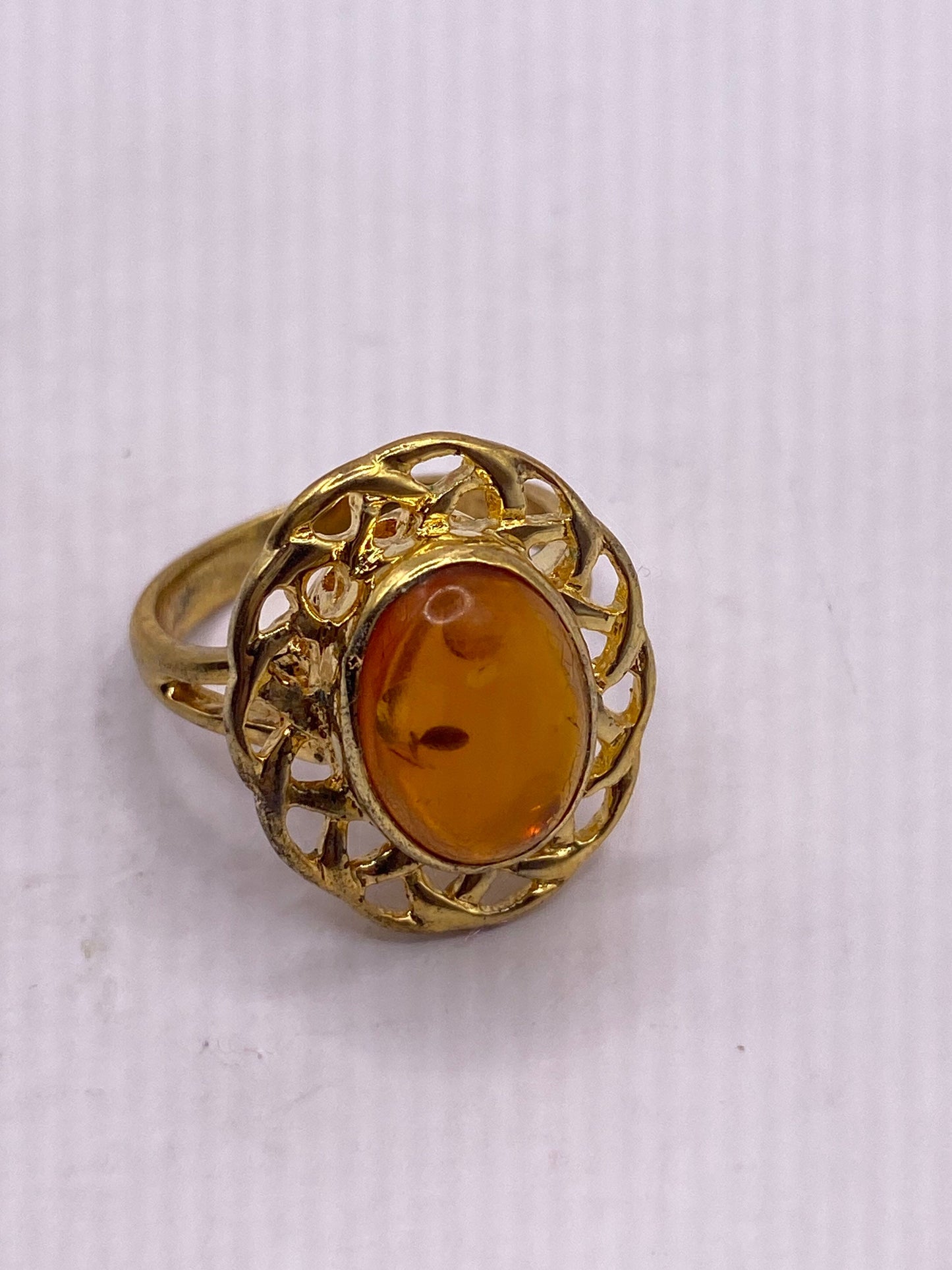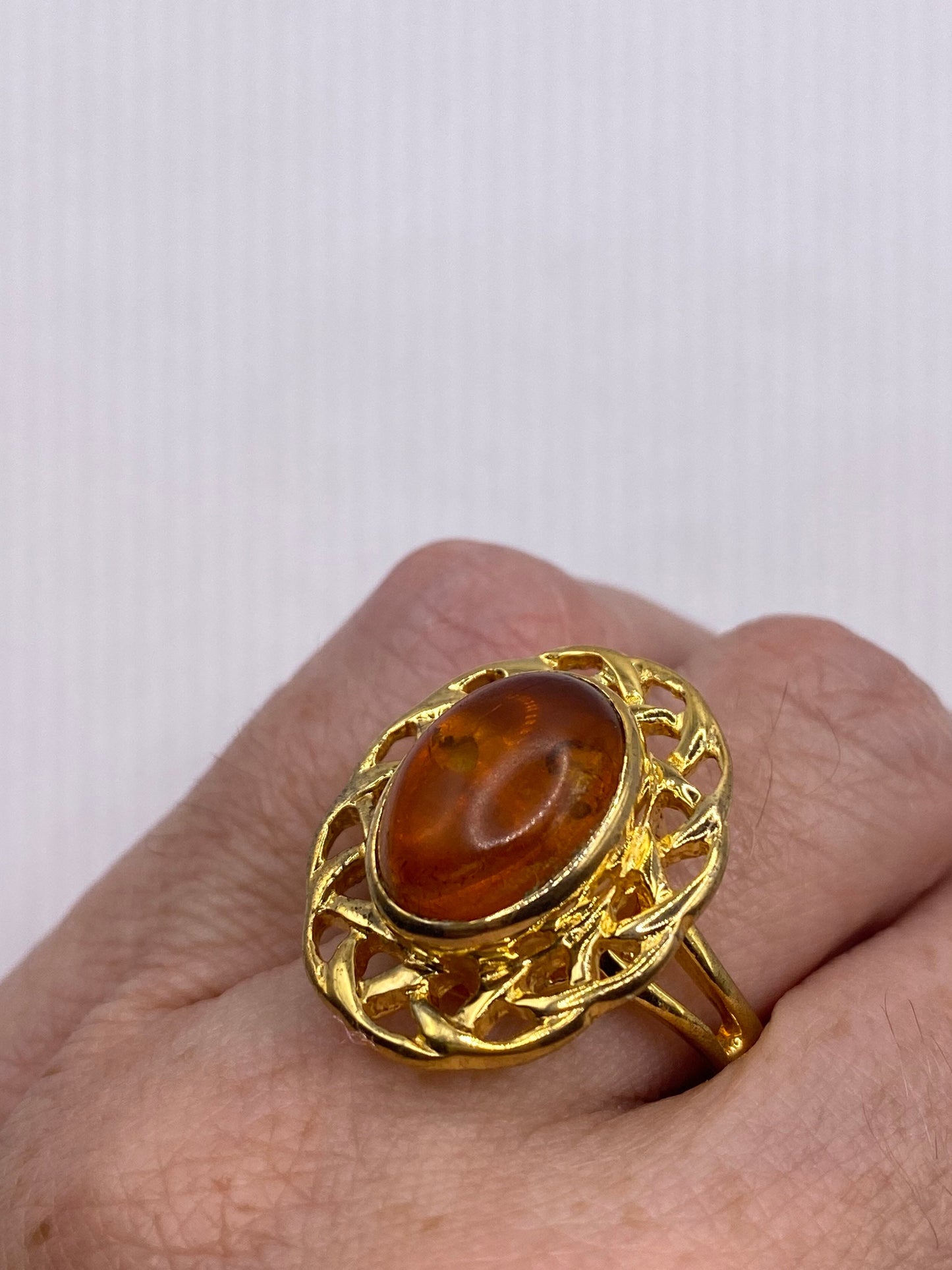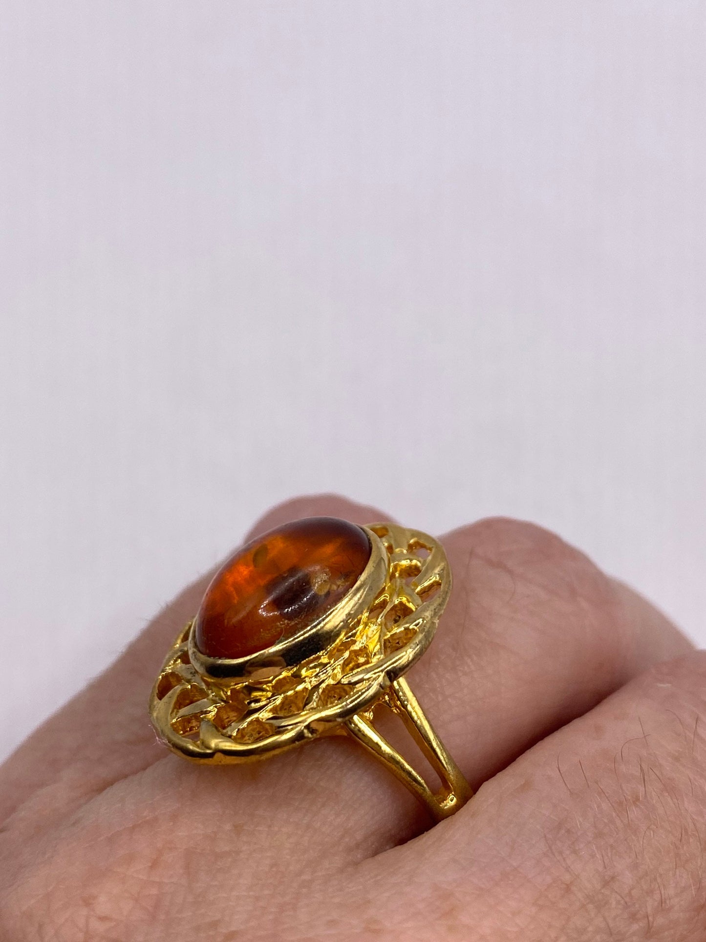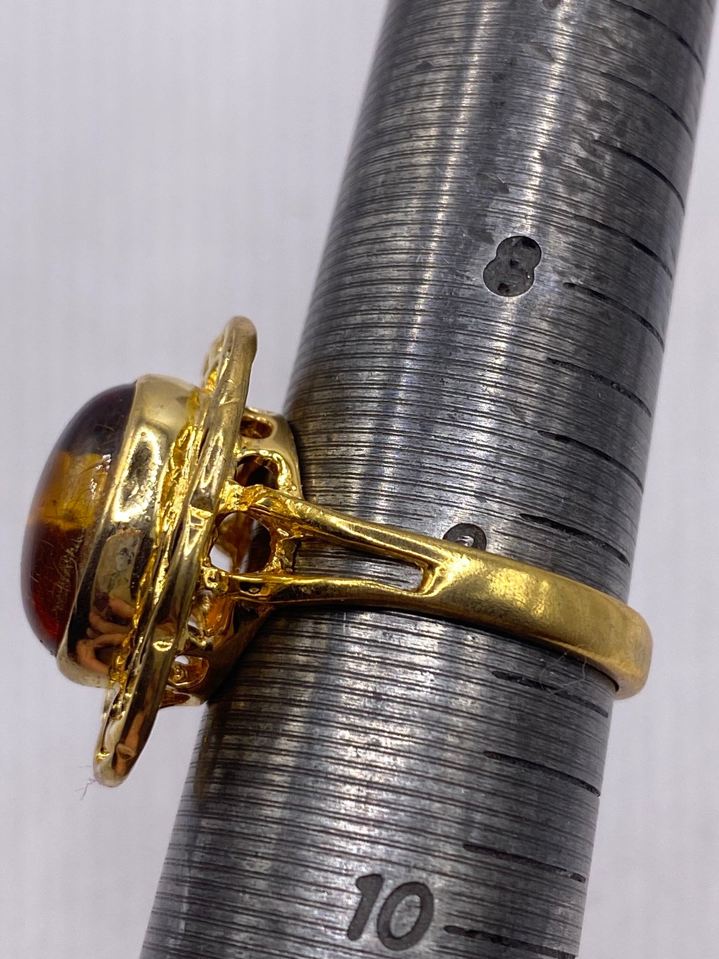 Vintage Baltic Resin Ring Gold 925 Sterling Silver Cocktail Ring
