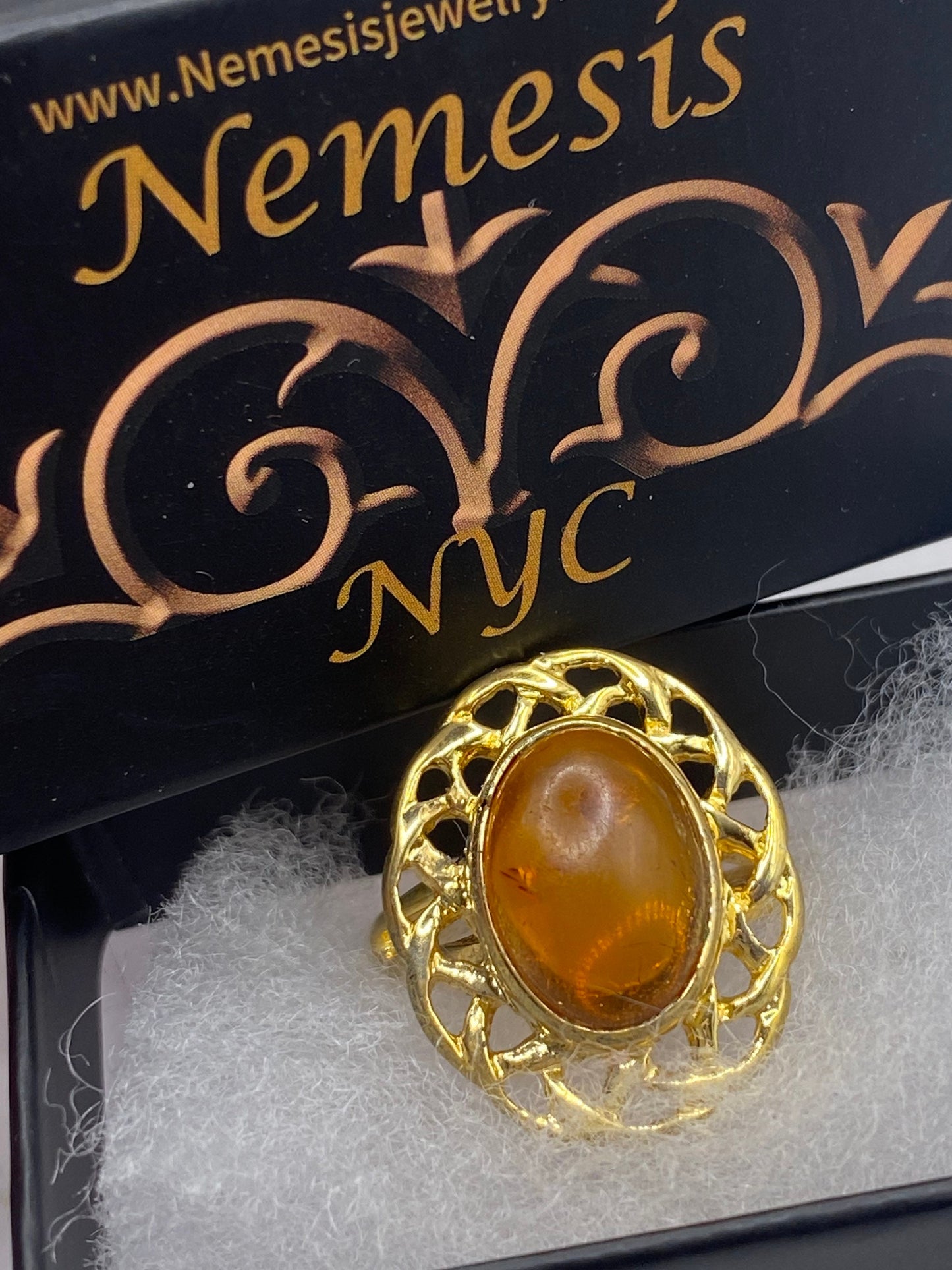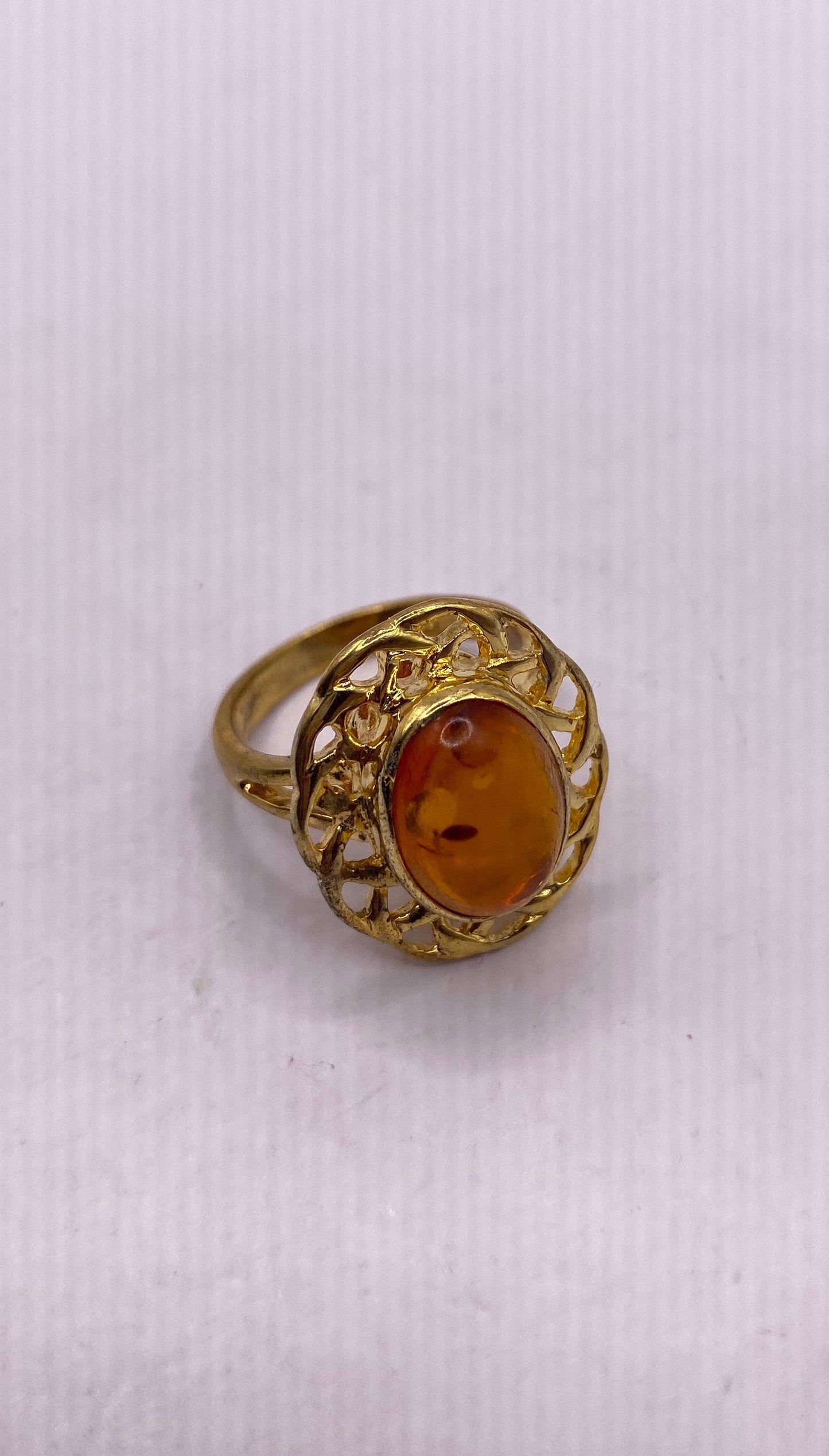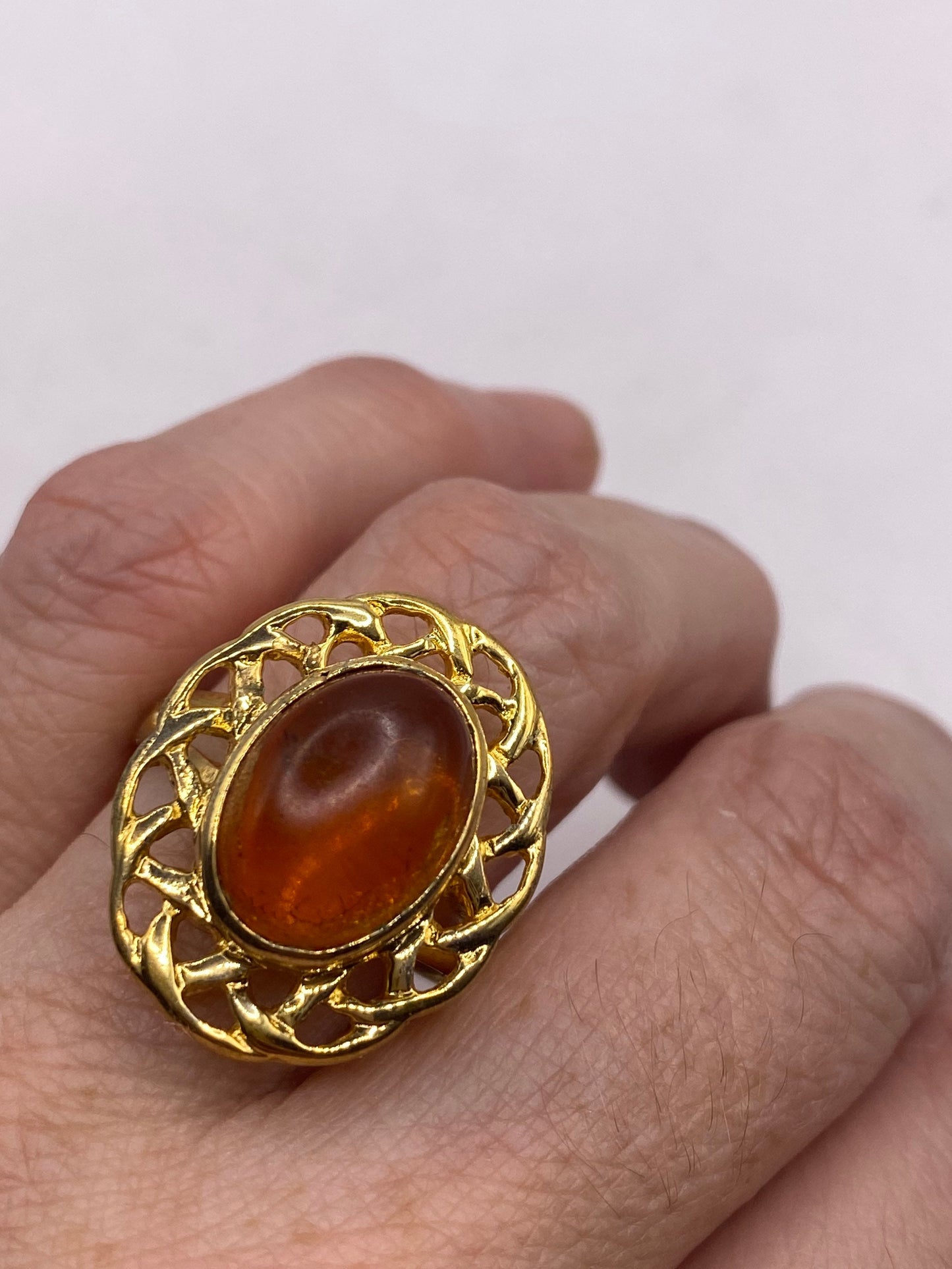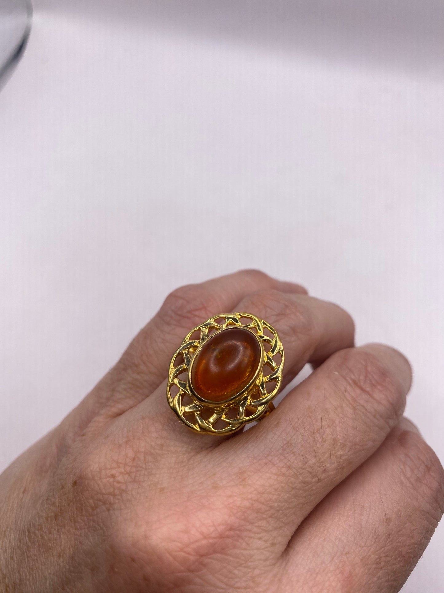 Vintage Baltic Resin Ring Gold 925 Sterling Silver Cocktail Ring