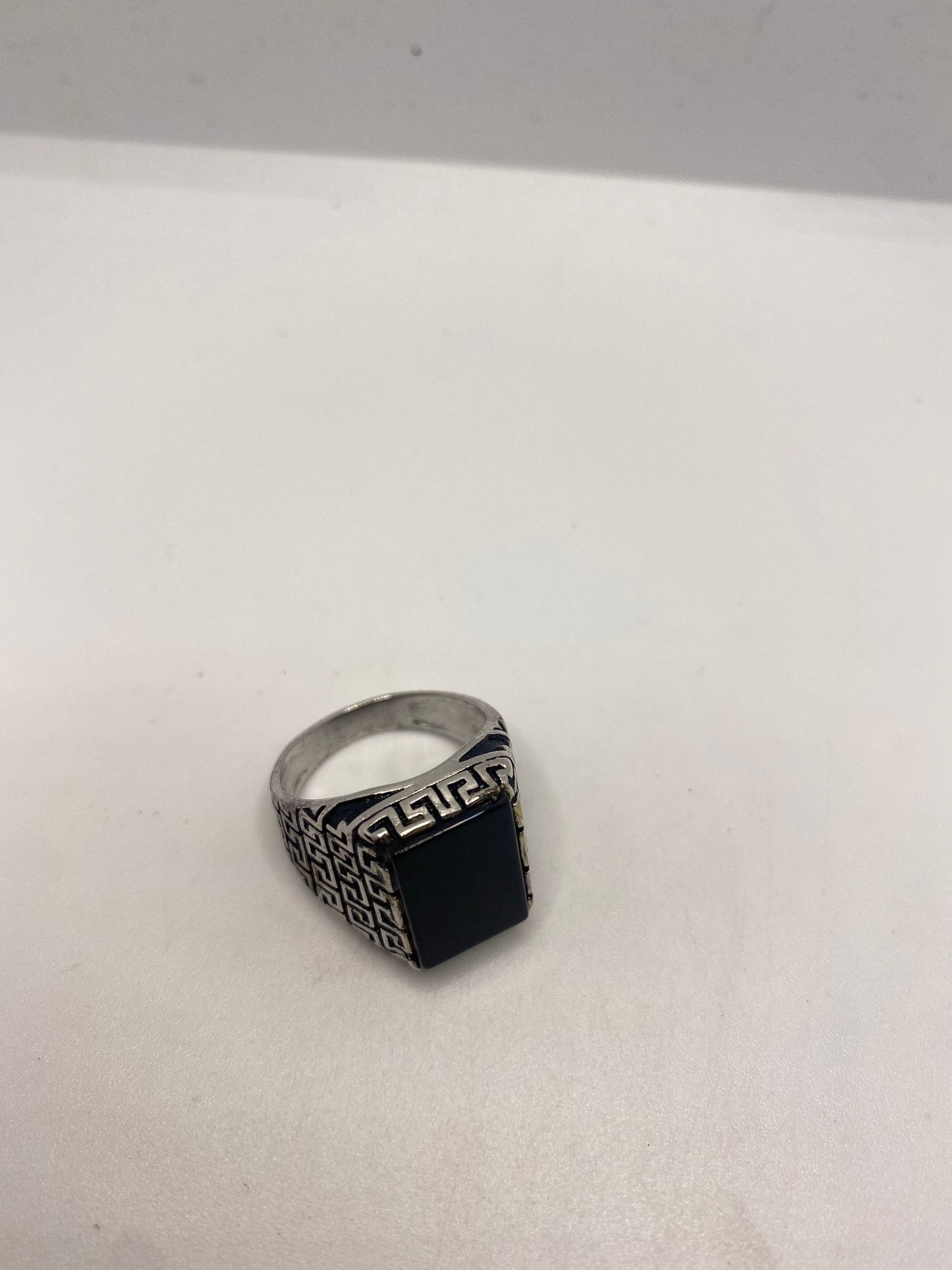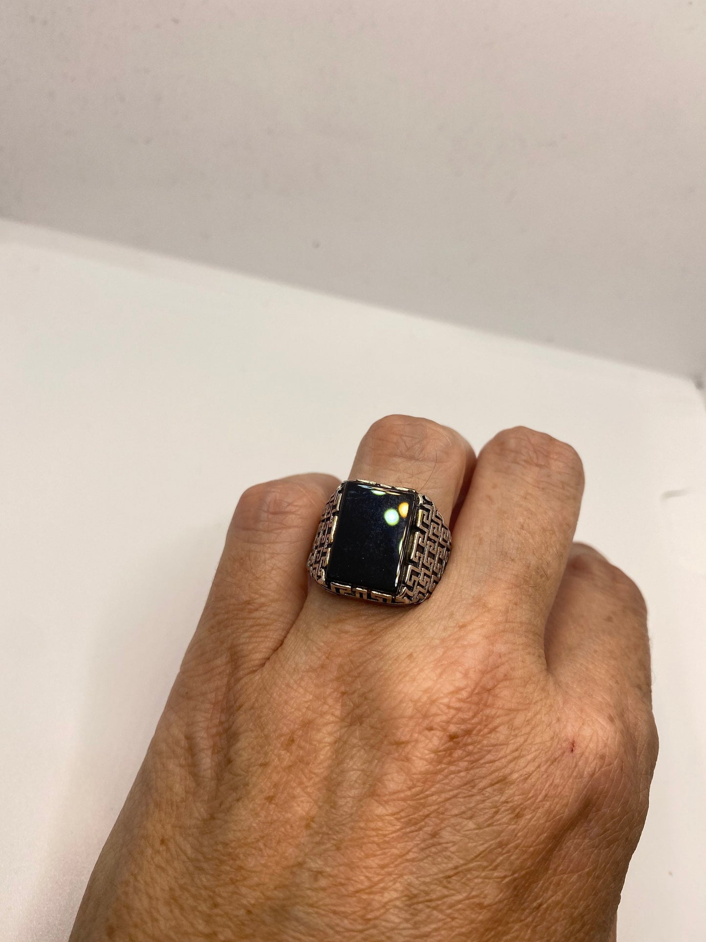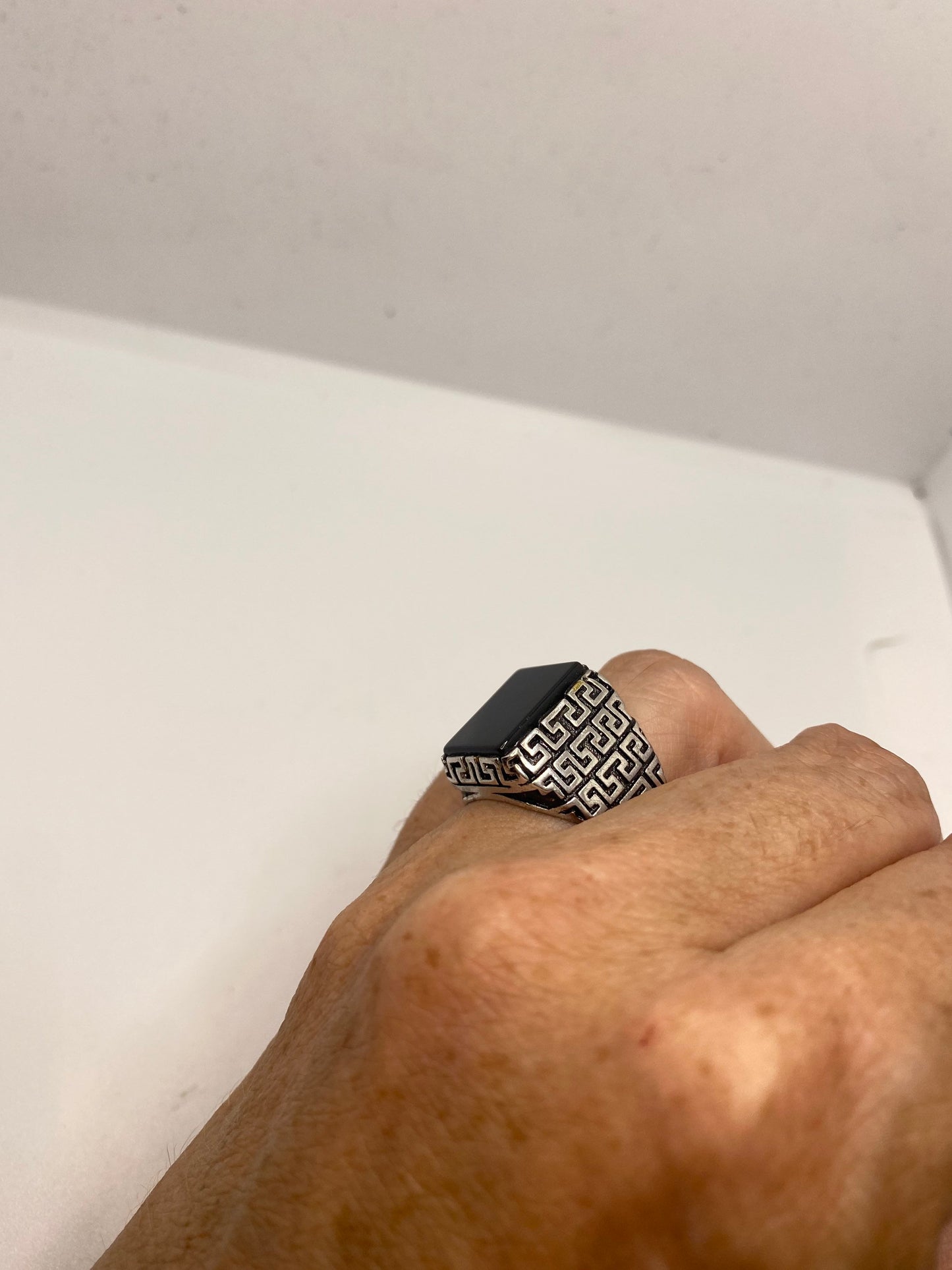 Vintage Black Onyx Mens Ring in 925 Sterling Silver