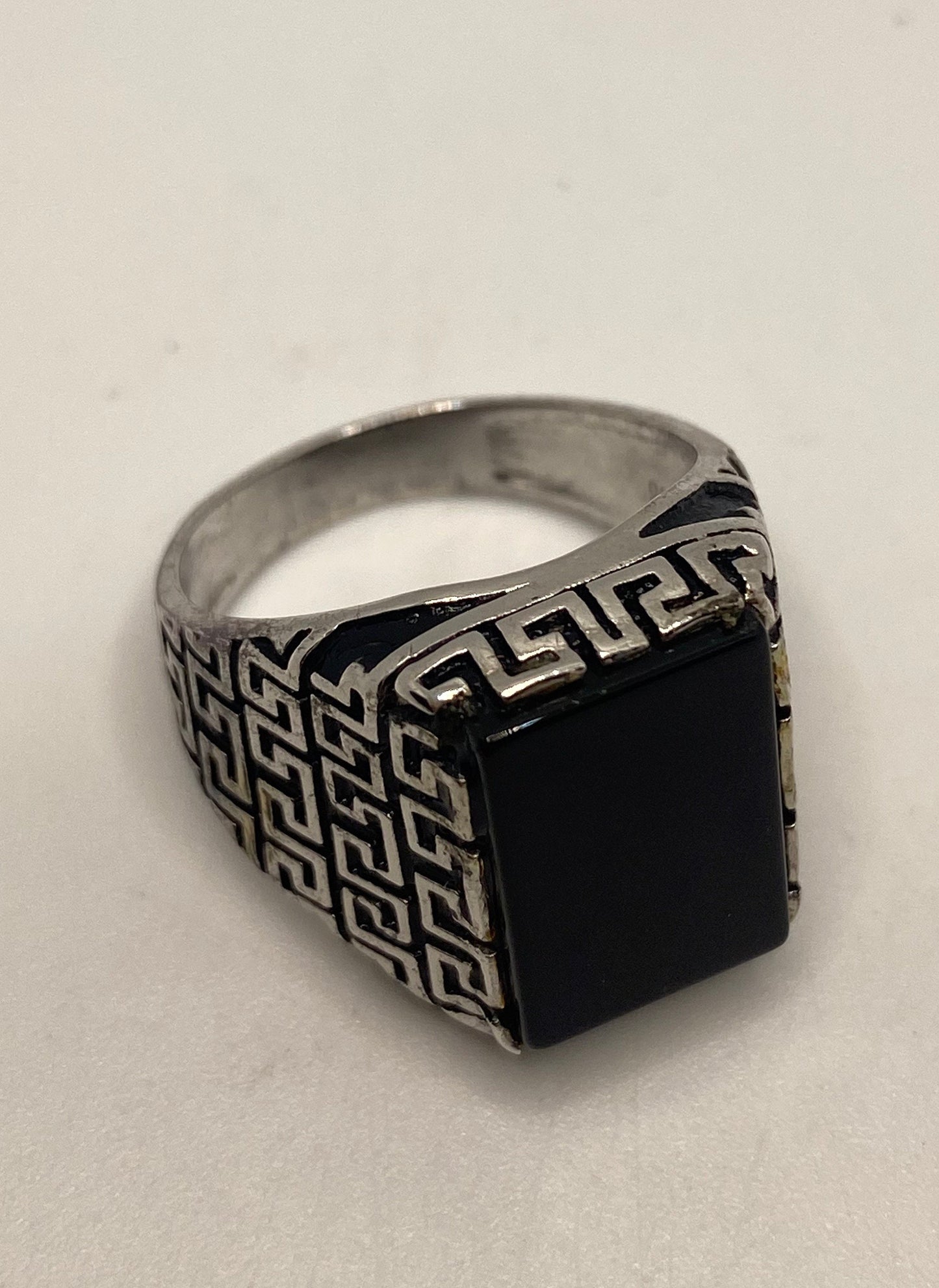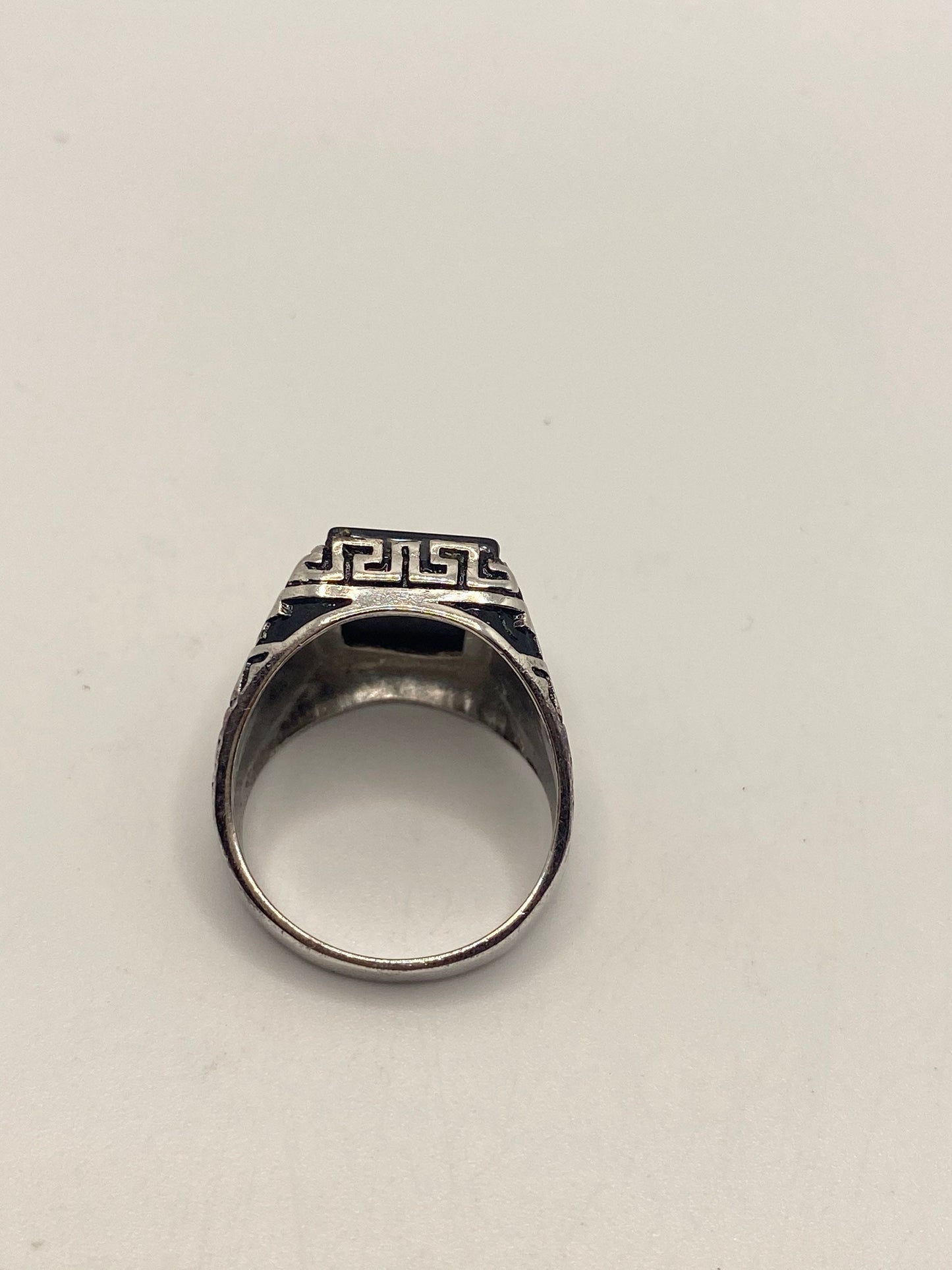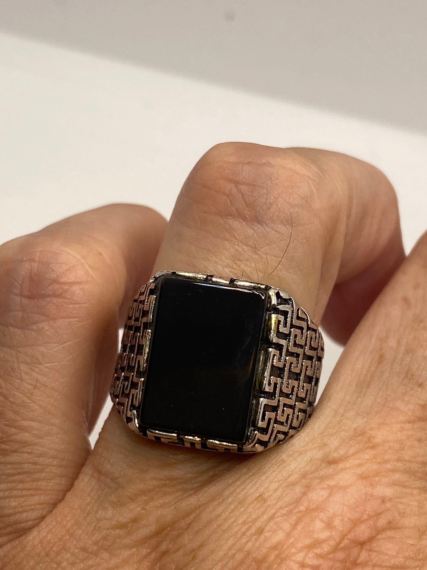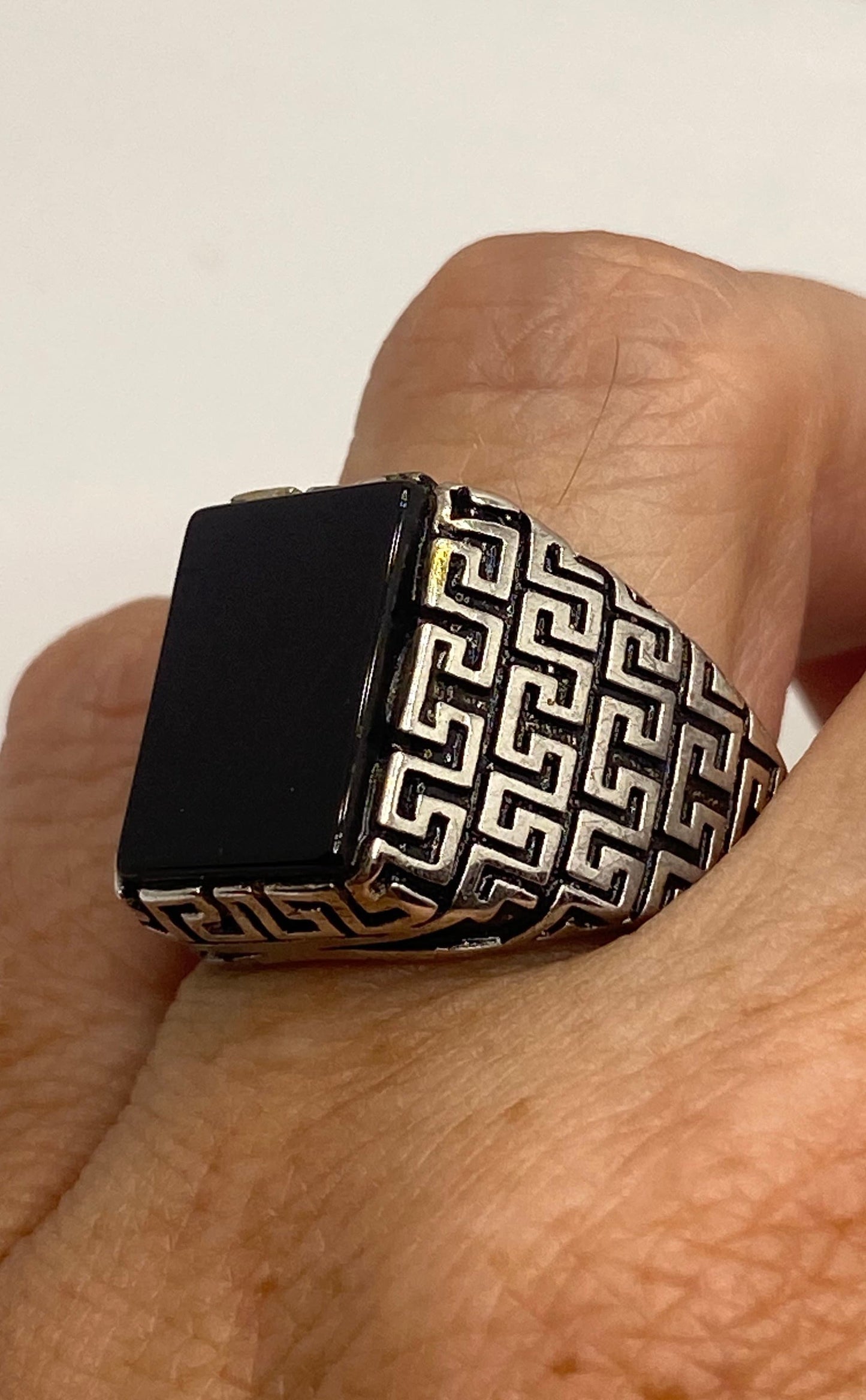 Vintage Black Onyx Mens Ring in 925 Sterling Silver