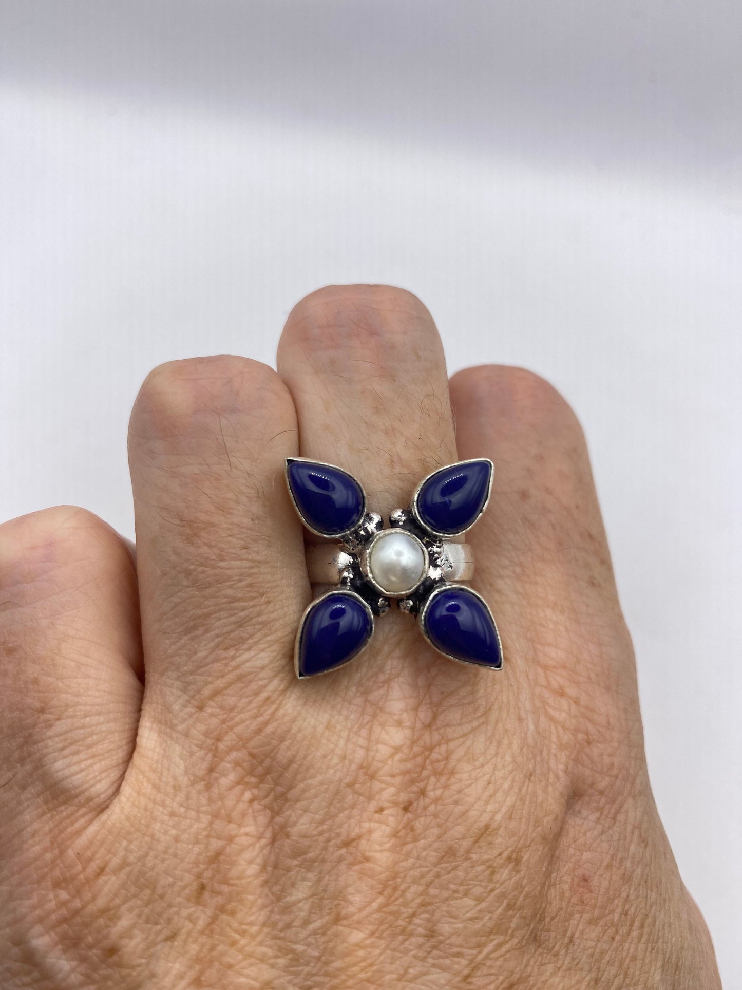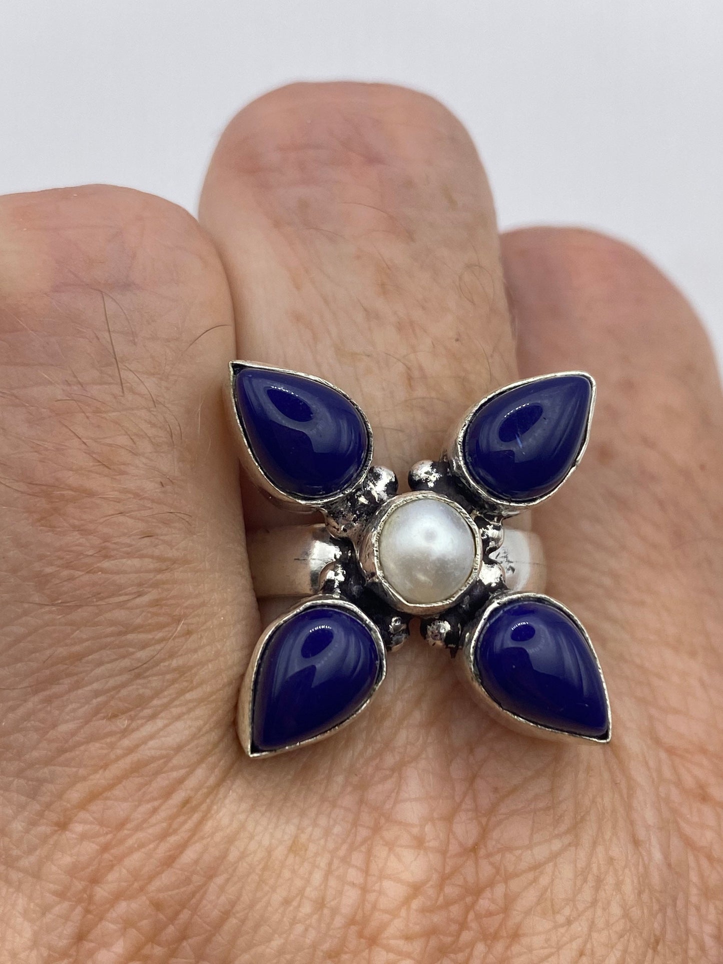 Large genuine aqua blue Lapis Lazuli Vintage ring