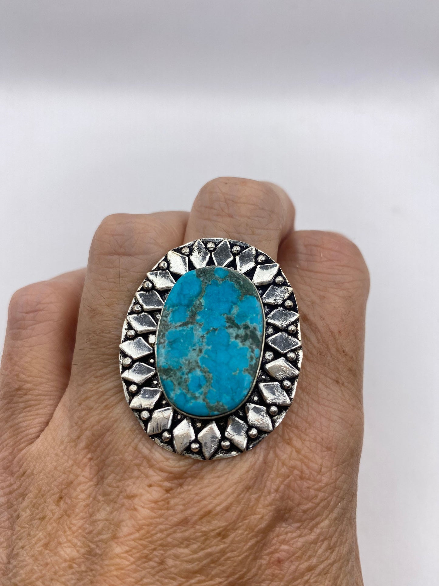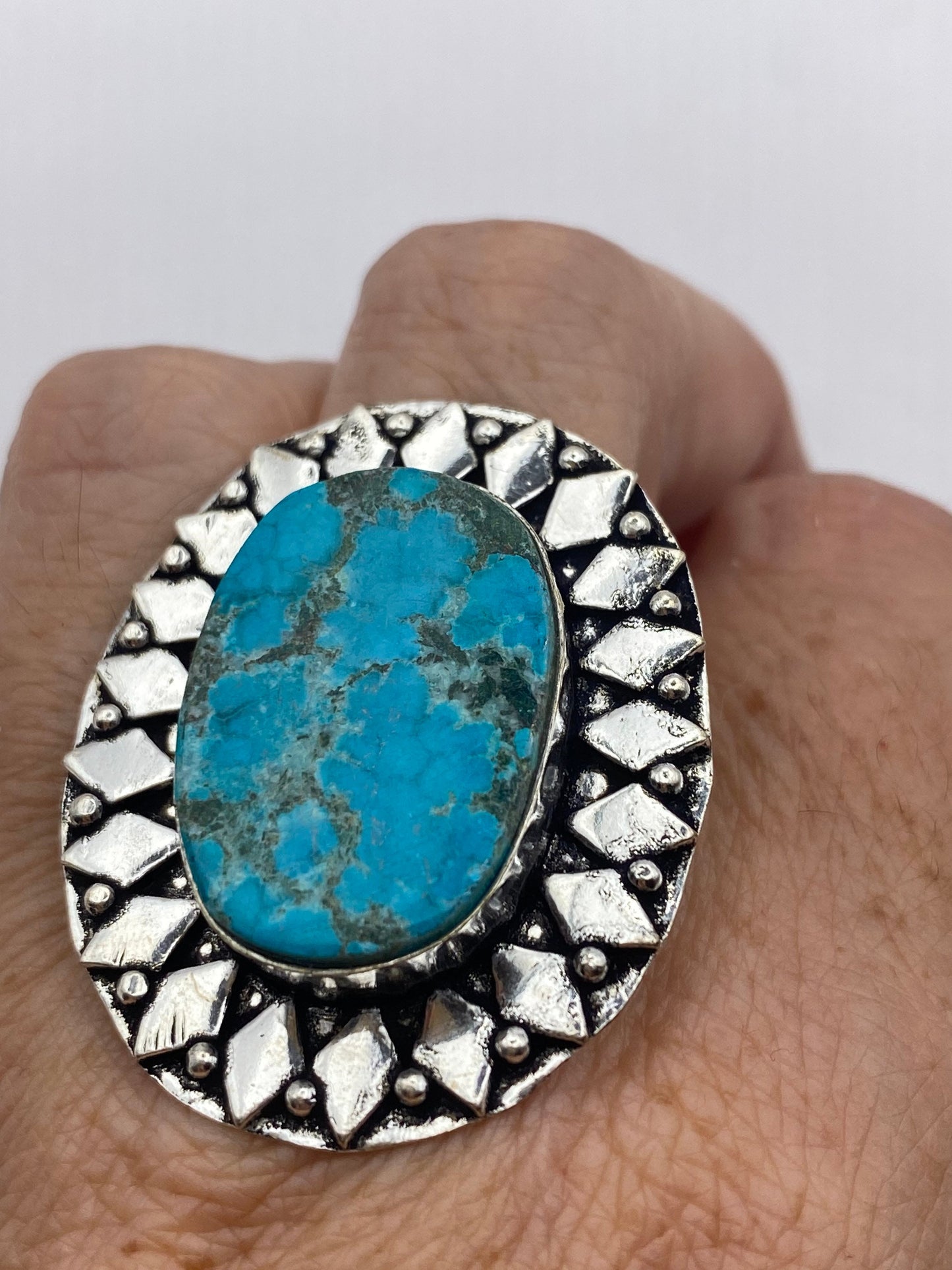 Vintage Blue Genuine Tibetan Turquoise Ring Size 7.5