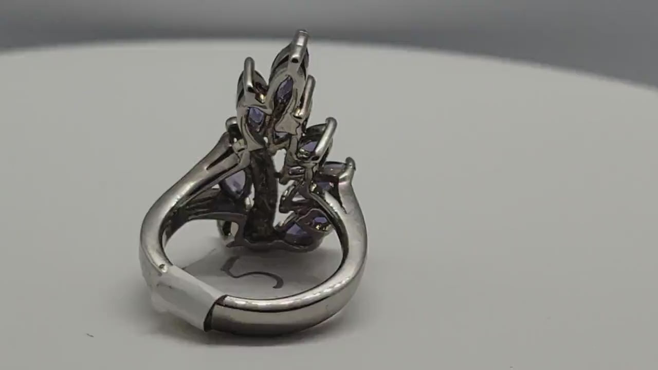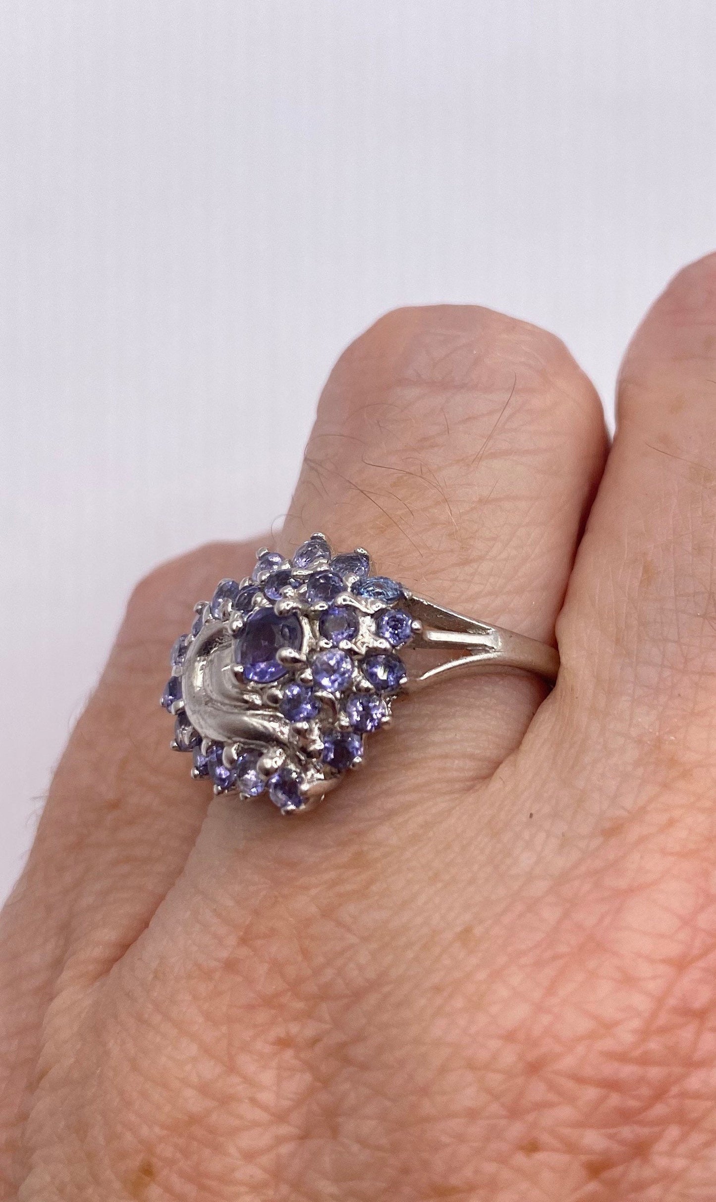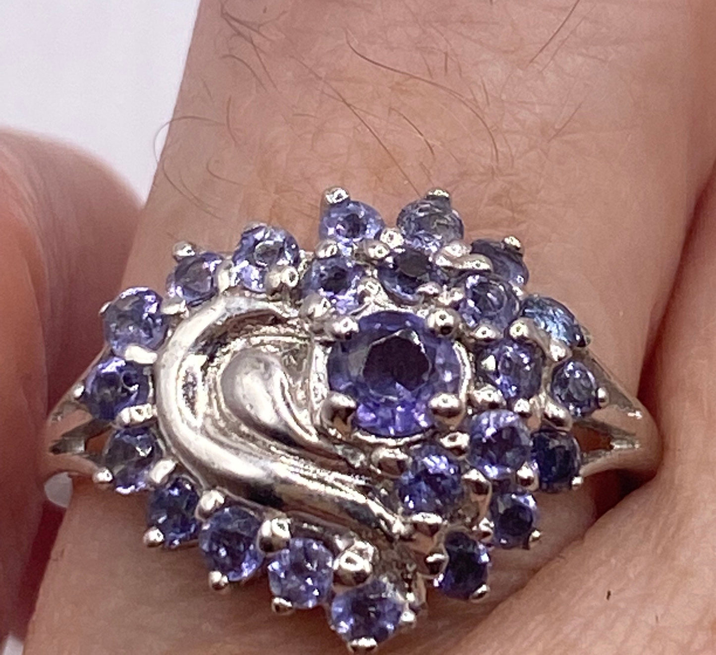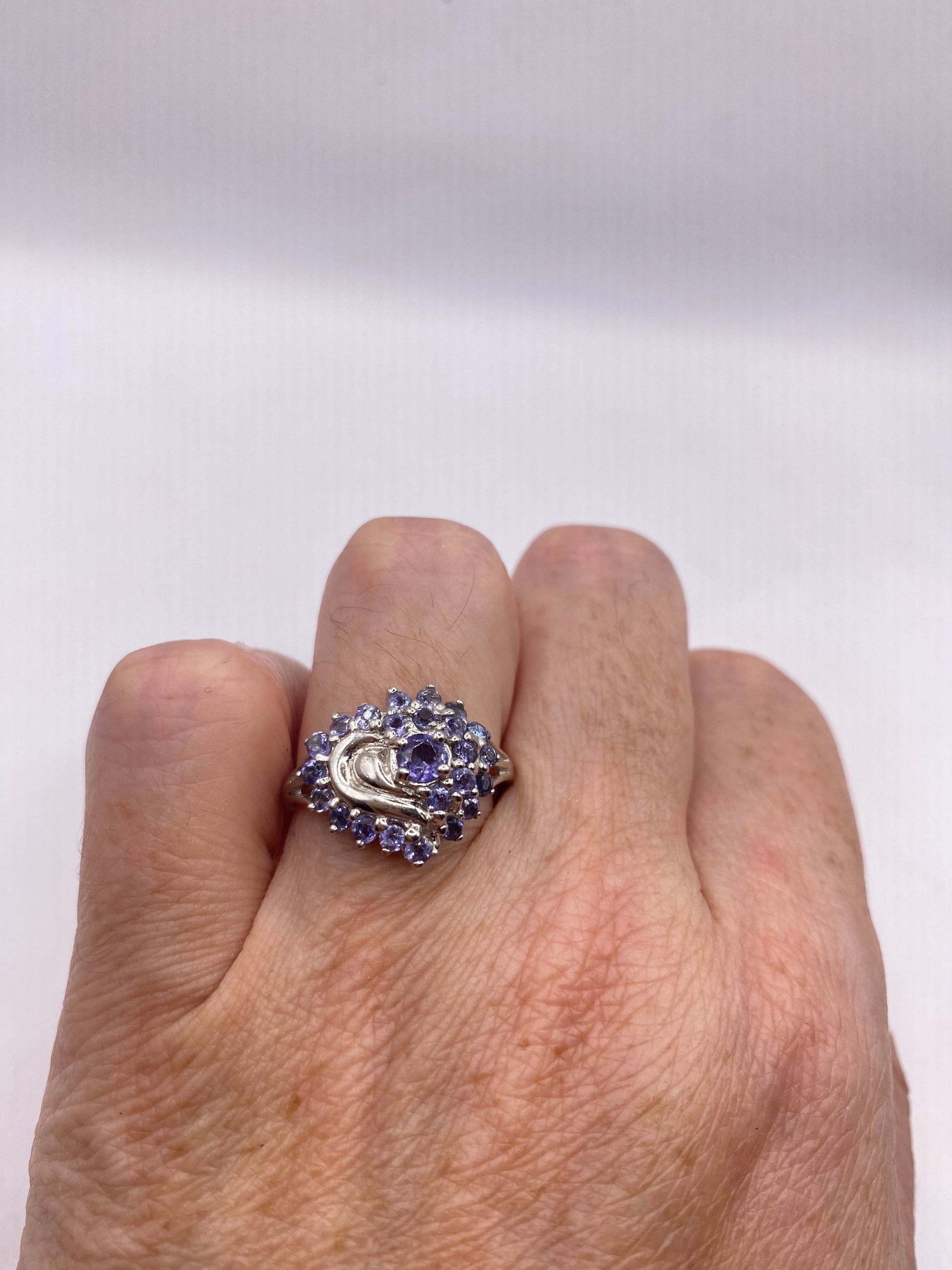 Vintage Blue Iolite Ring in 925 Sterling Silver Floral Setting