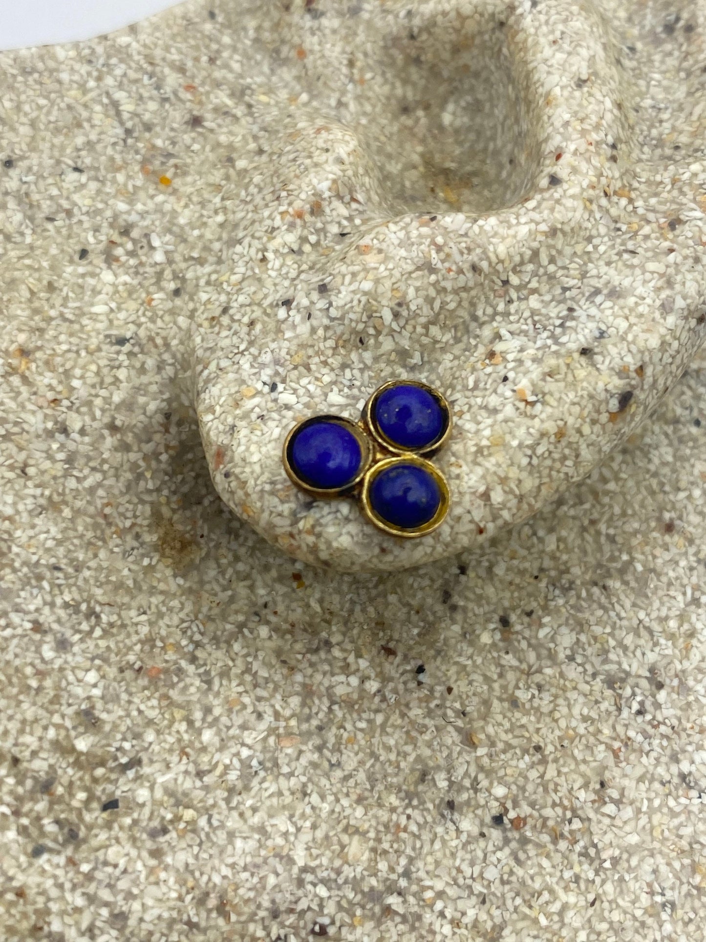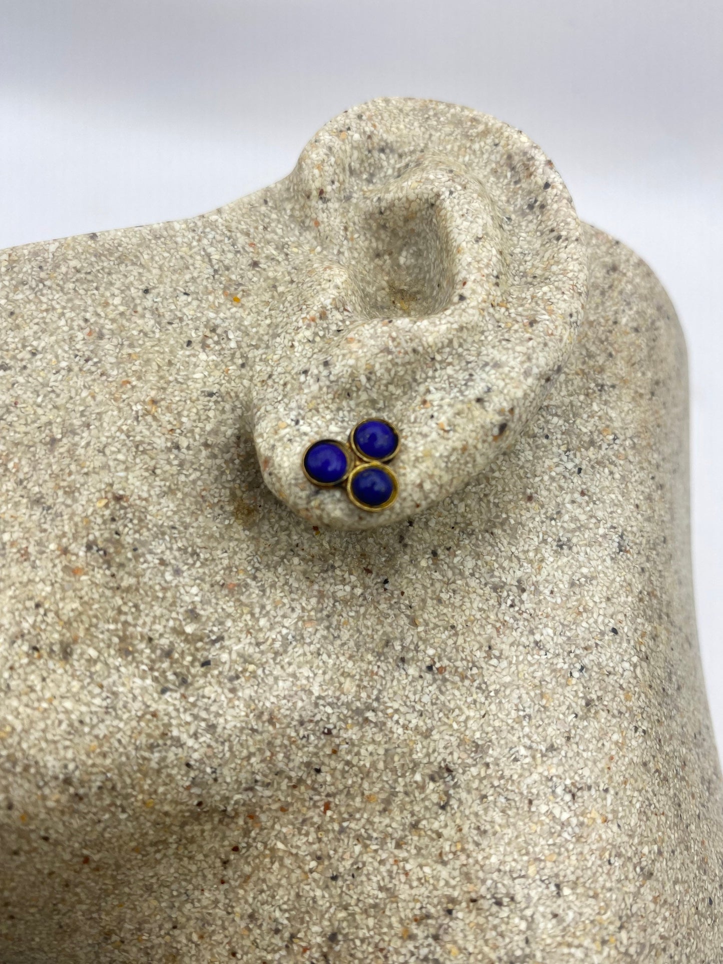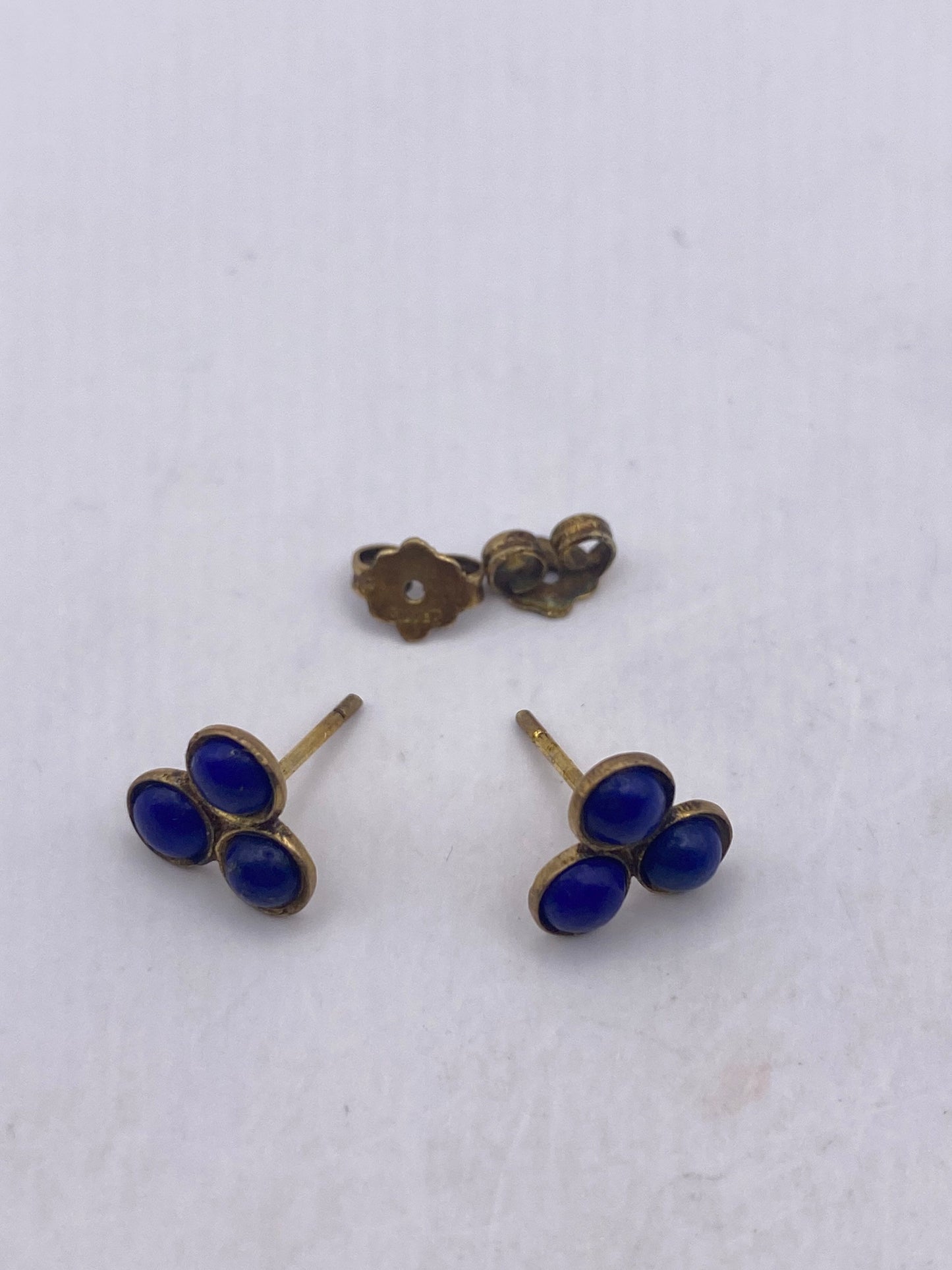 Vintage Blue Lapis Golden Sterling Silver Stud Button Earrings