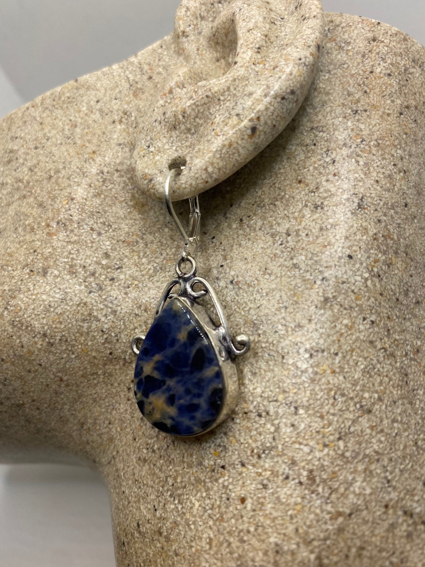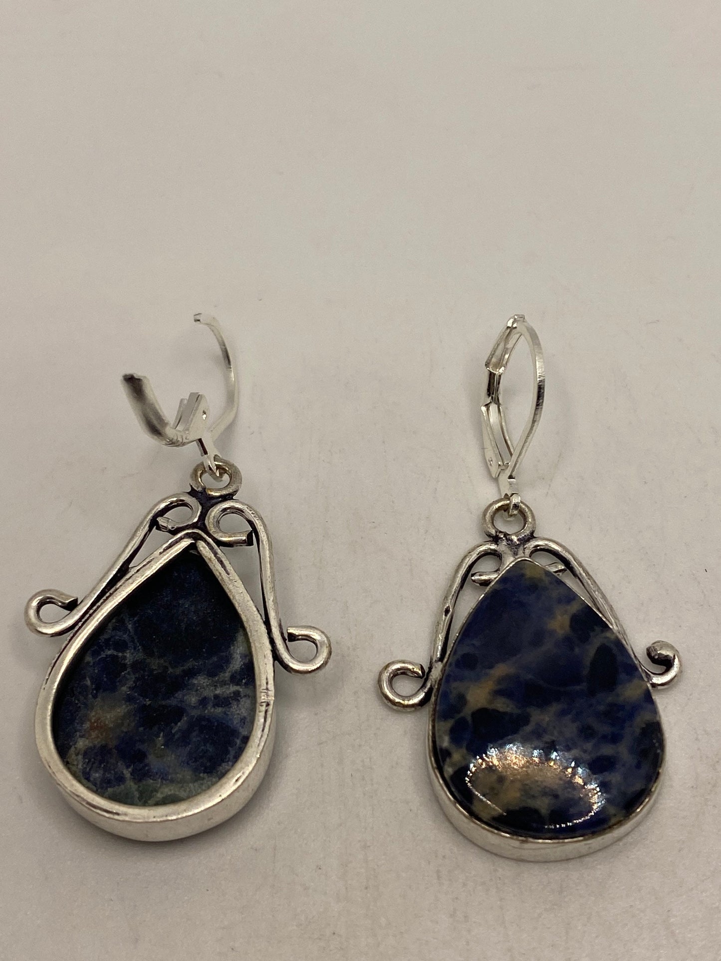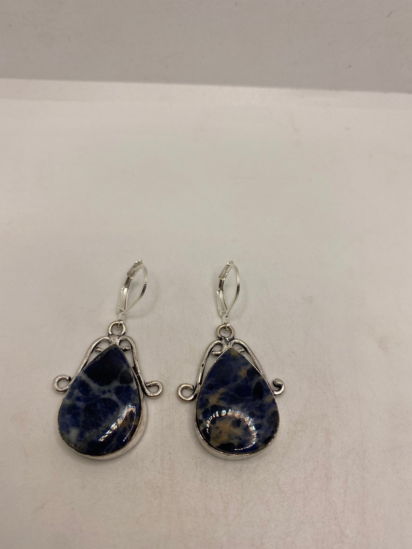Vintage Blue Lapis Lazuli Earrings Silver Dangle