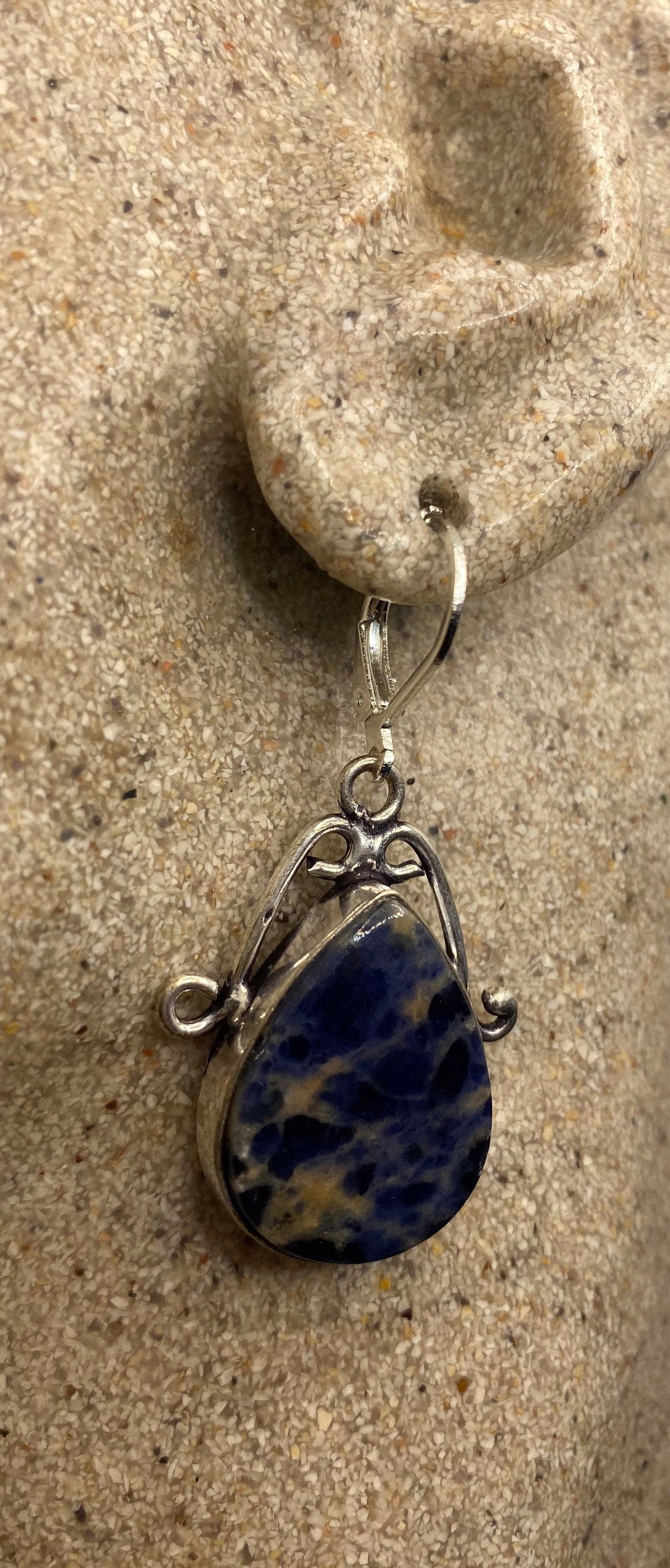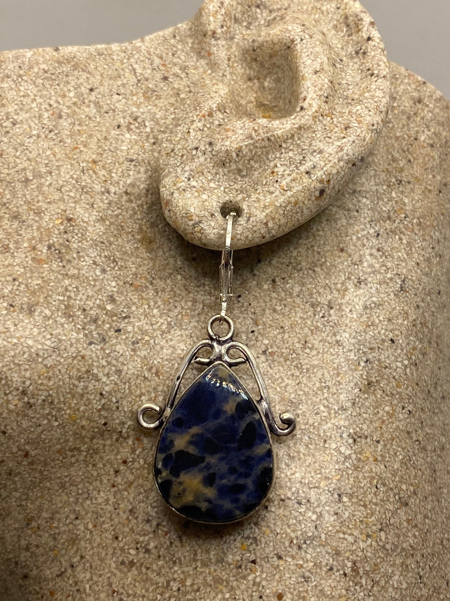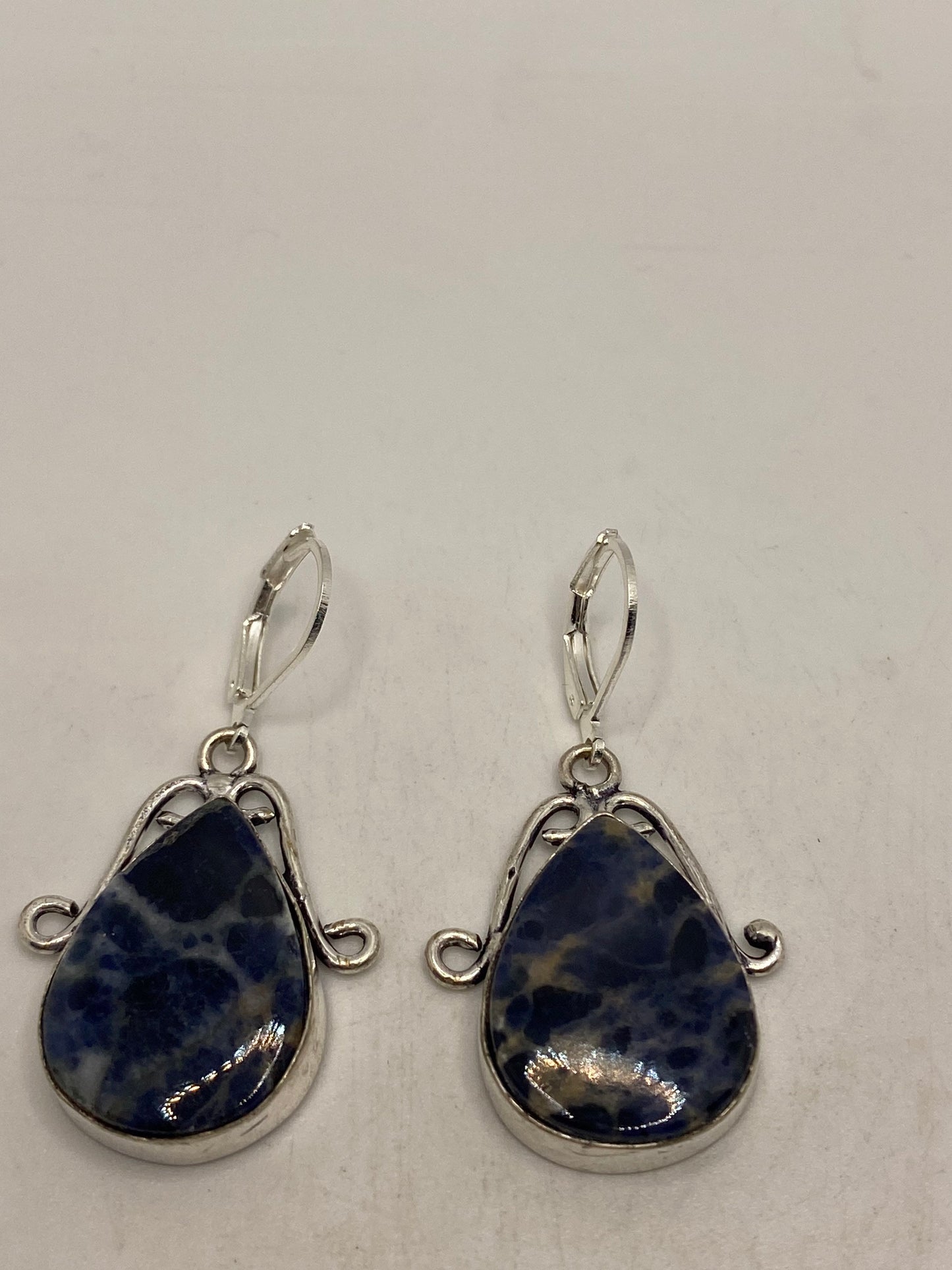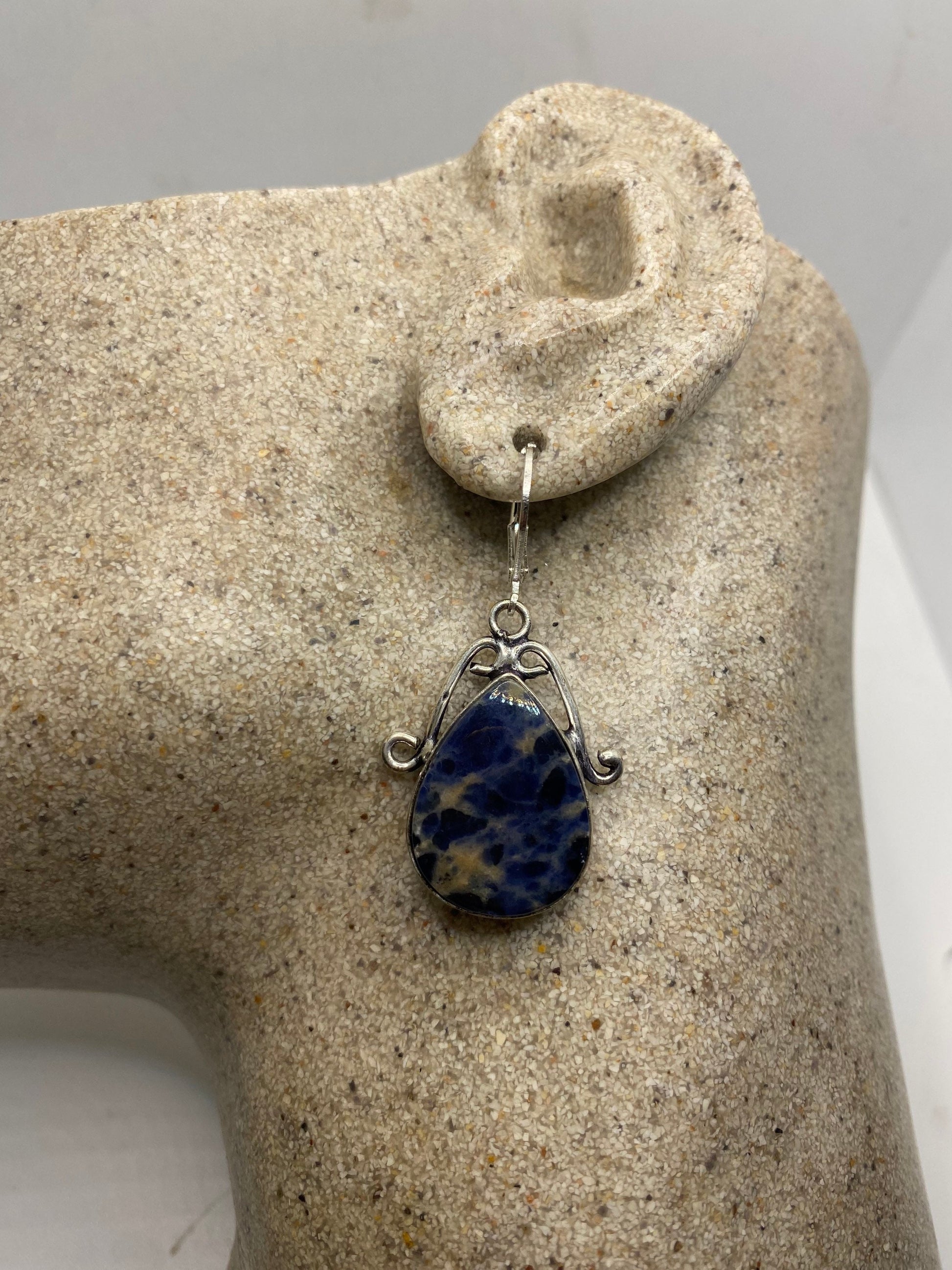 Vintage Blue Lapis Lazuli Earrings Silver Dangle