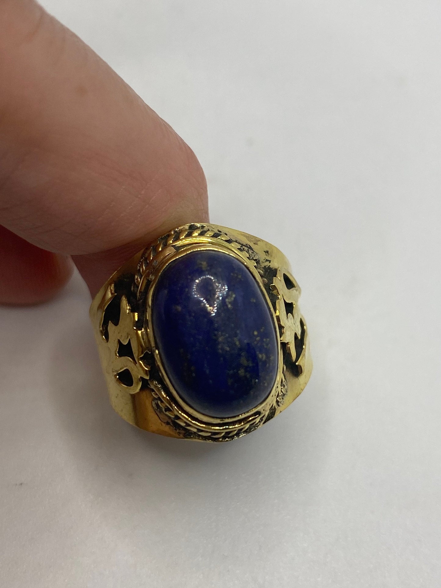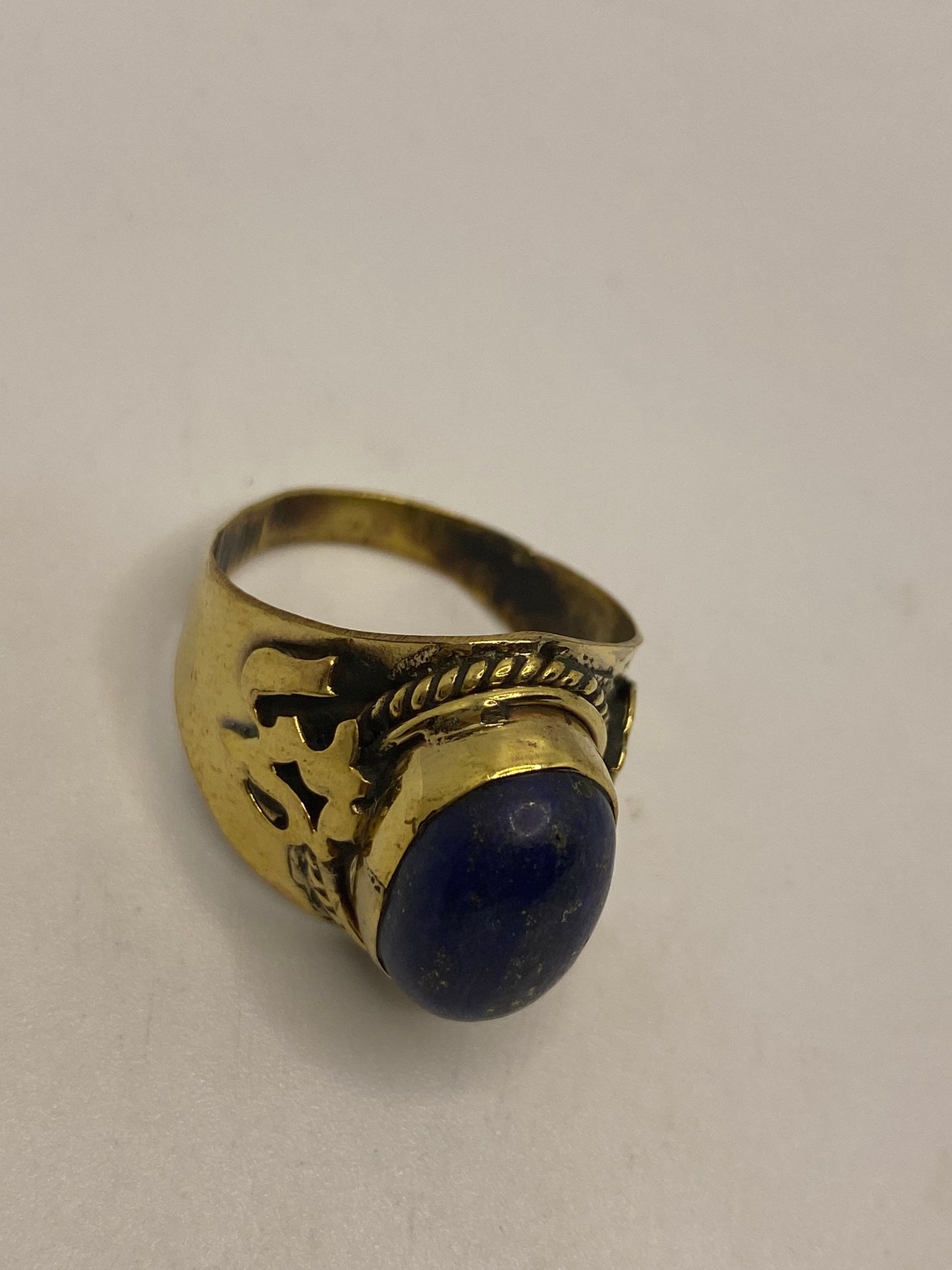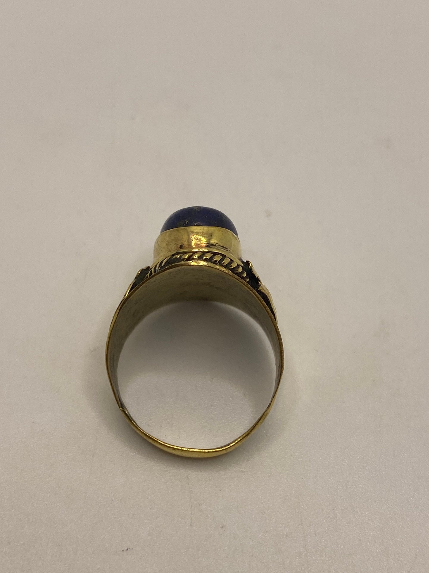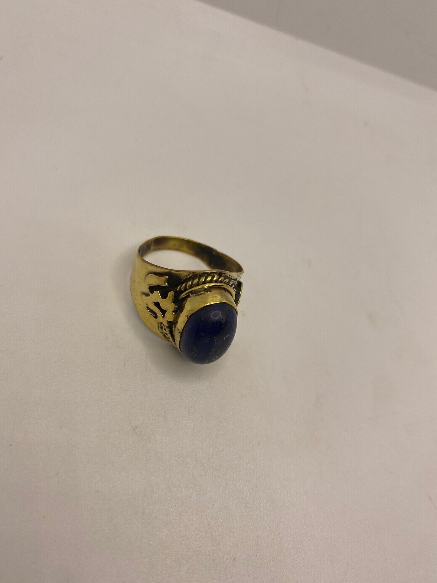 Vintage Blue Lapis Lazuli Golden Brass Size 9 Ohm Shanti Ring