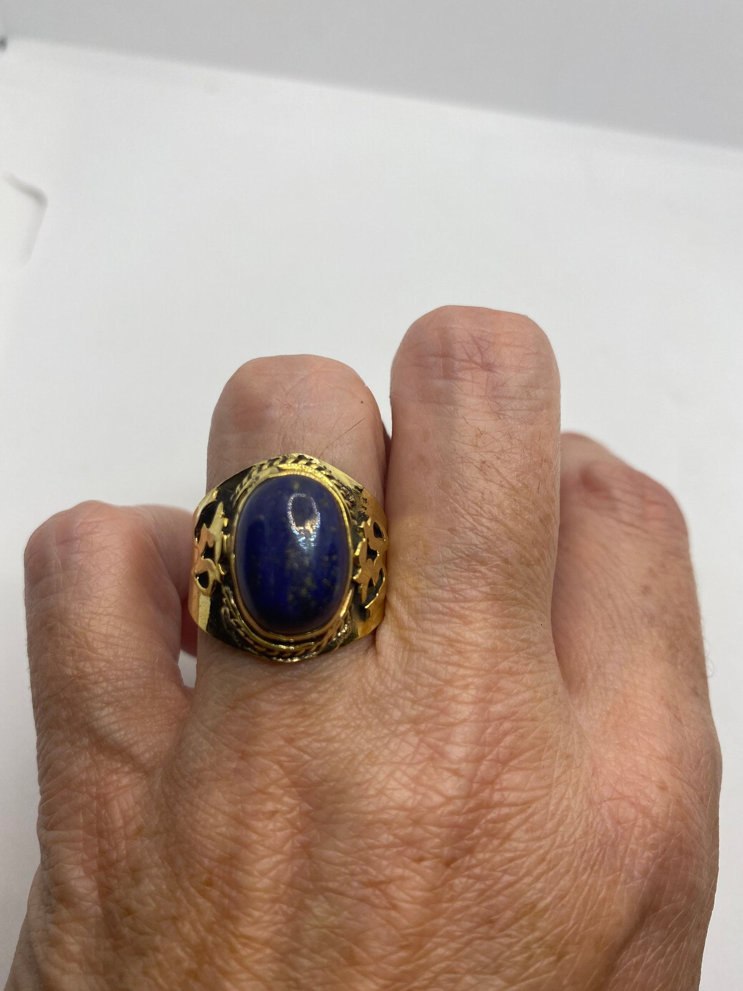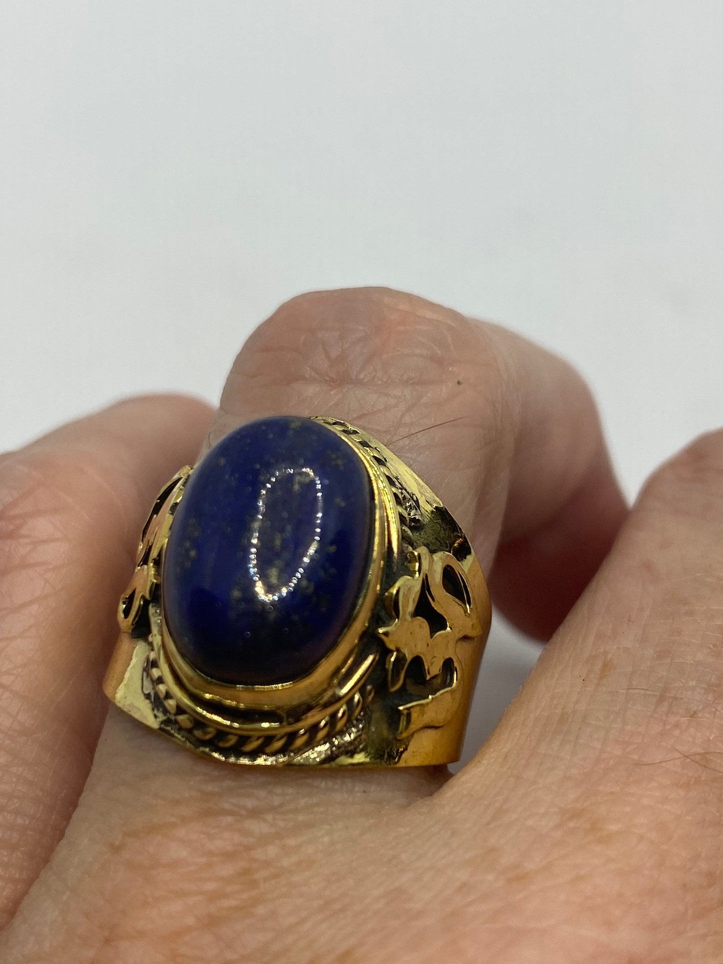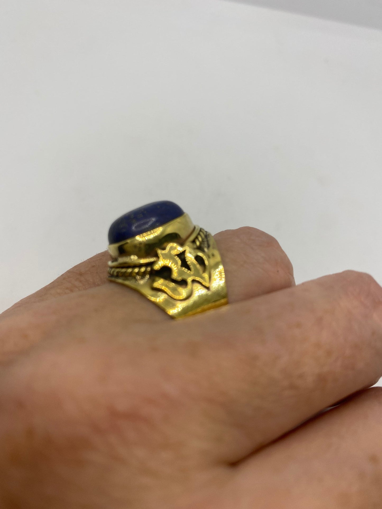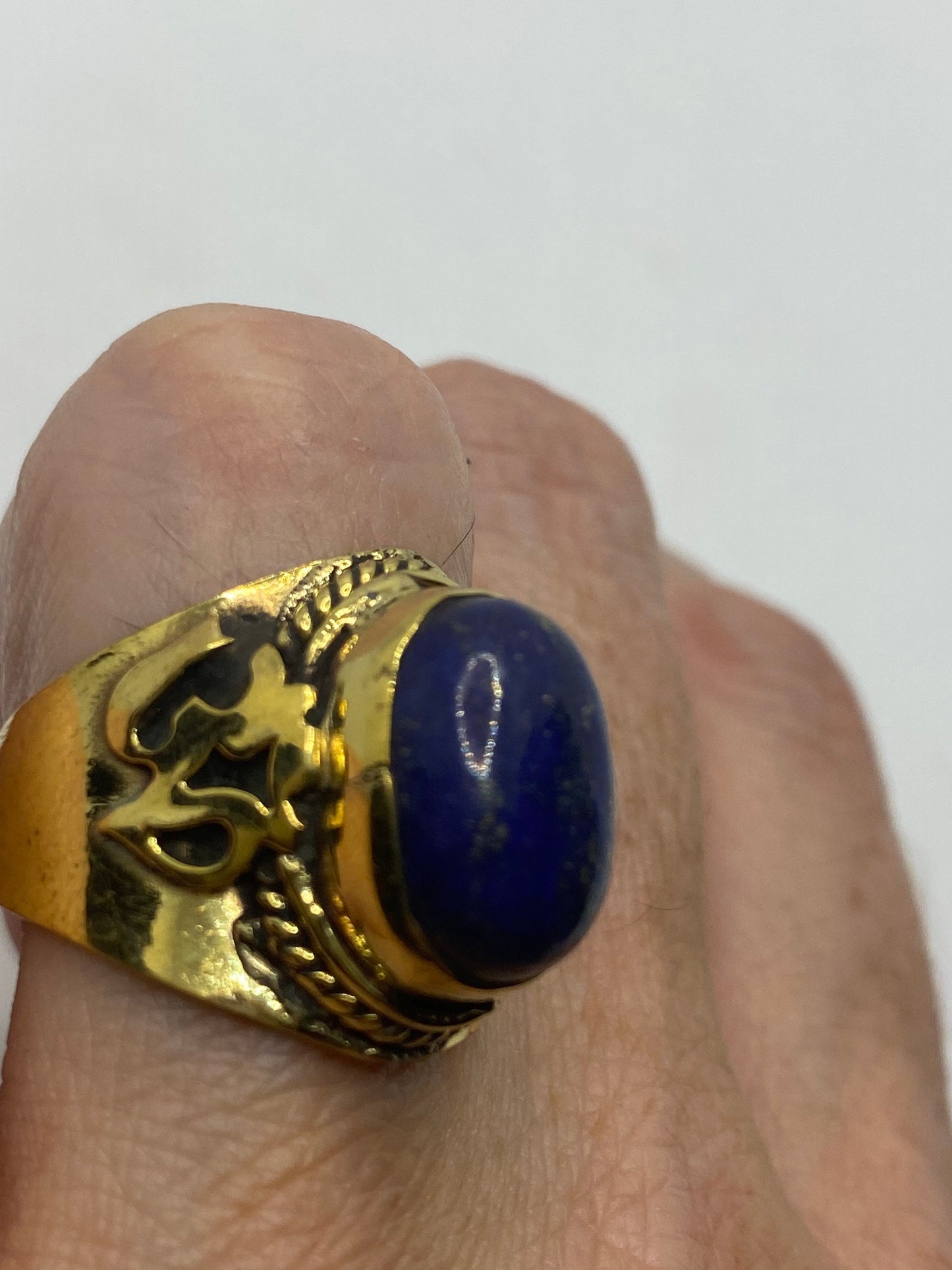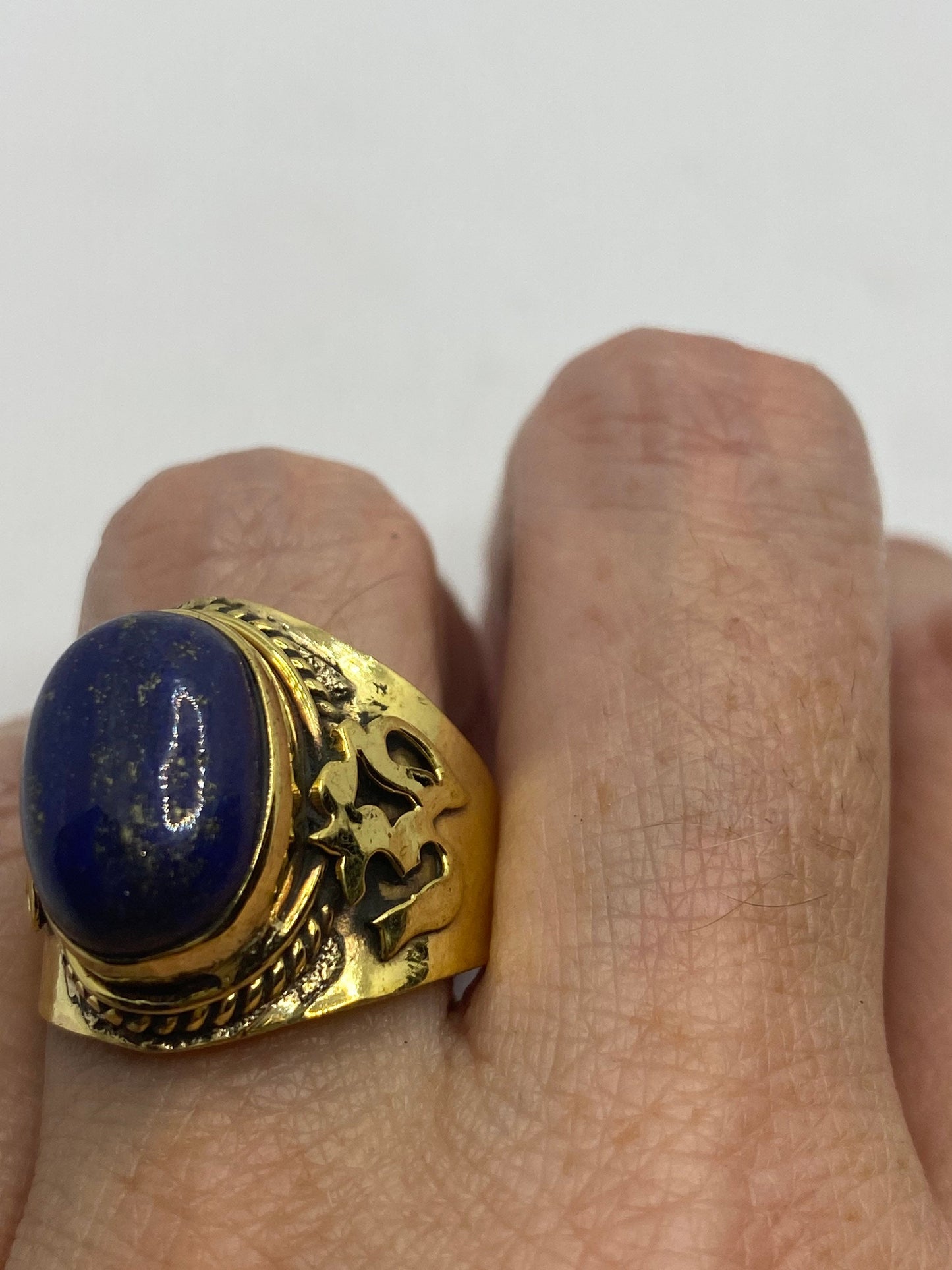 Vintage Blue Lapis Lazuli Golden Brass Size 9 Ohm Shanti Ring