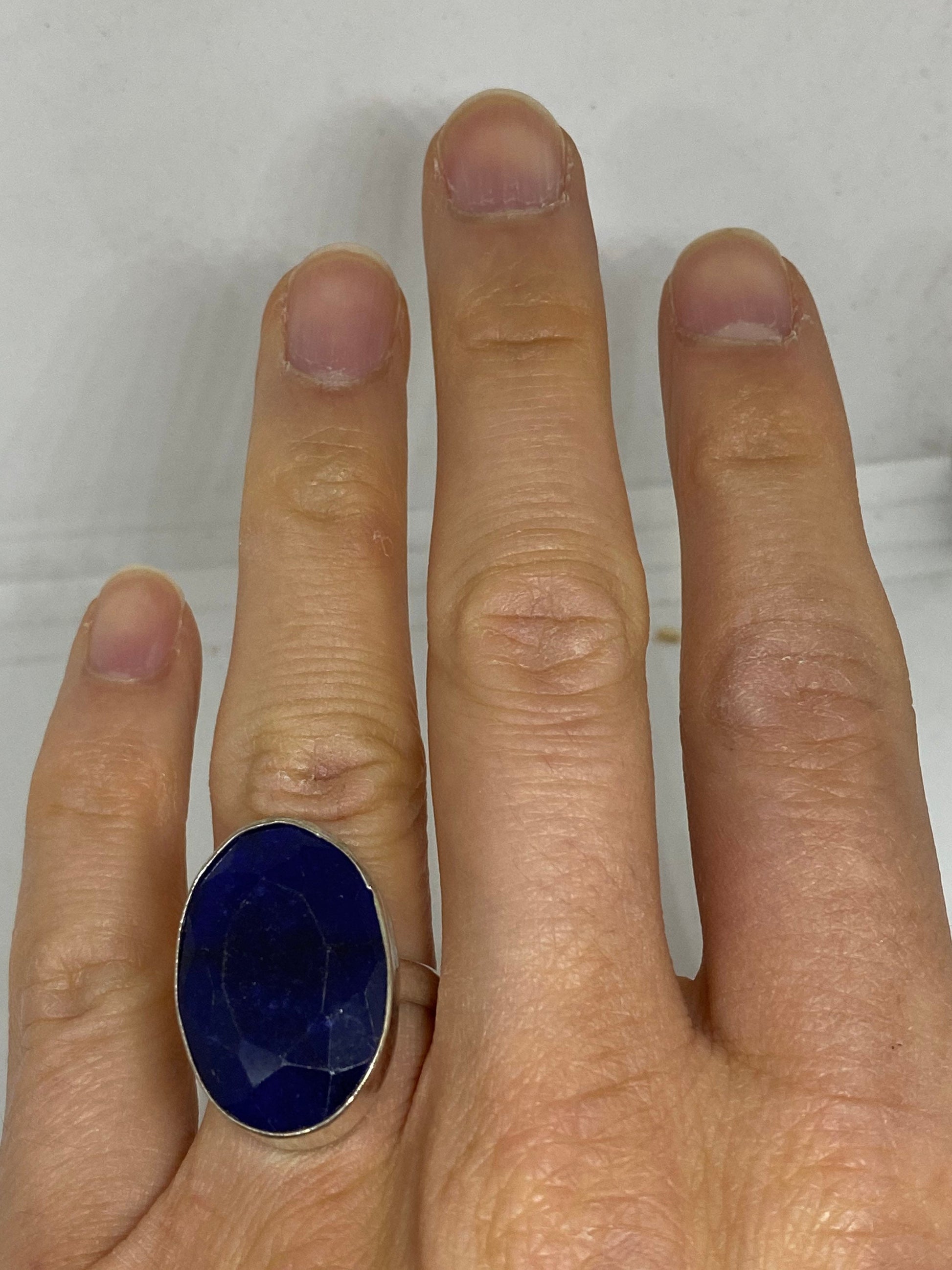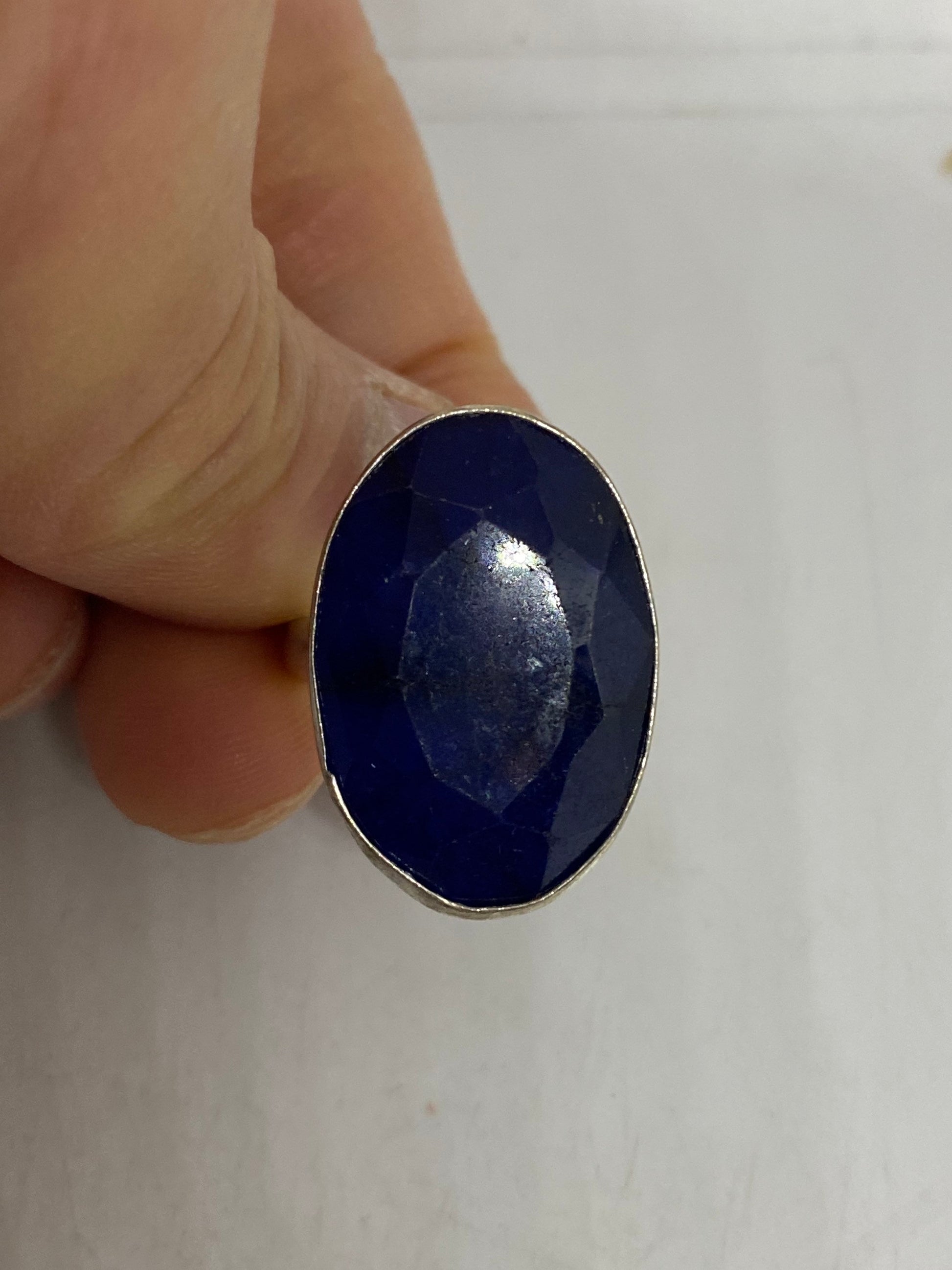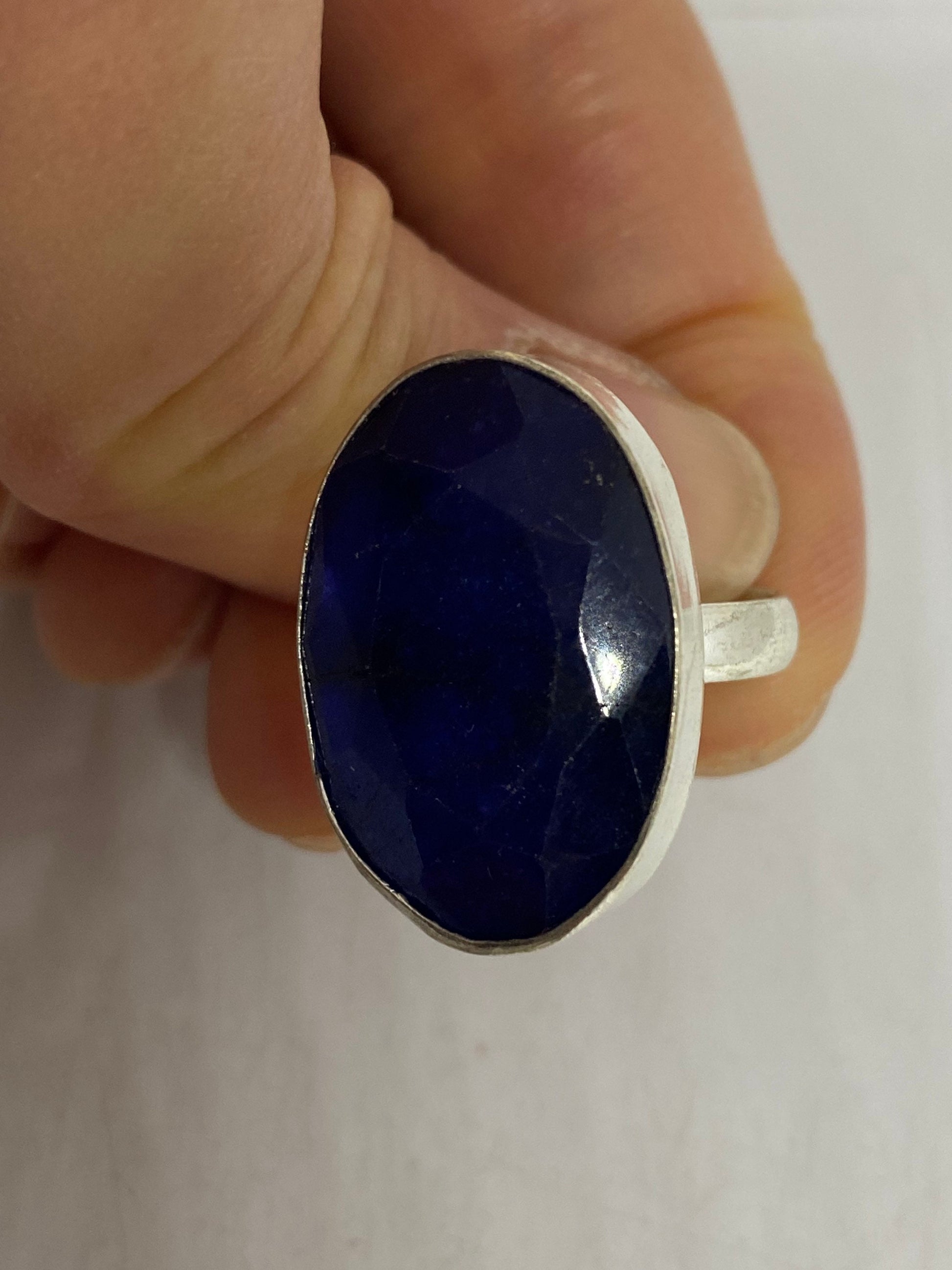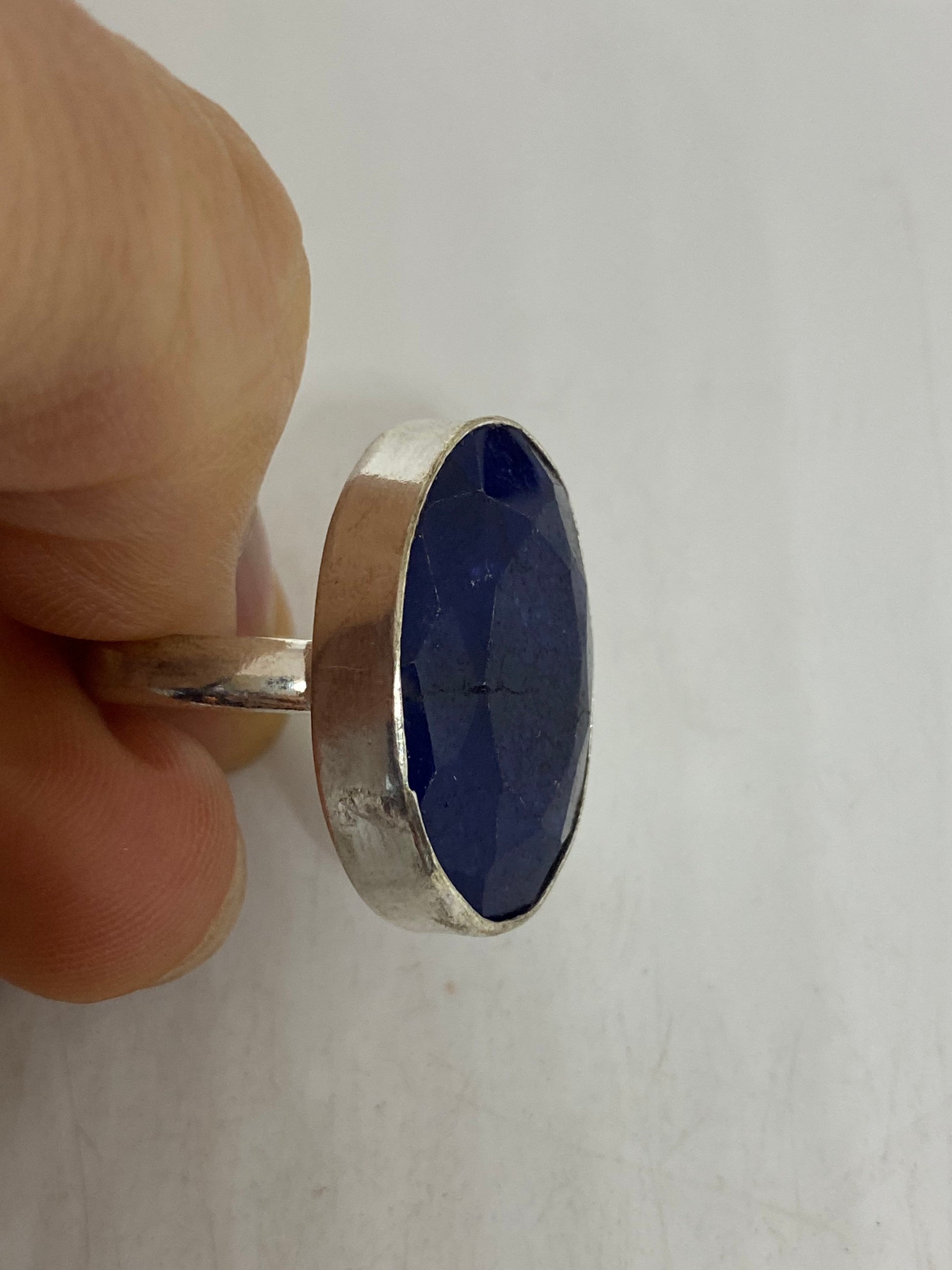 Vintage Blue Sapphire Silver Ring Size 8