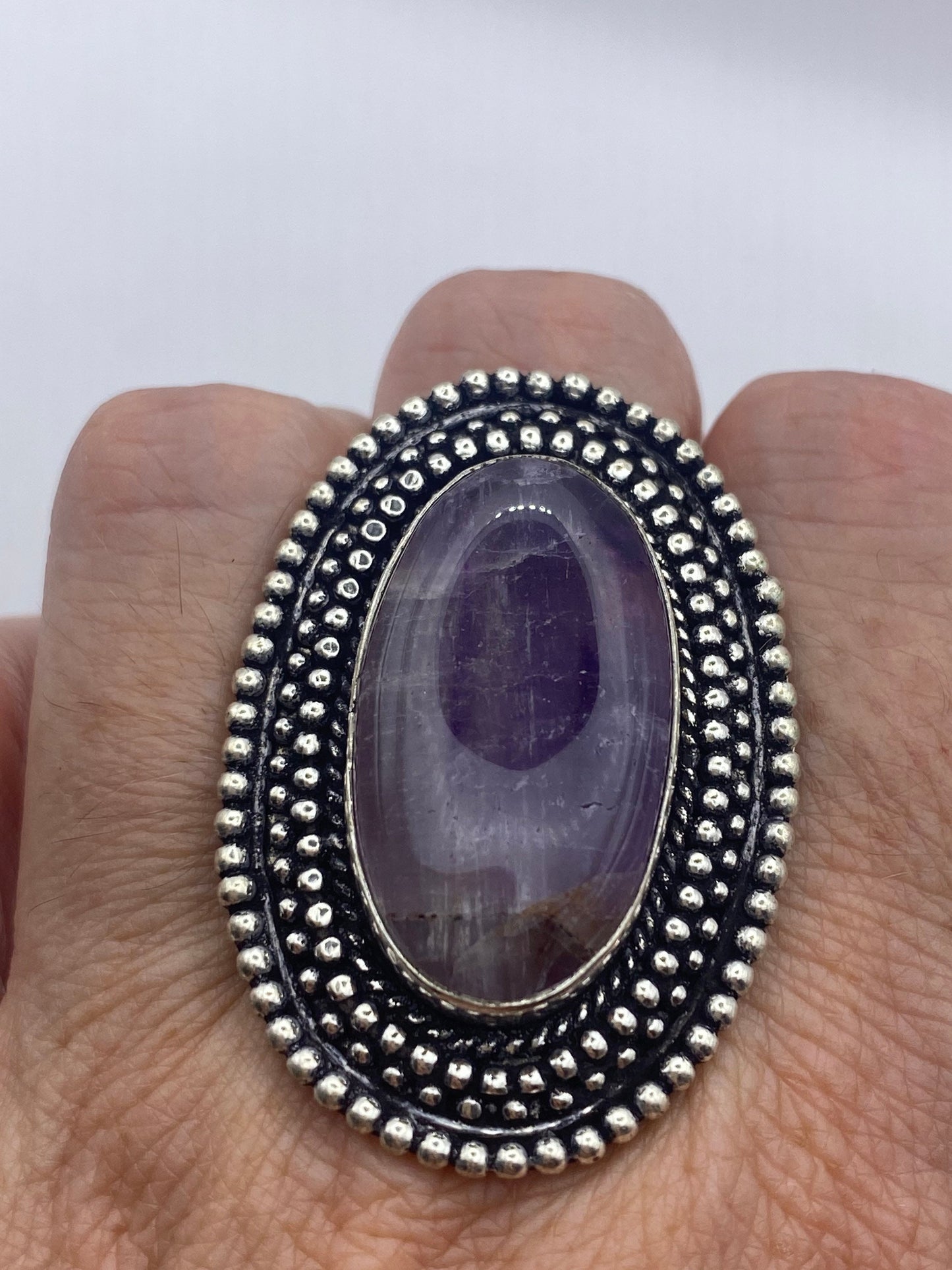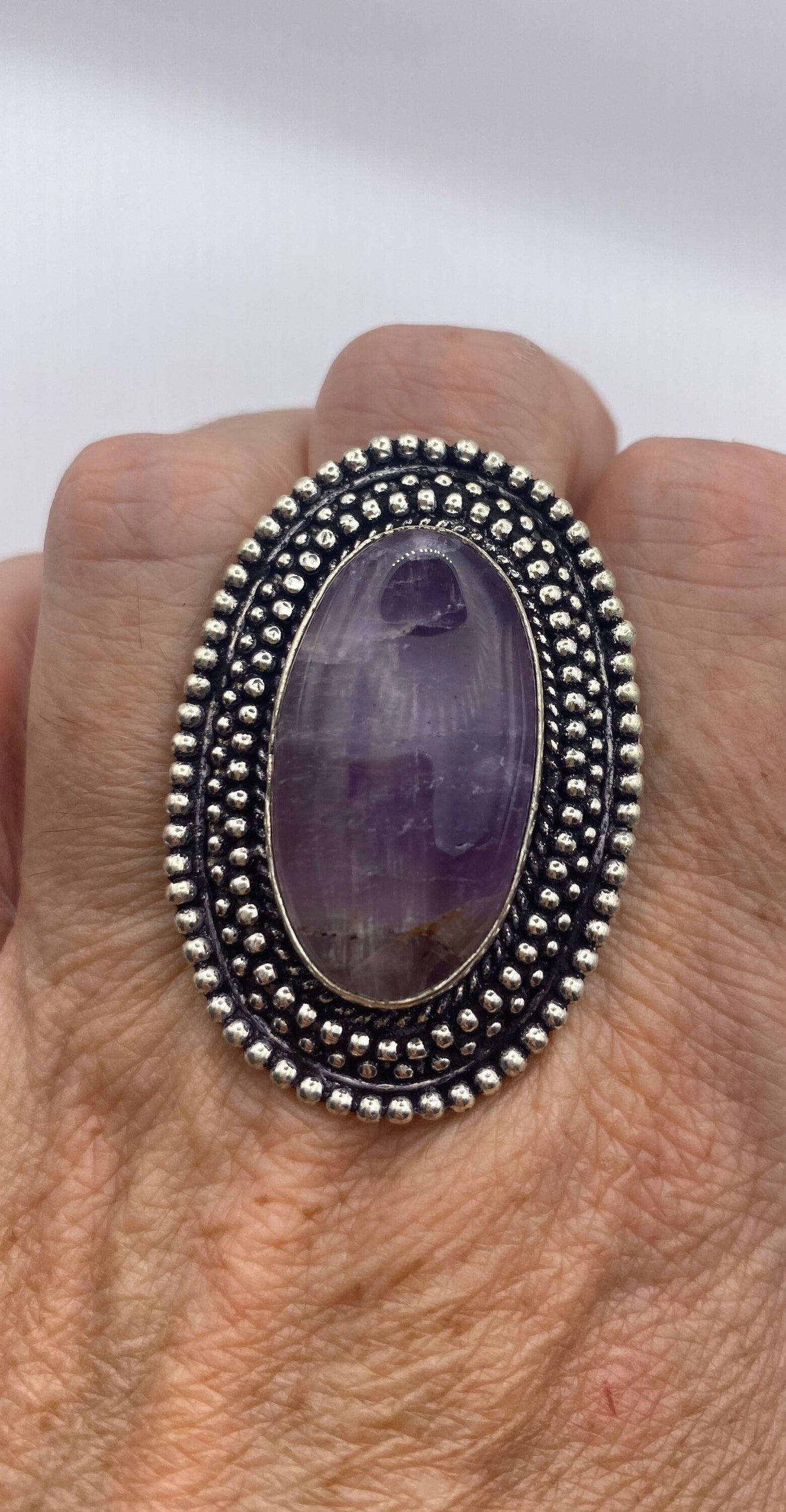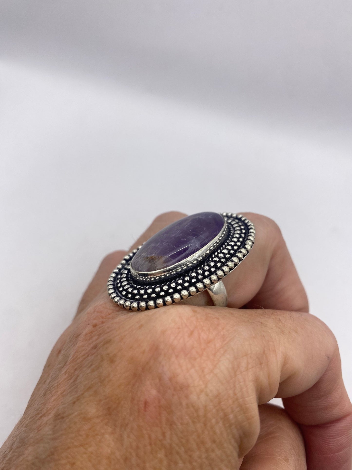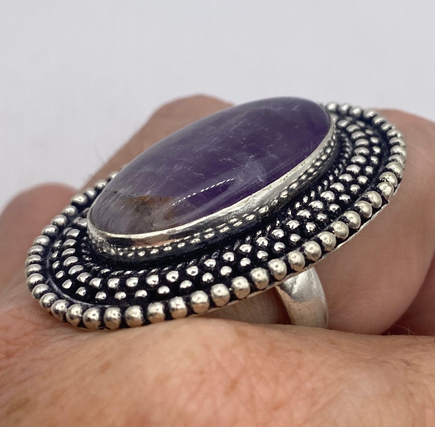 Vintage Boho Purple Amethyst Cocktail Ring Size 7