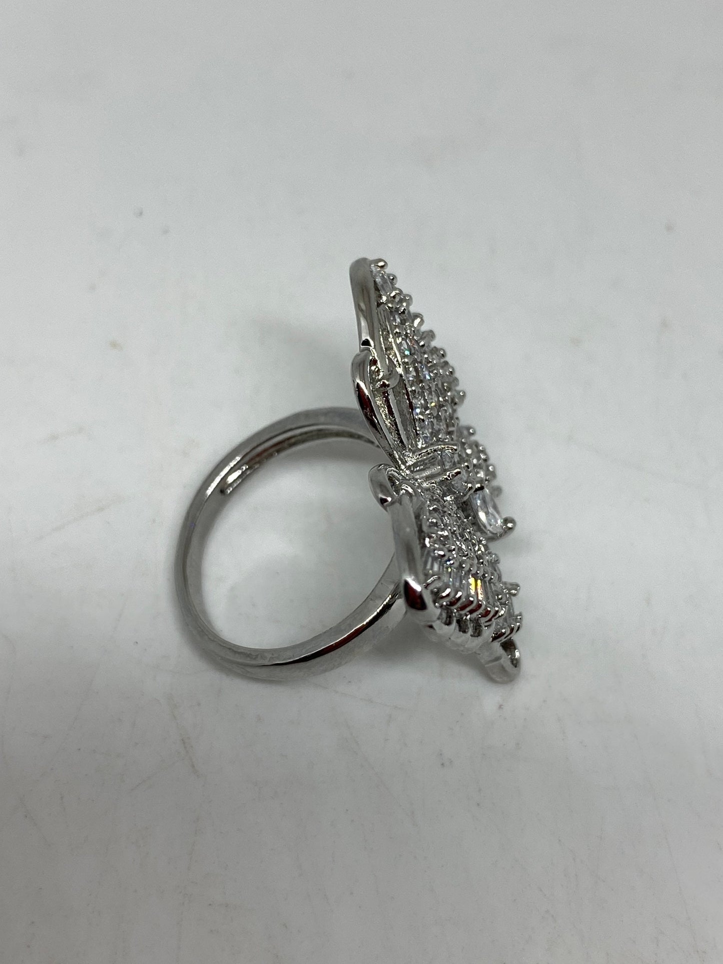 Vintage Butterfly Ring white gold filled Deco Cocktail