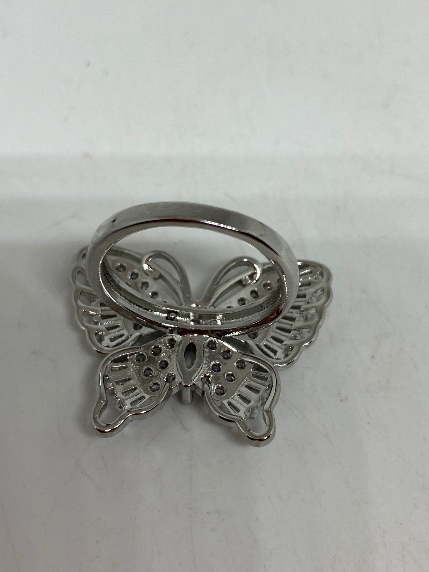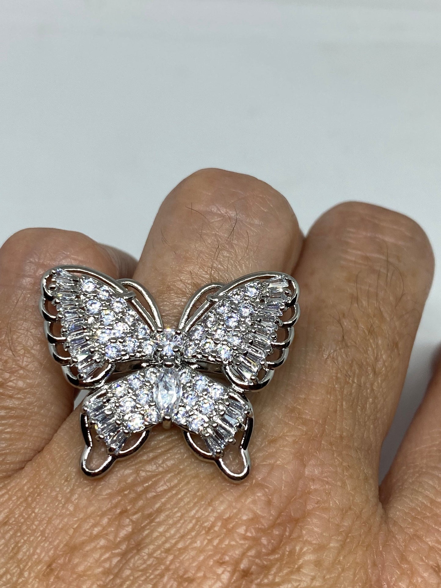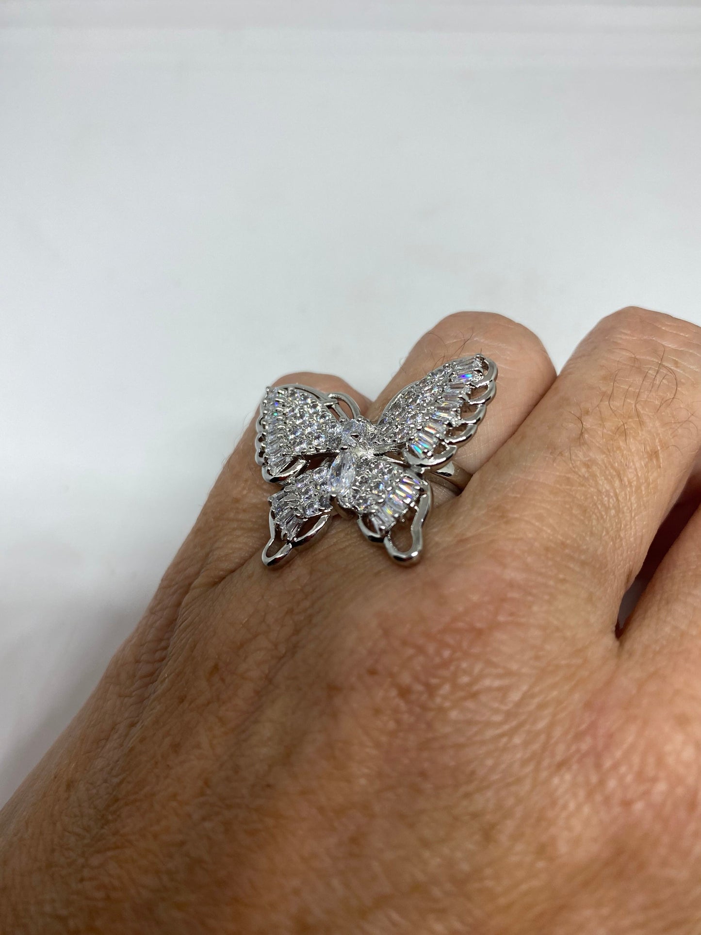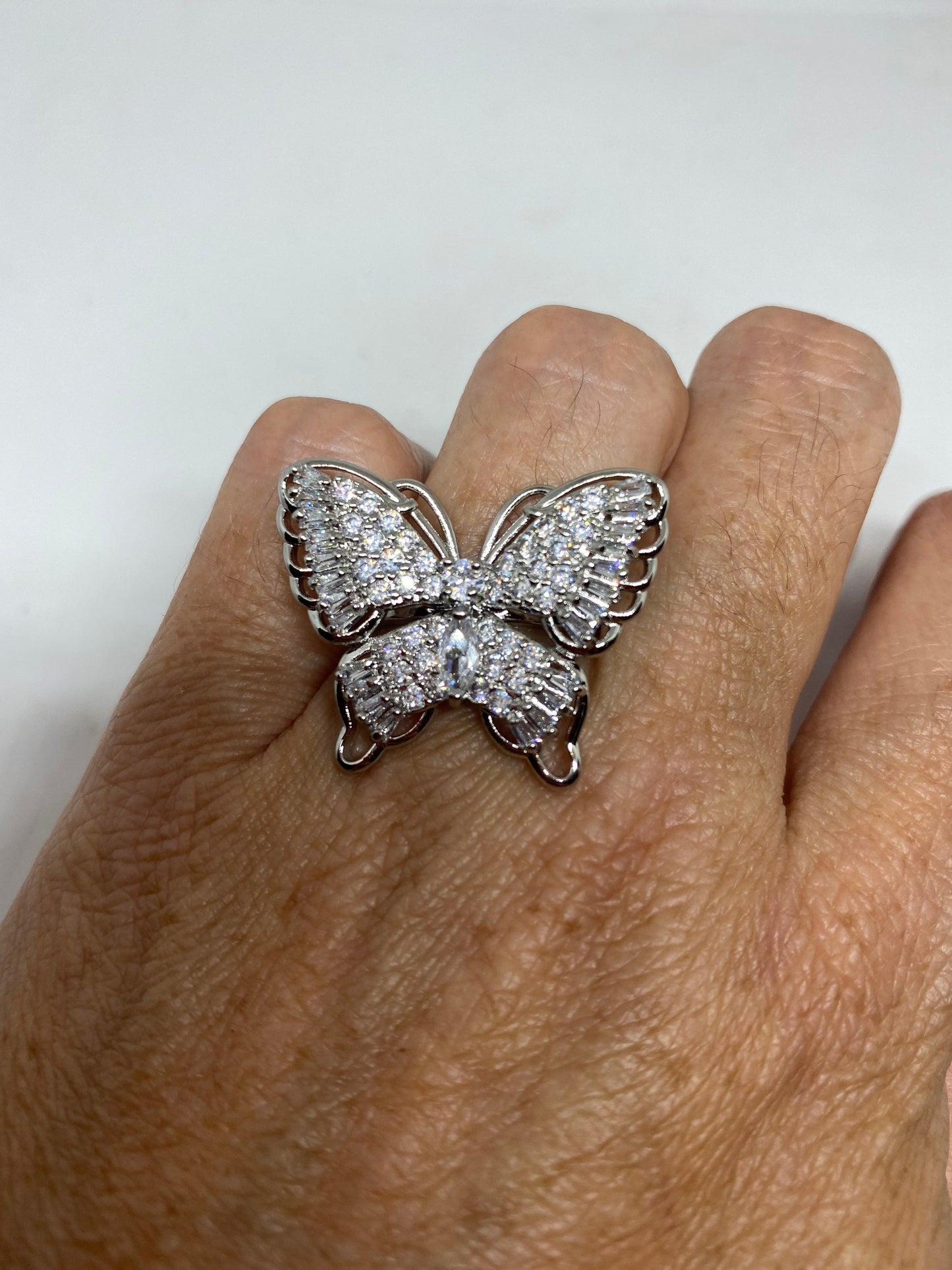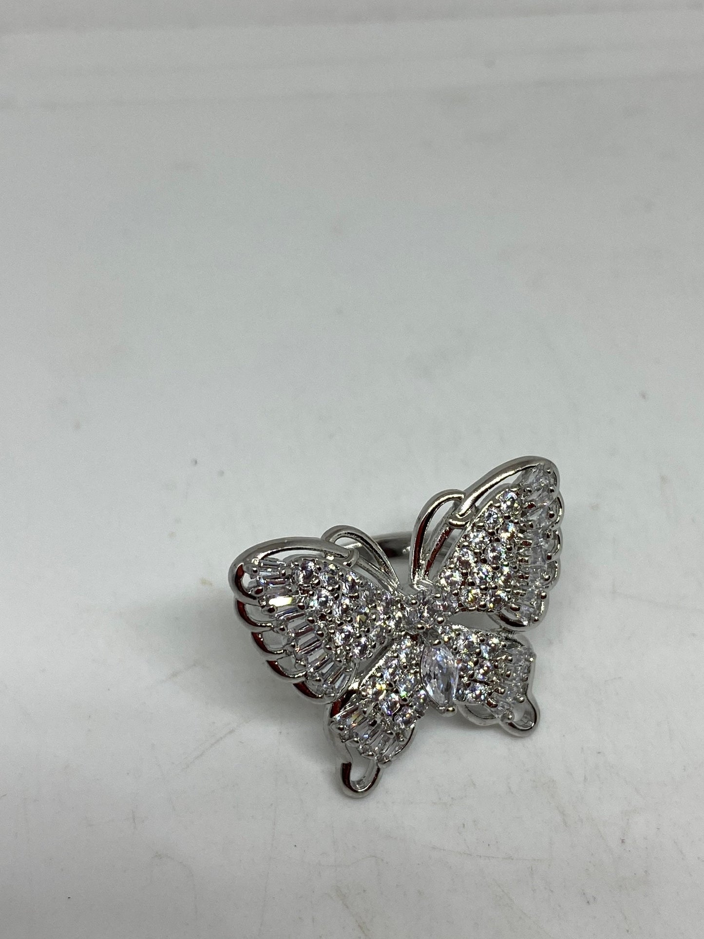 Vintage Butterfly Ring White Gold filled Deco Cocktail