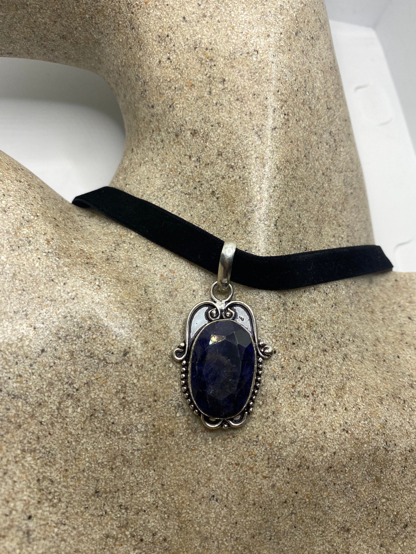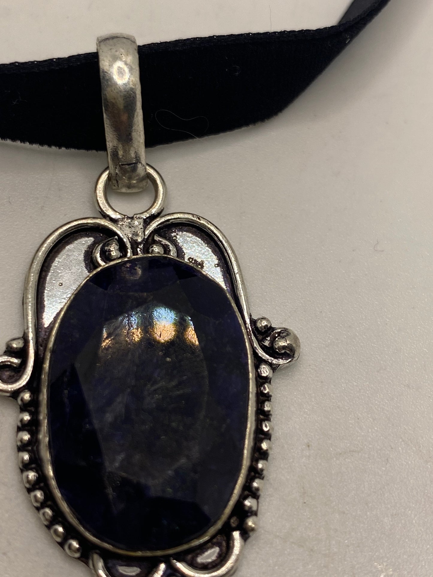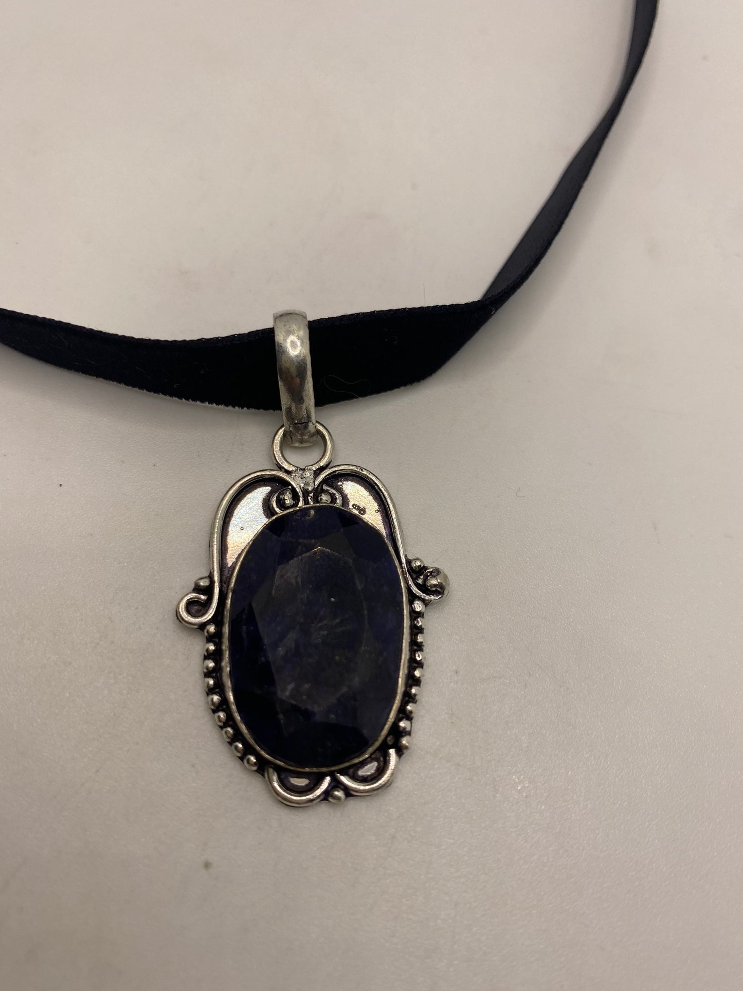 Vintage Cabochon Blue Raw Sapphire Choker Necklace