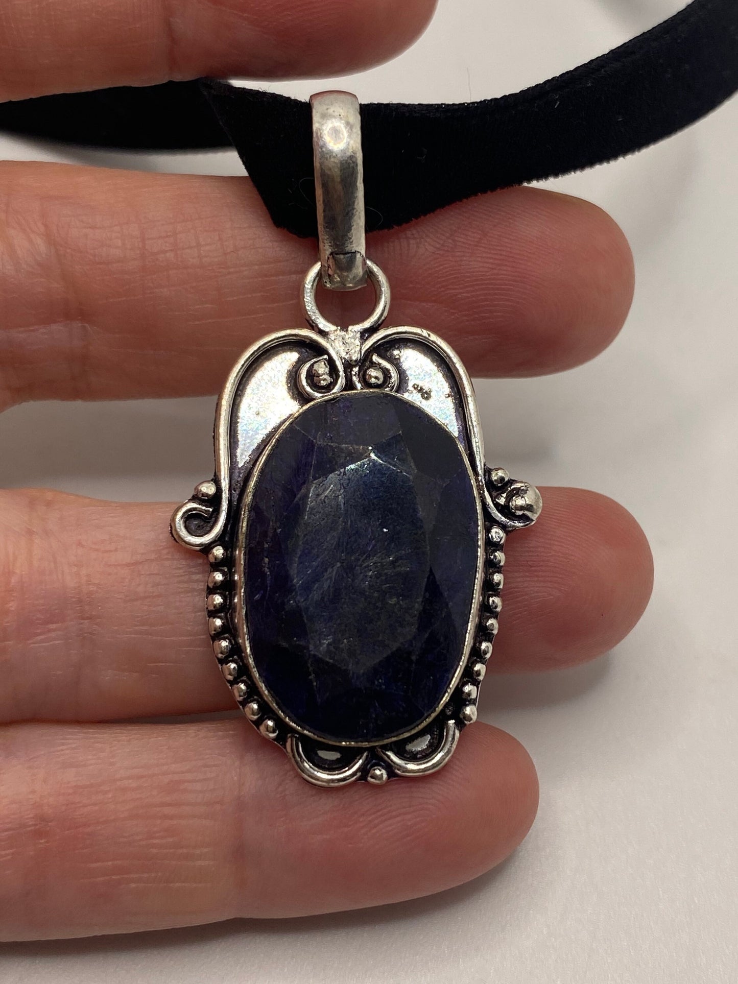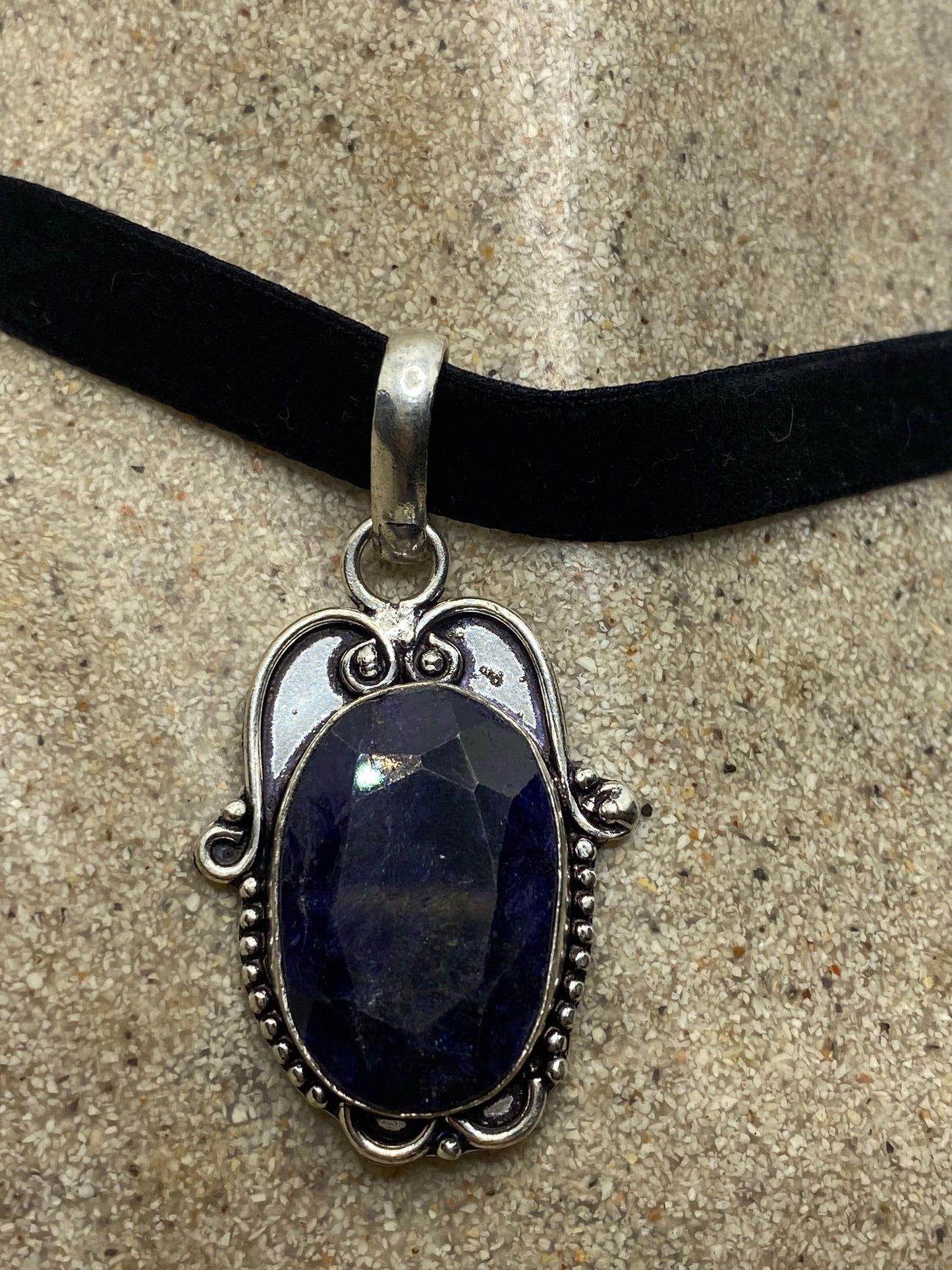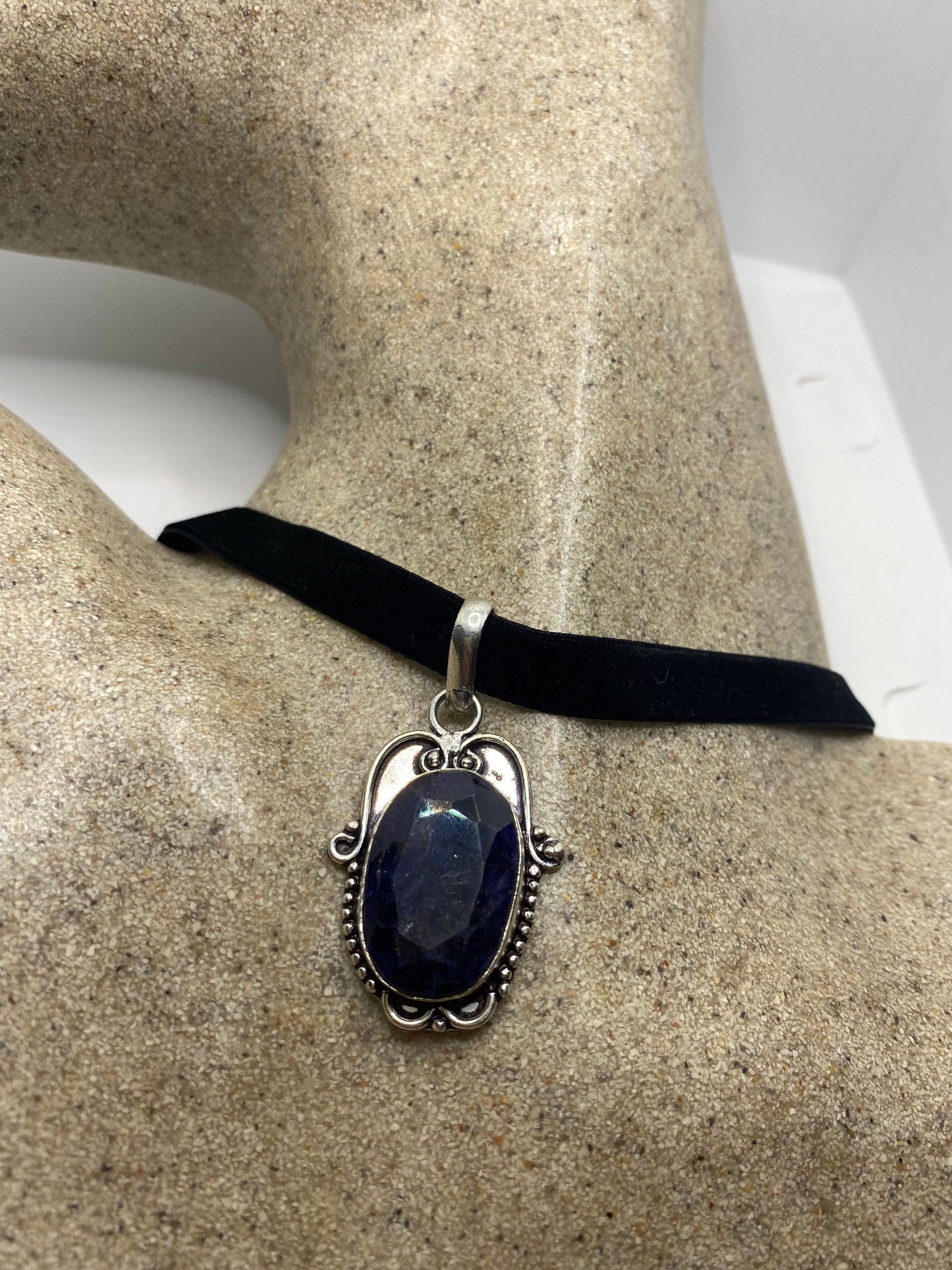 Vintage Cabochon Blue Raw Sapphire Choker Necklace