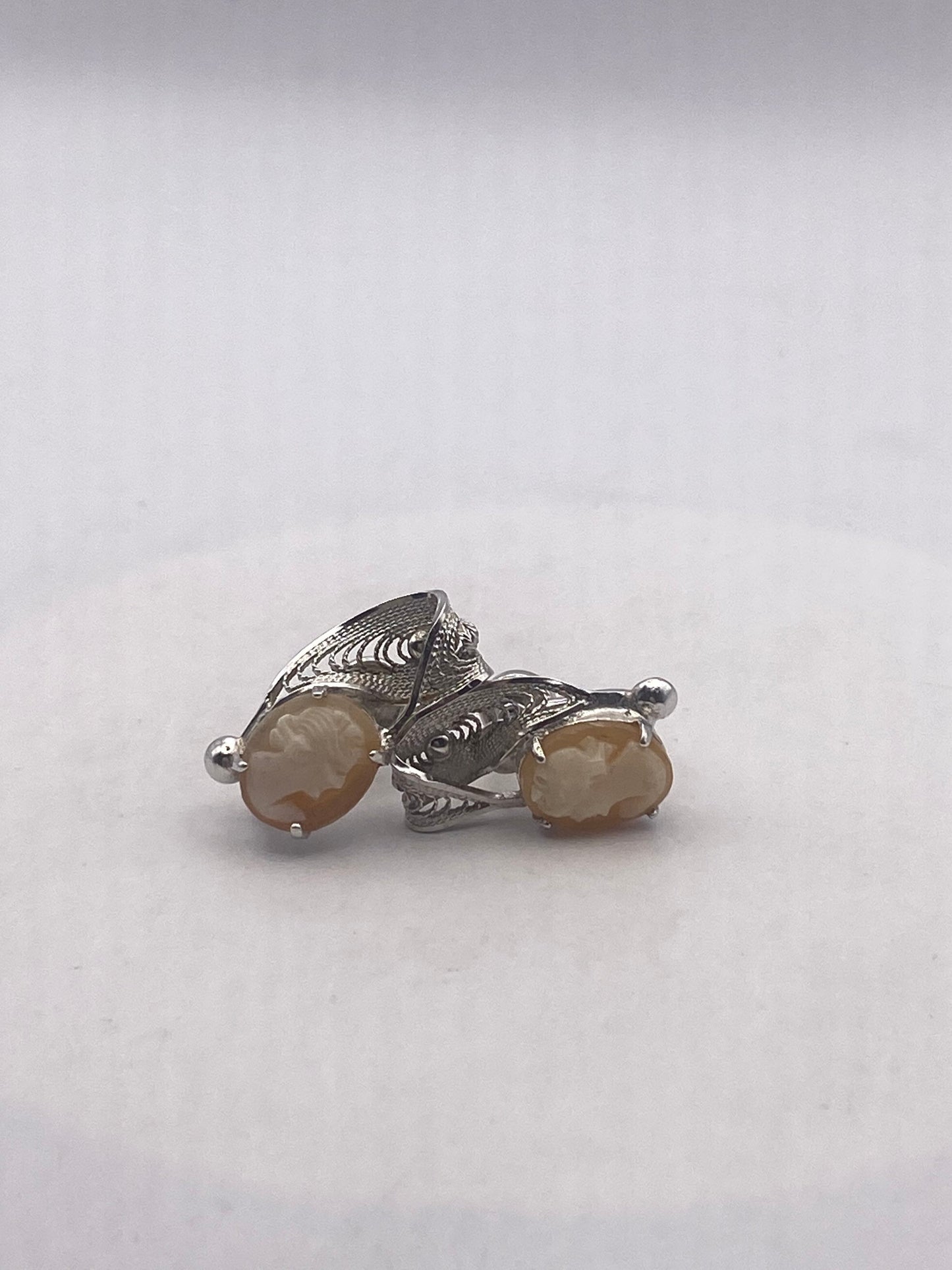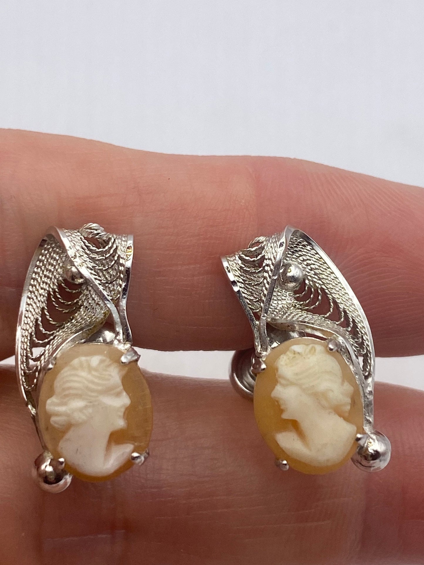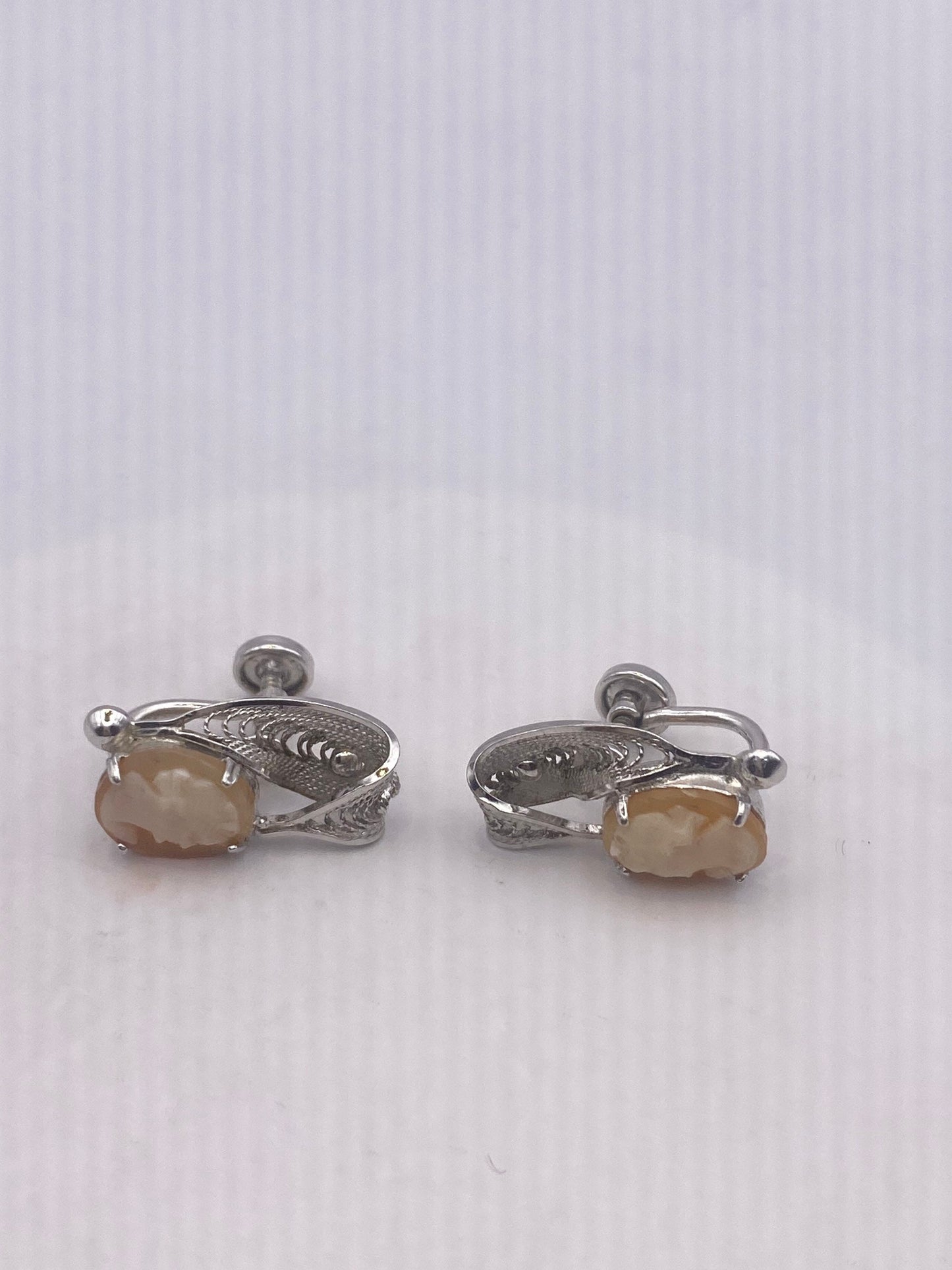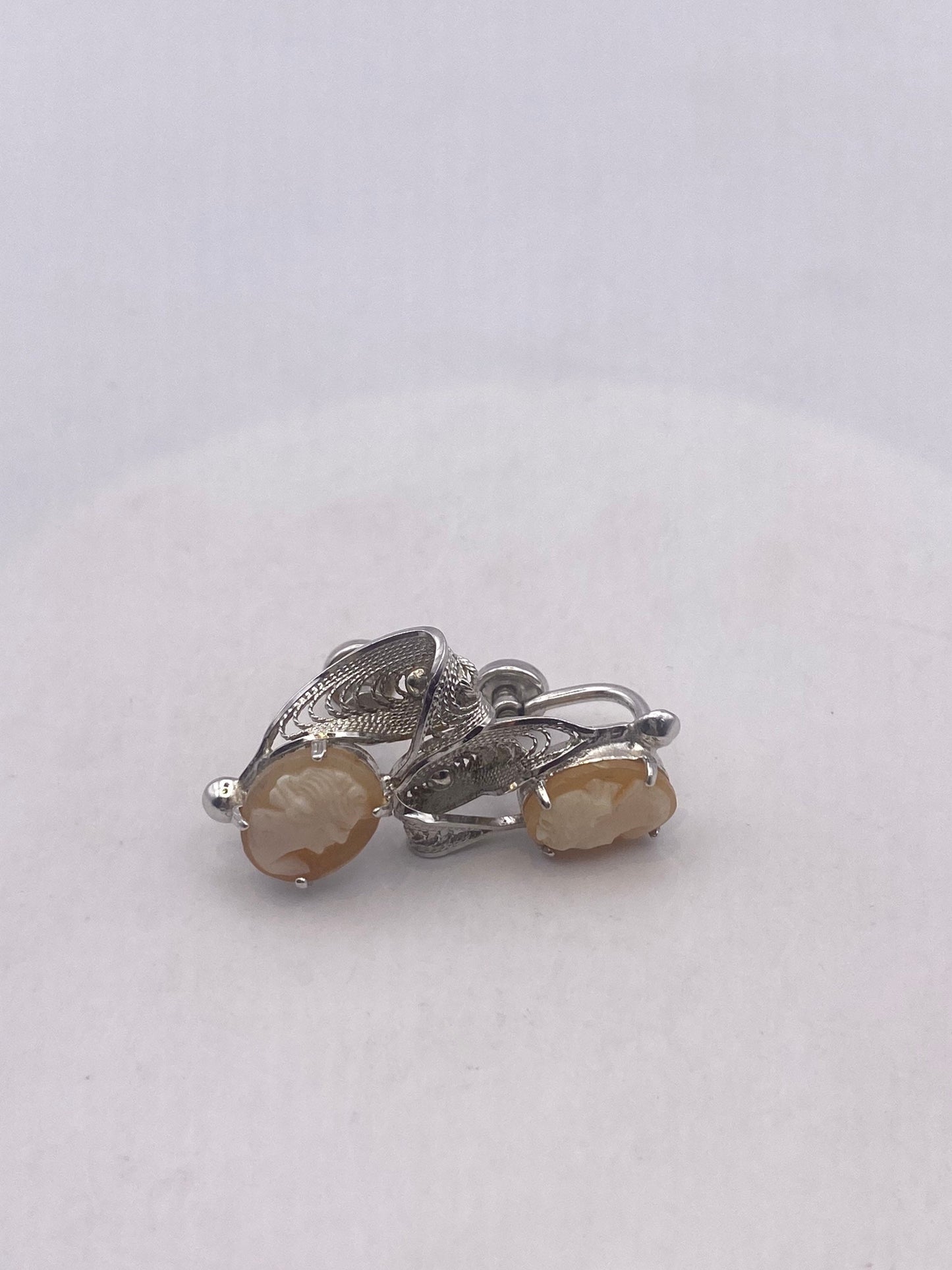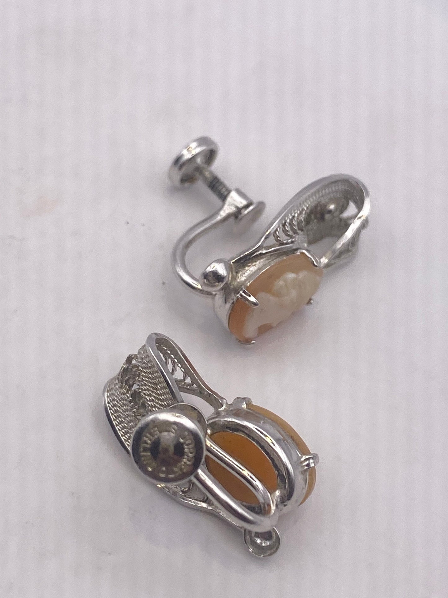 Vintage Cameo 925 Sterling Silver Screw Back Earrings