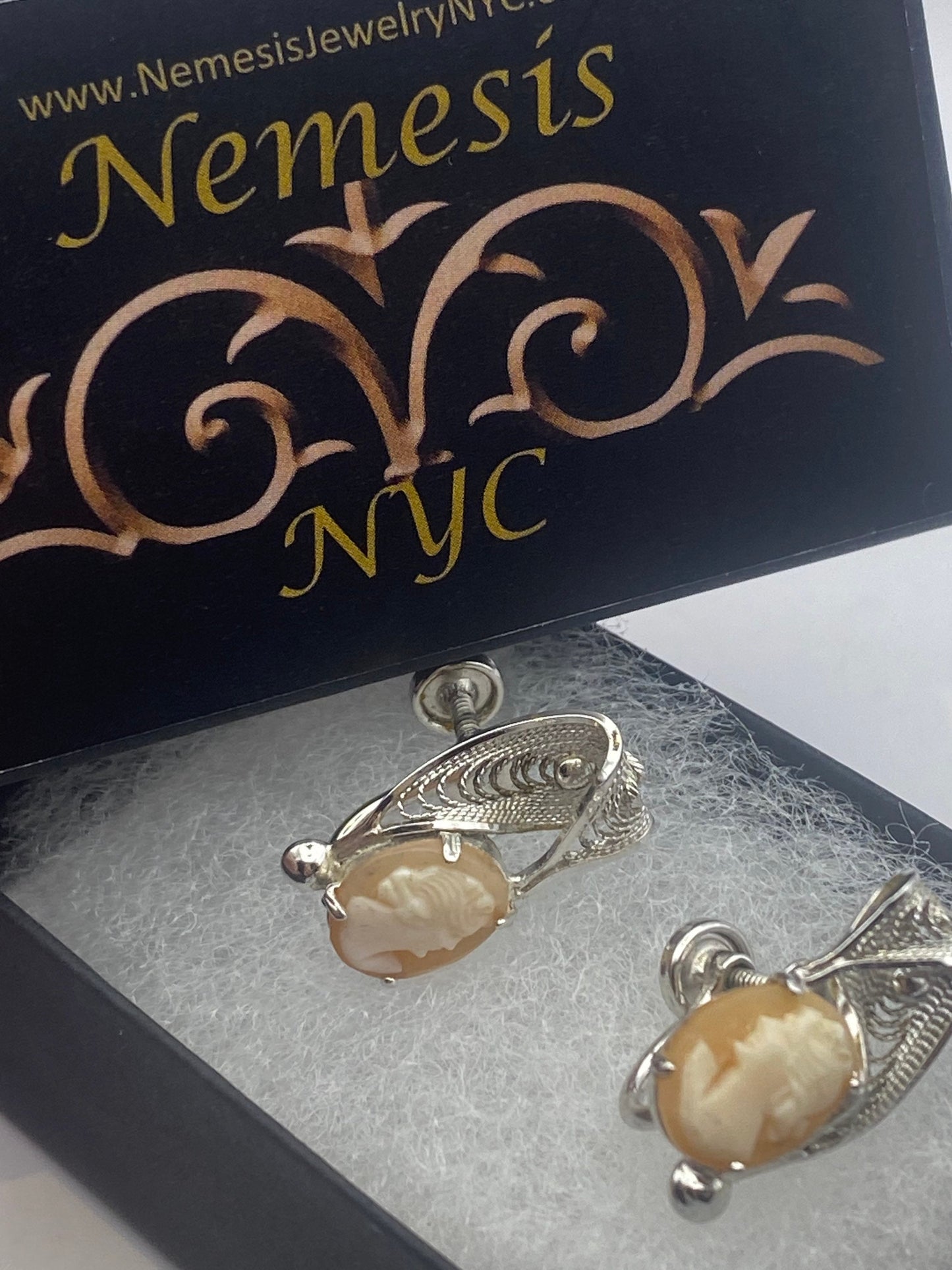 Vintage genuine carved shell cameos. 925 screw back earrings