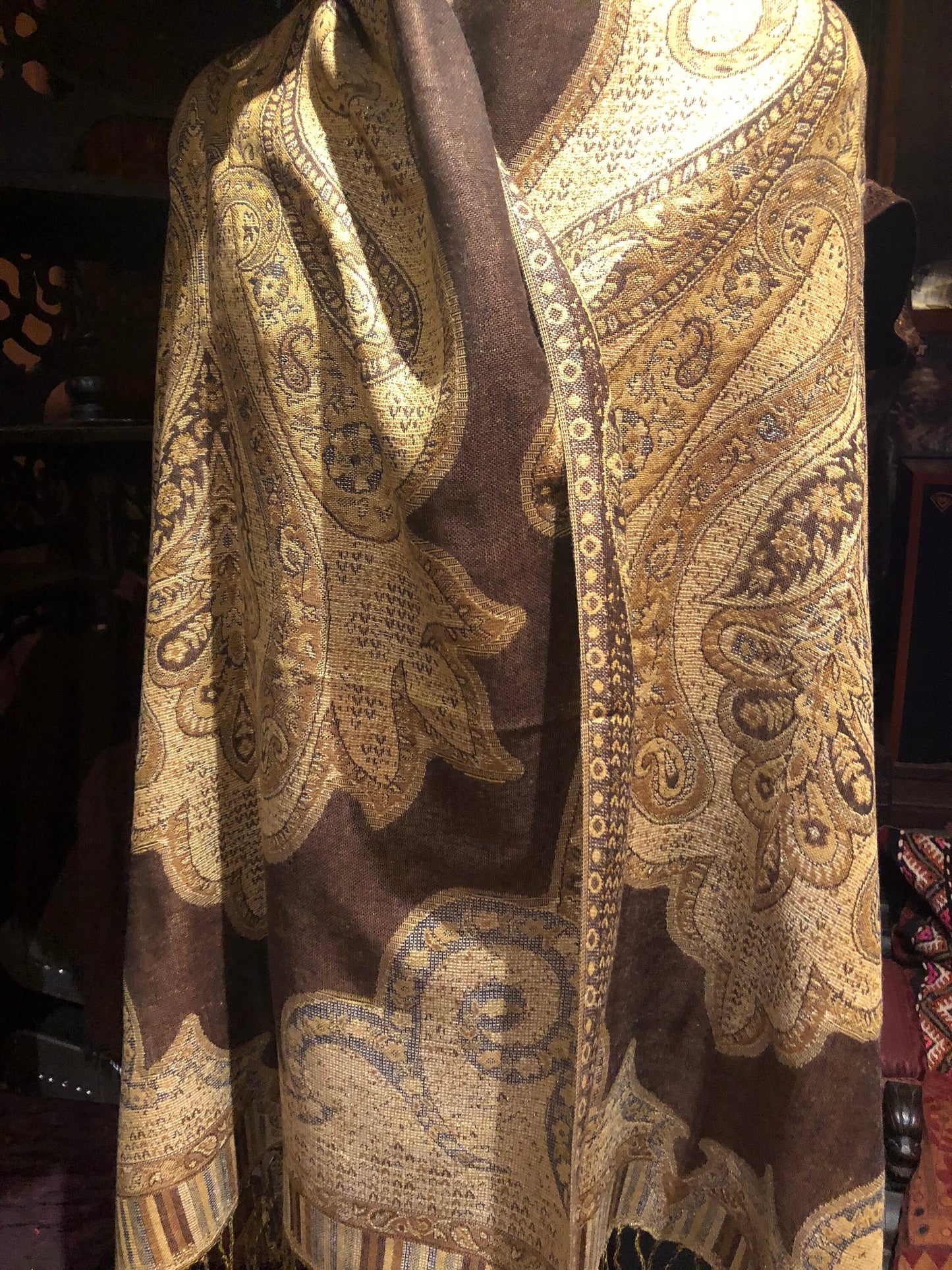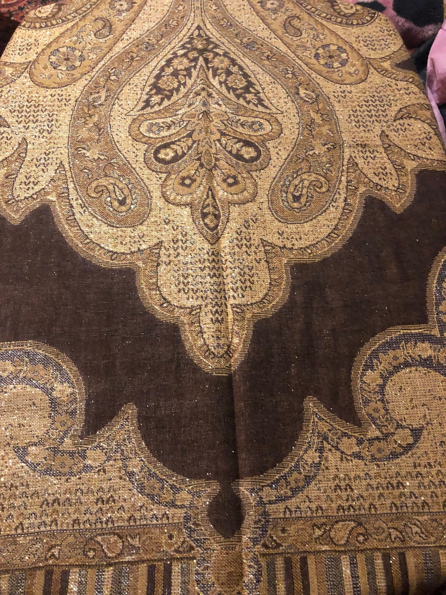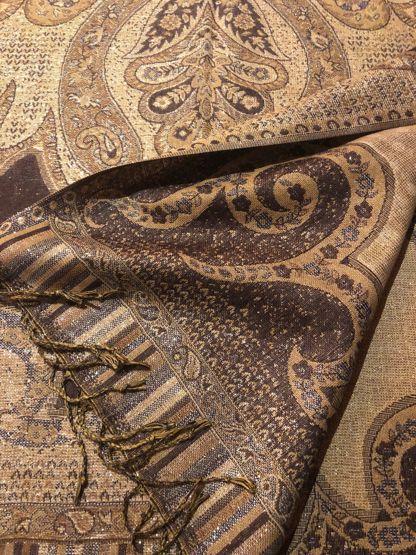 Vintage Choclate Brown Metallic Paisley Brocade Pashmina Scarf Wrap Shawl
