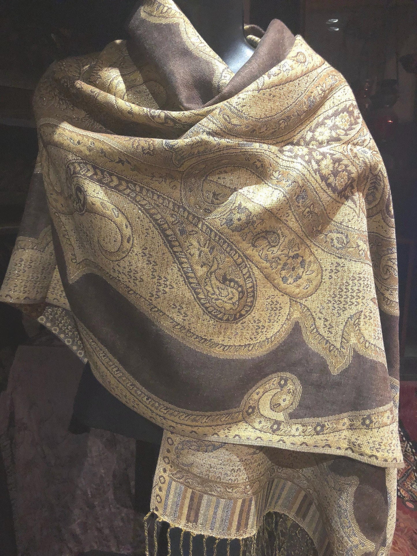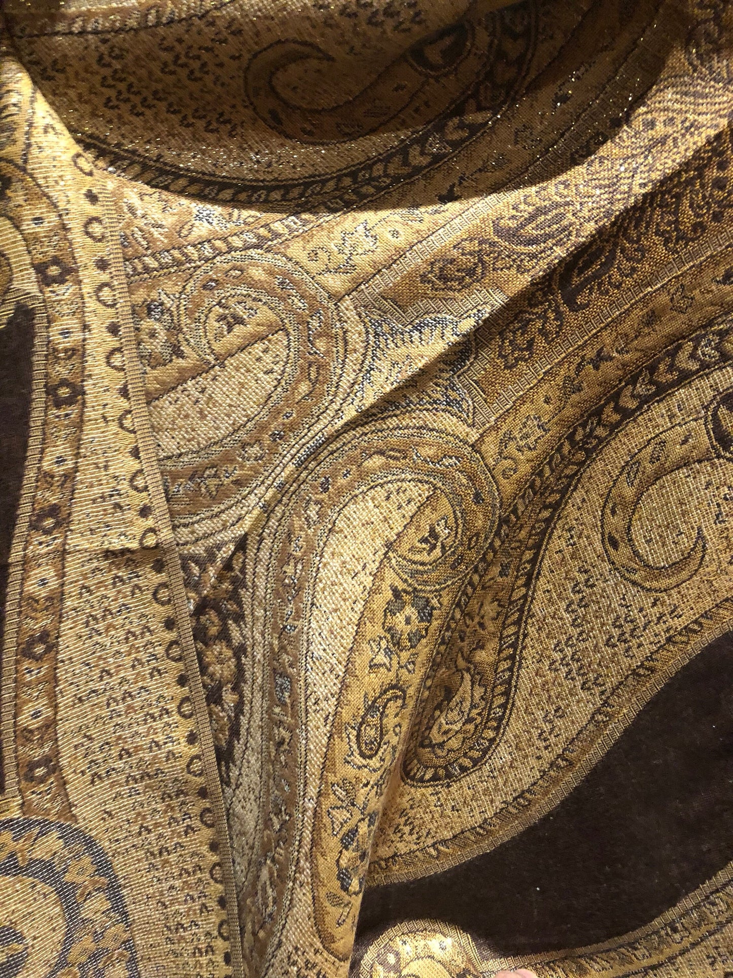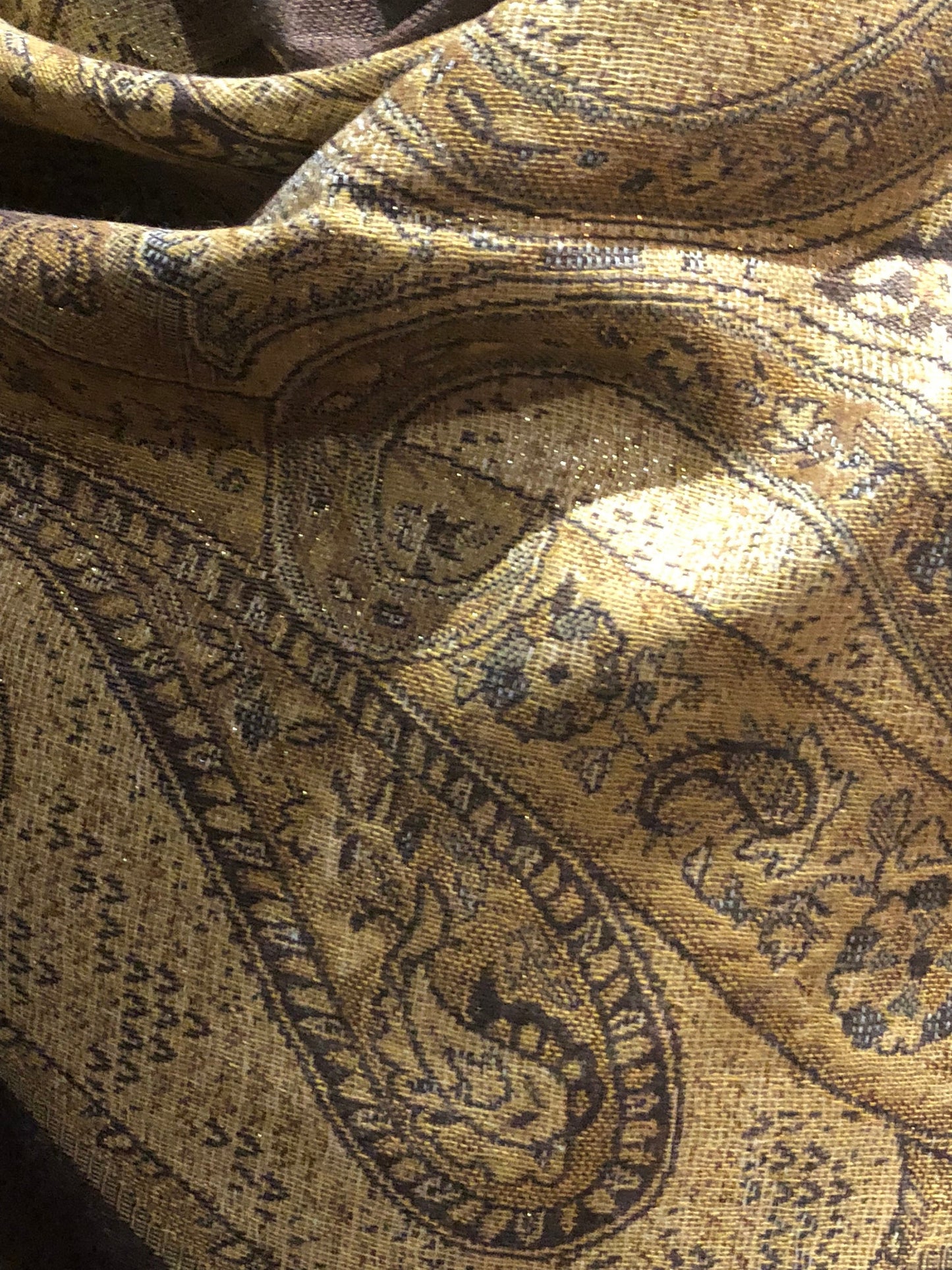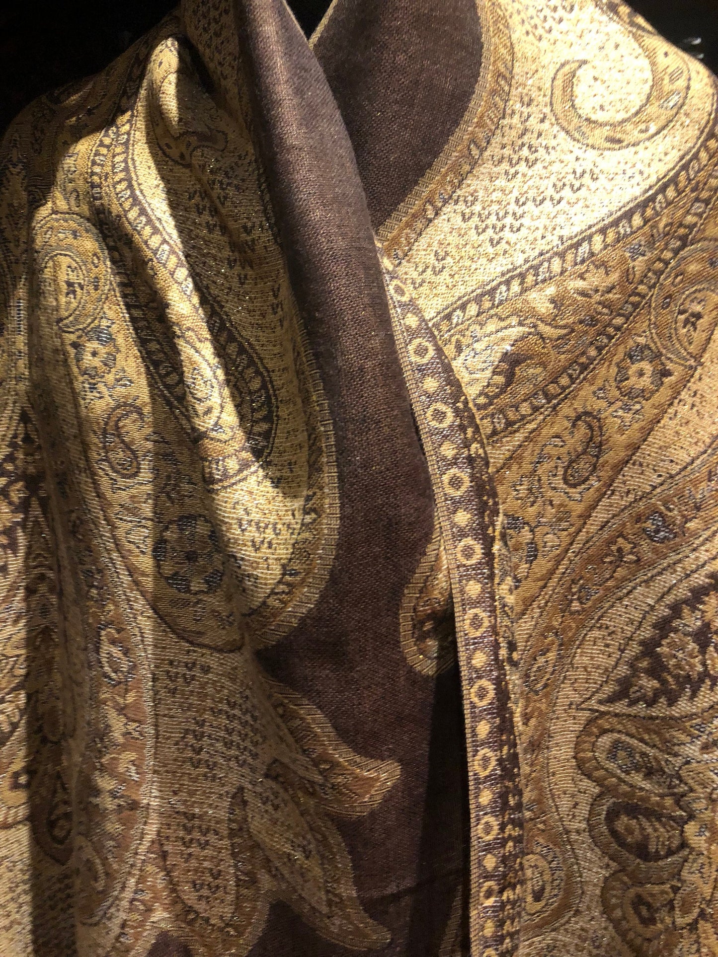 Vintage Choclate Brown Metallic Paisley Brocade Pashmina Scarf Wrap Shawl