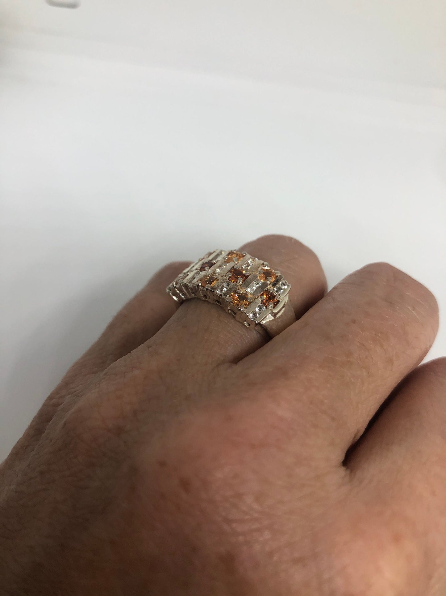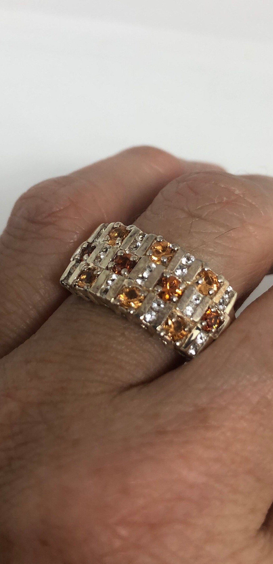 Vintage Citrine 925 Sterling Silver Gothic Ring Size 10