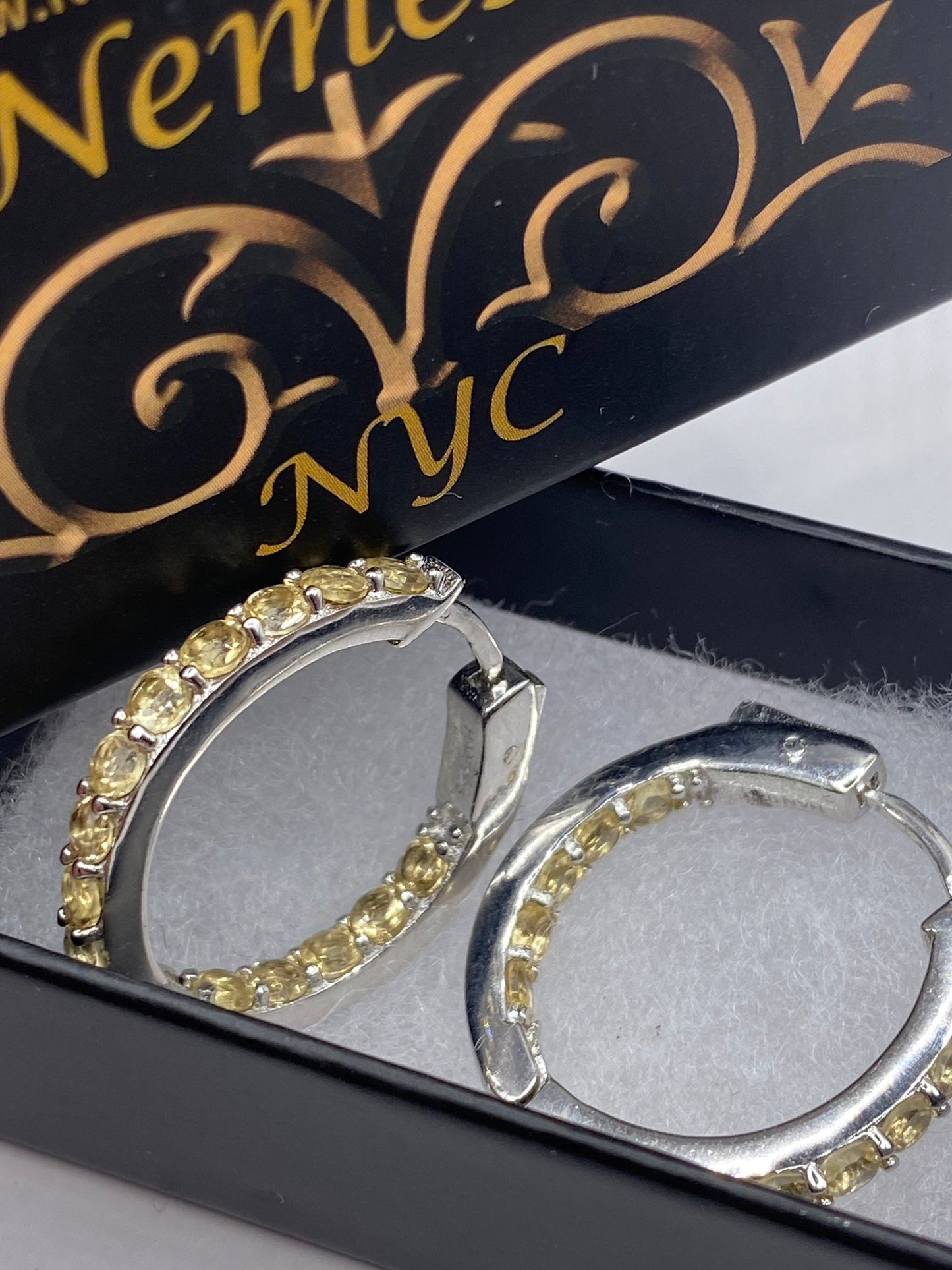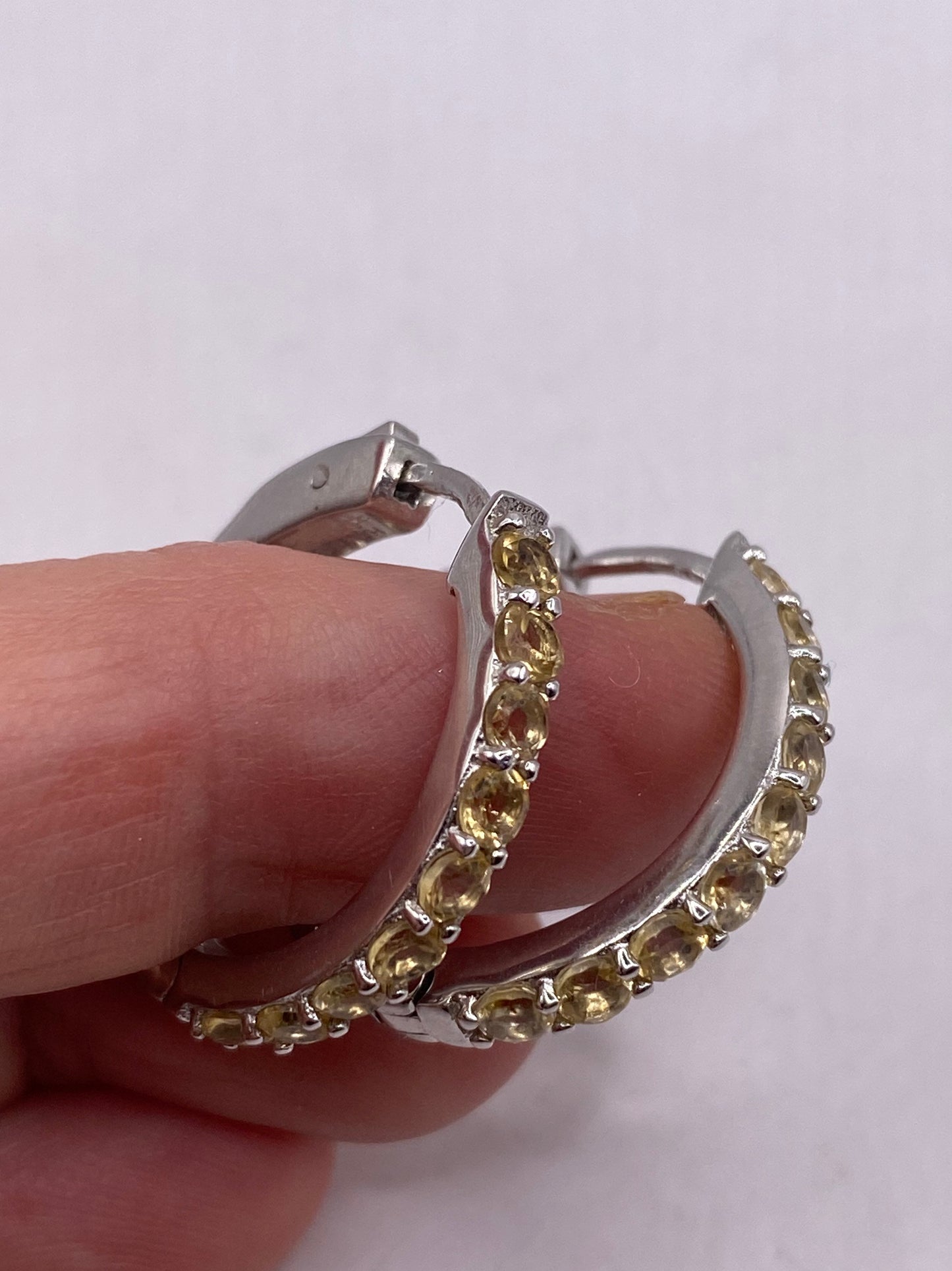 Vintage Citrine Hoop Earrings 925 Sterling Silver