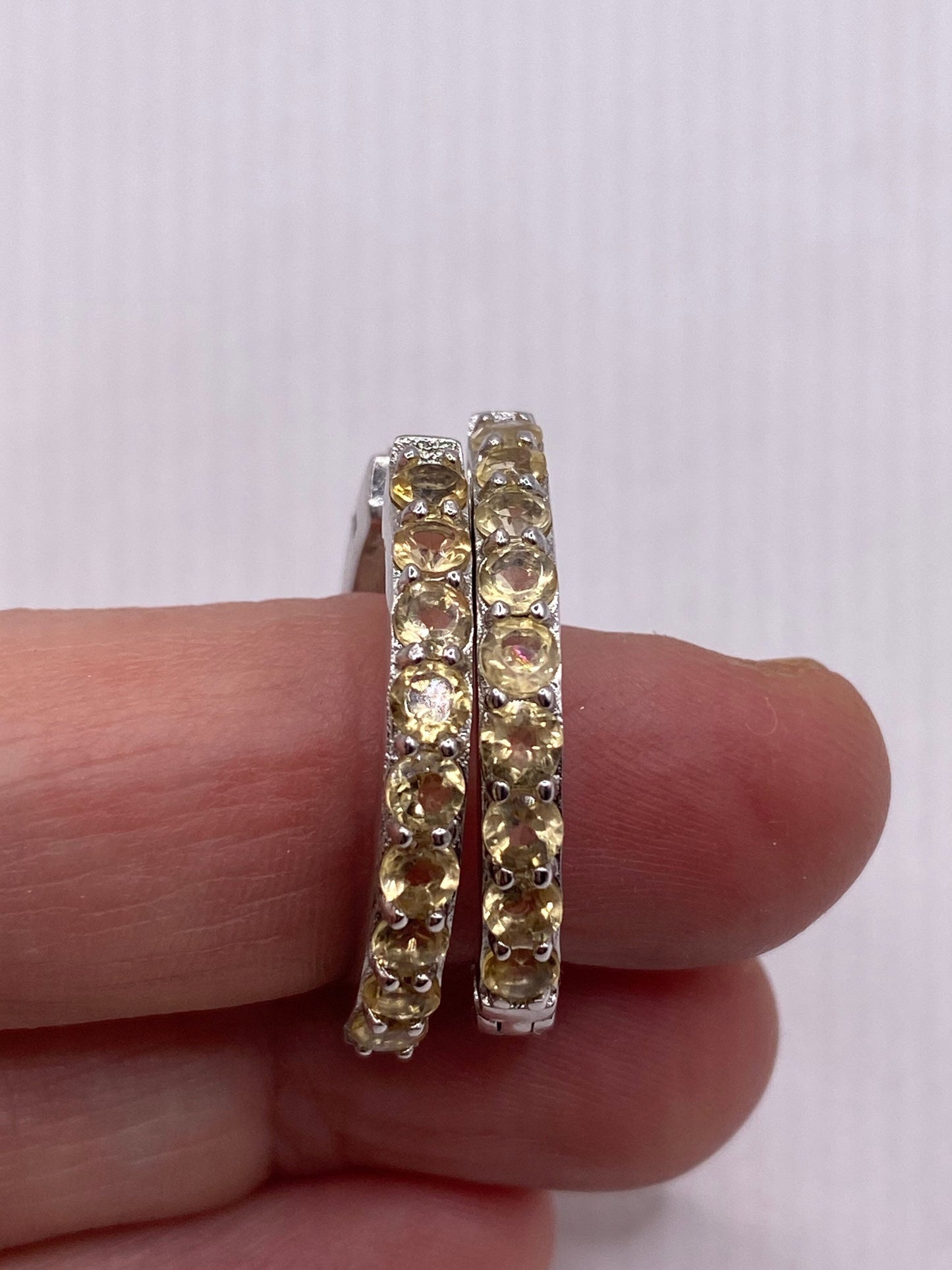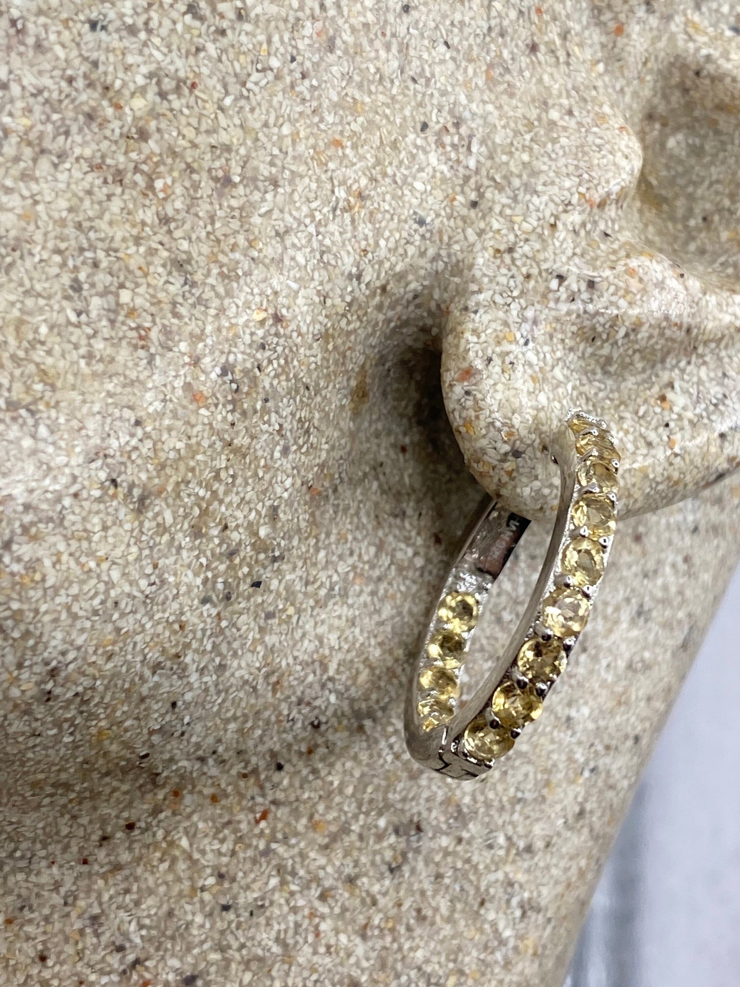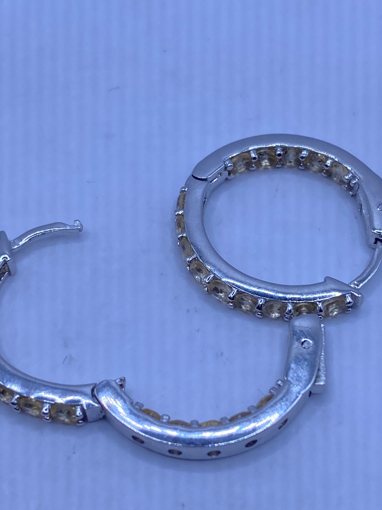 Vintage Citrine hoop earrings 925 Sterling Silver