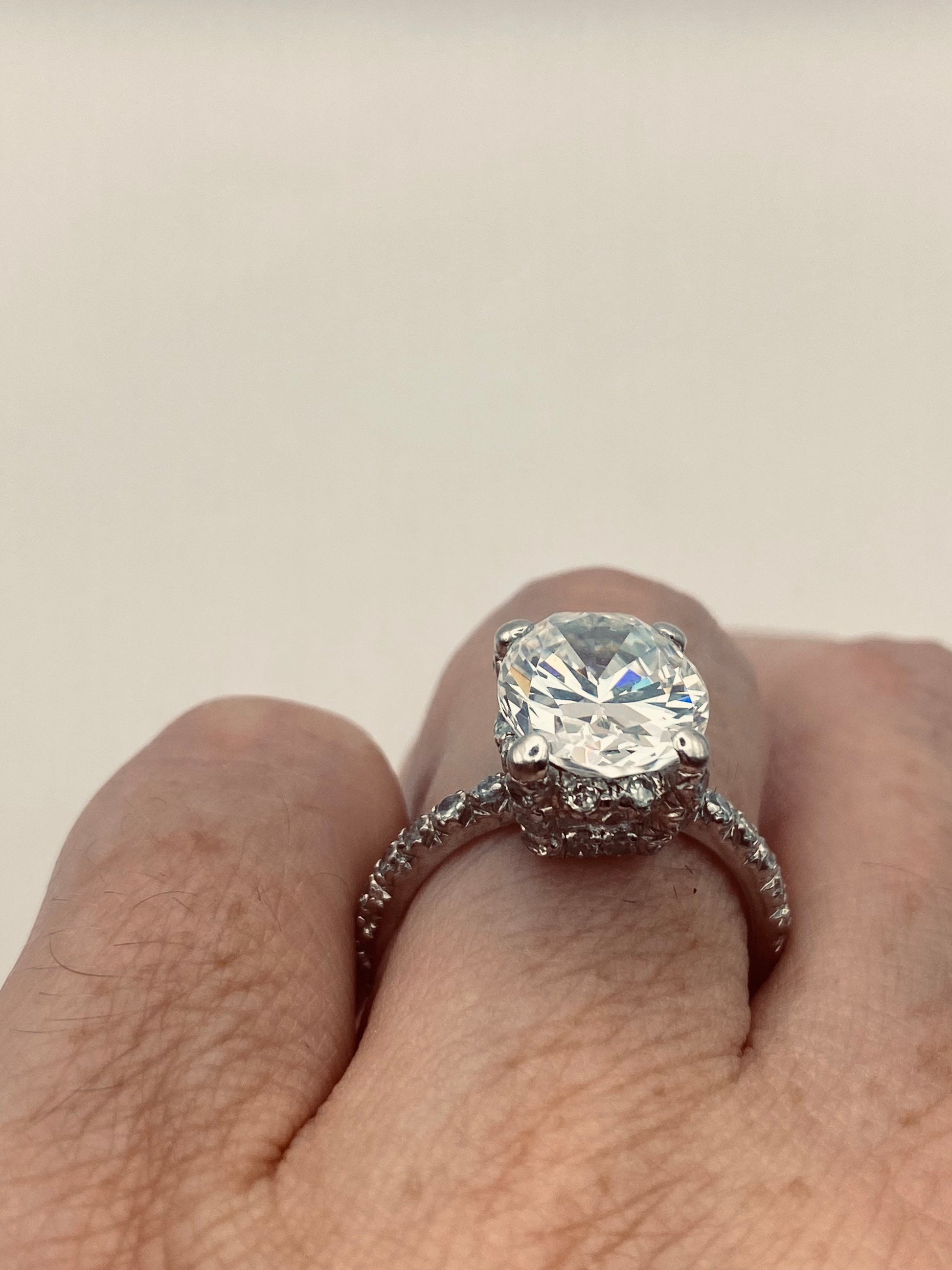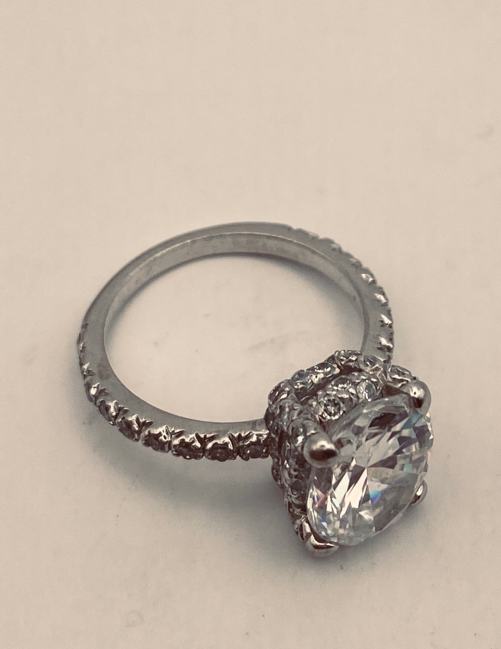Unusual white sapphire surrounding clear CZ sterling filigree setting Handmade