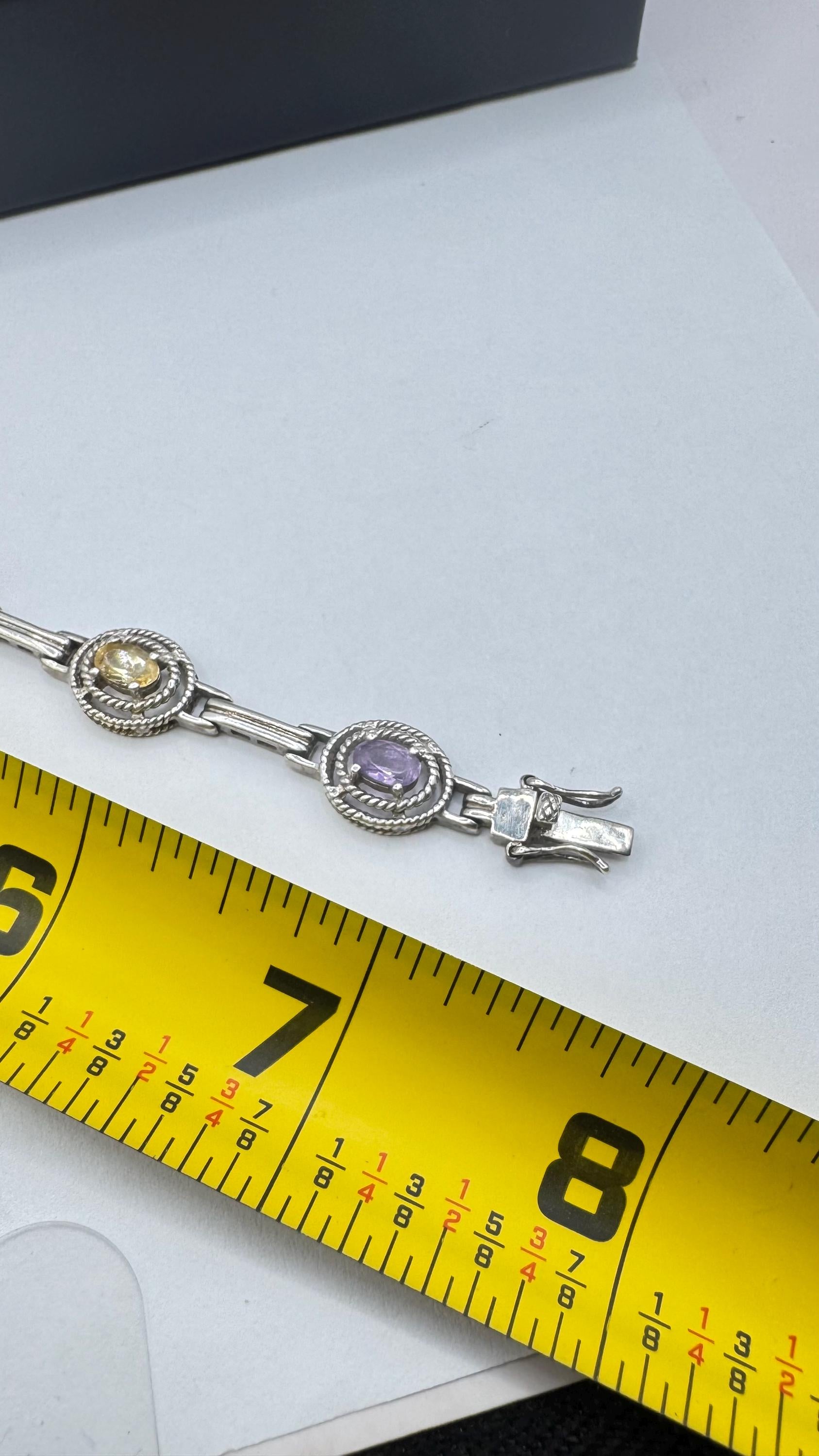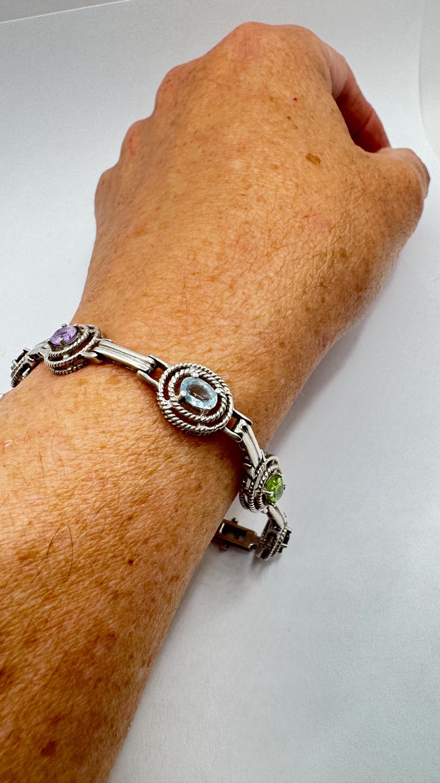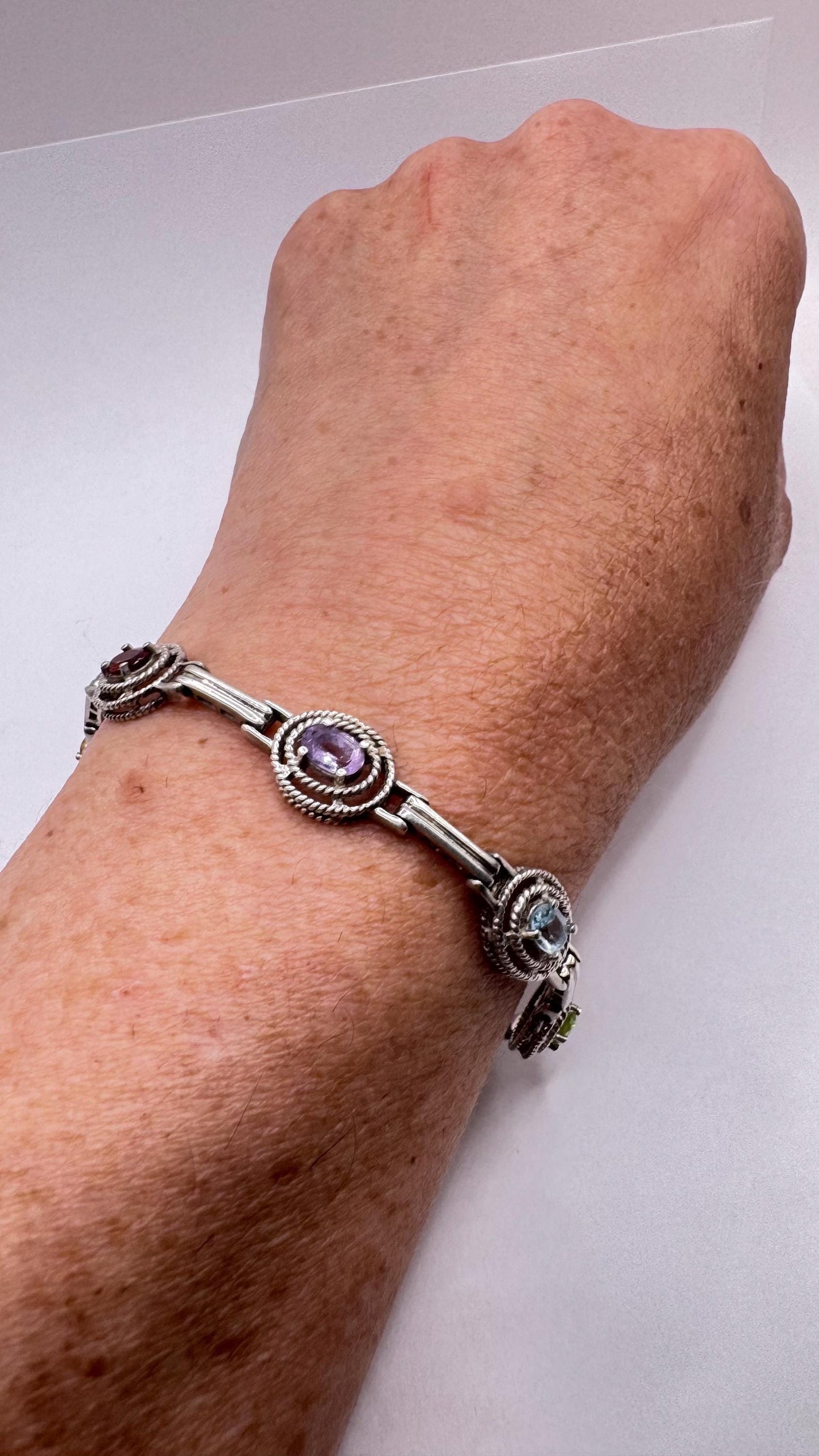 Vintage Garnet Amethyst Citrine in 925 Sterling Silver Tennis Bracelet