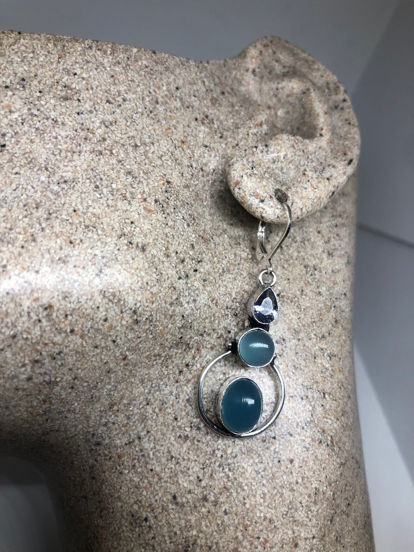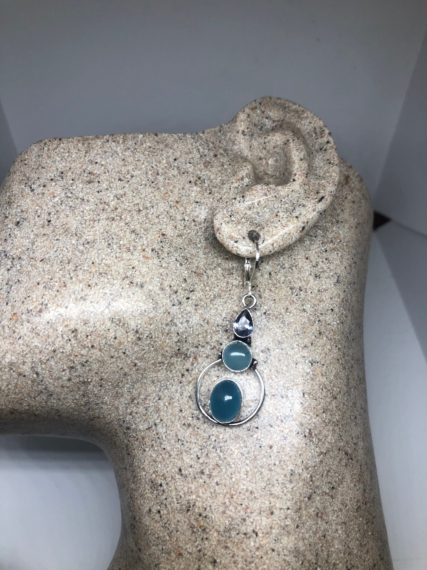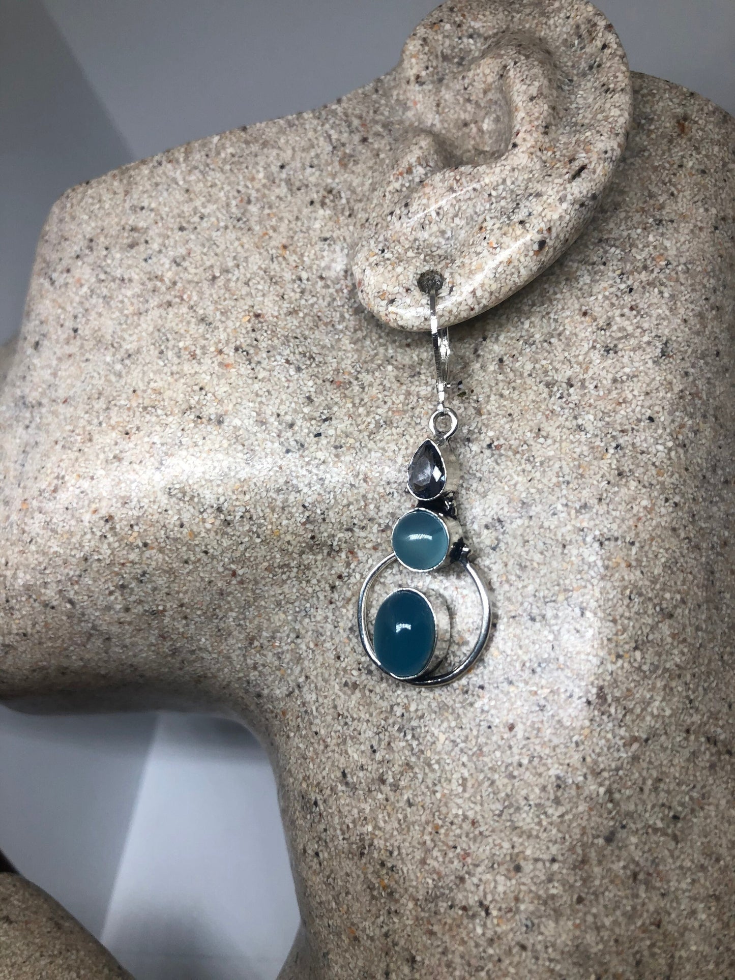 Vintage Genuine Blue Chalcedony Gemstone Filigree Sterling Silver Lever Back Chandelier Earrings